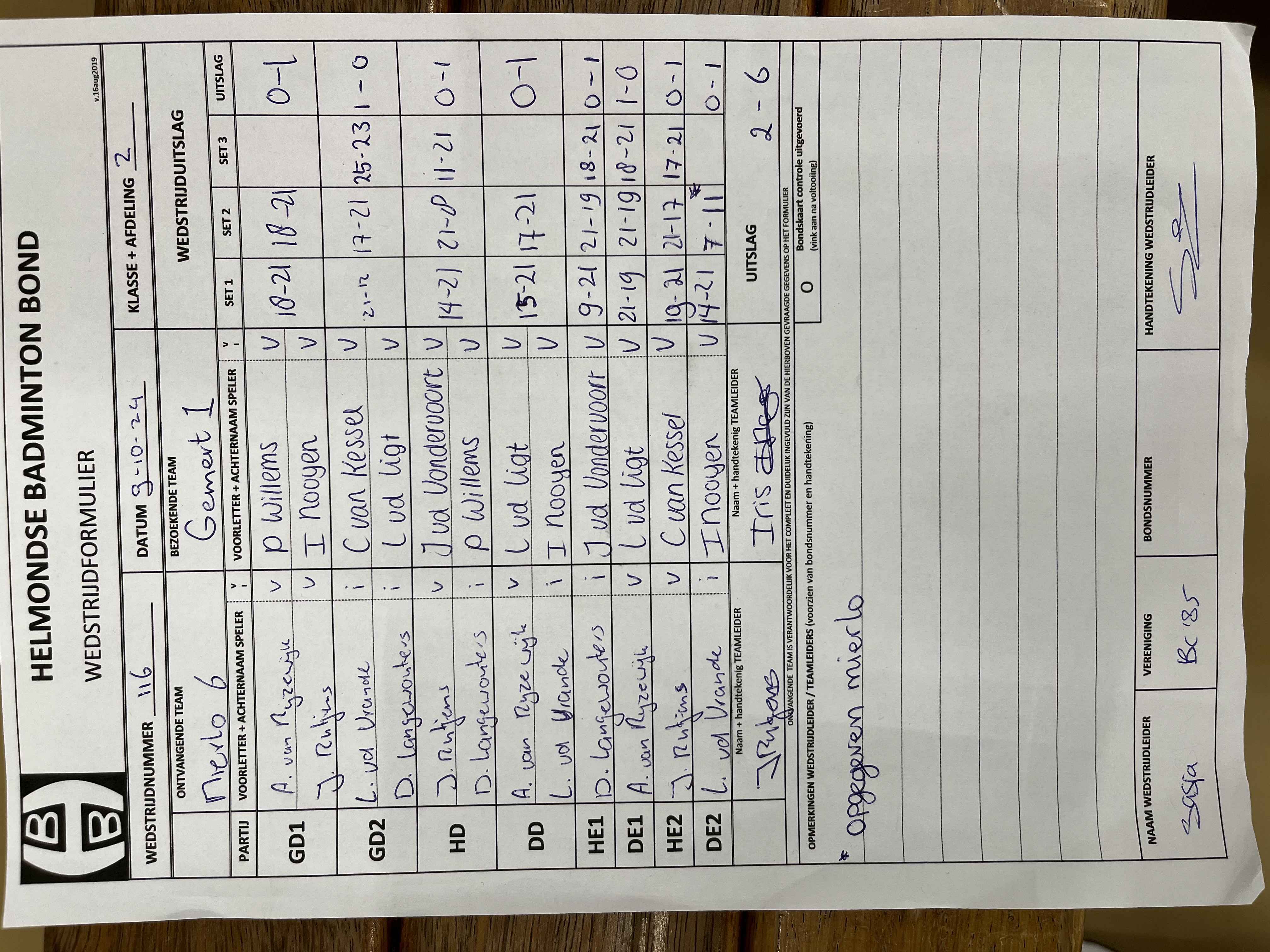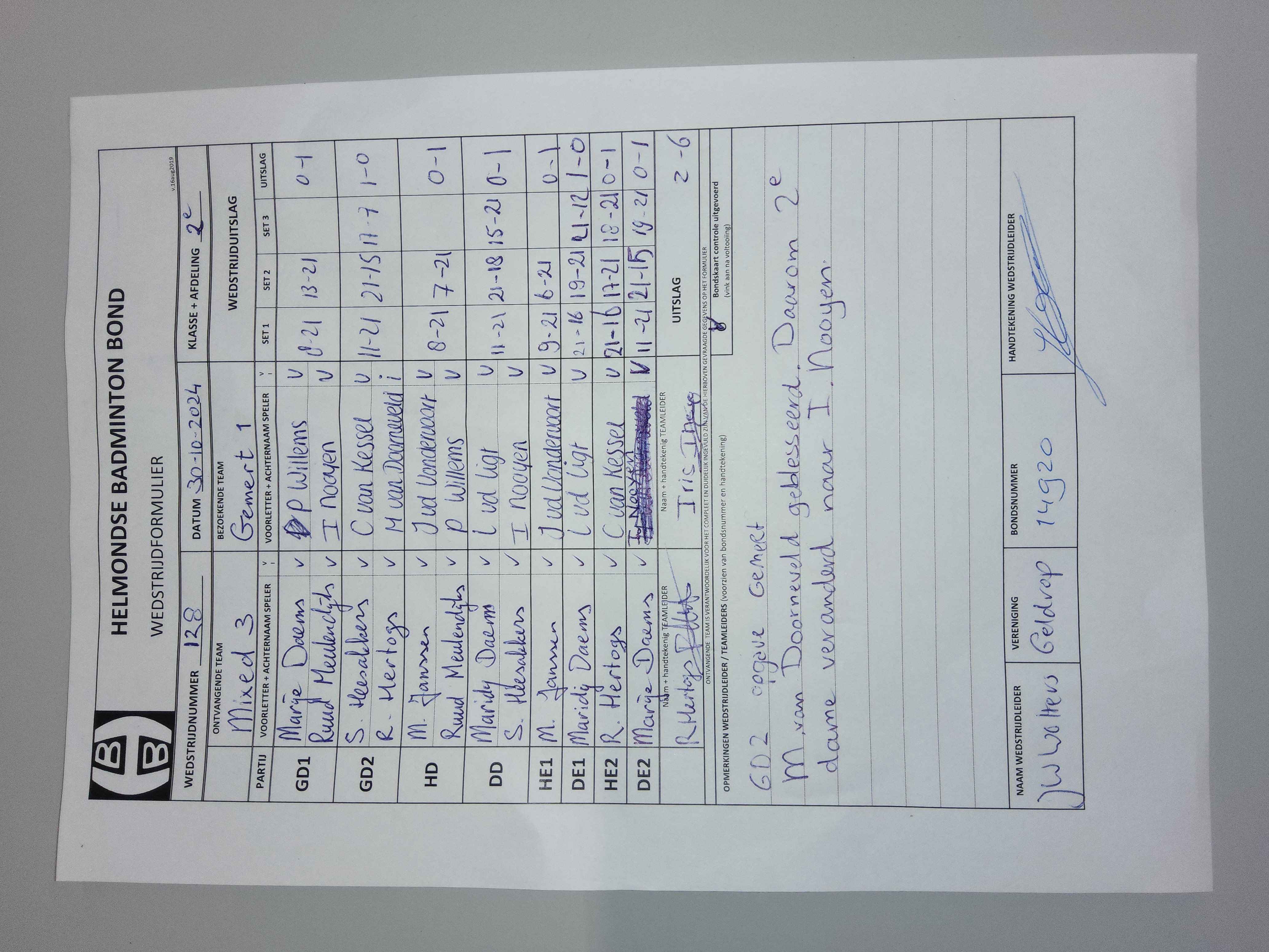 | 128 | wo. 30-10-2024 | Mixed 3 | - | Gemert 1 | 4 | 2 - 6 | |||