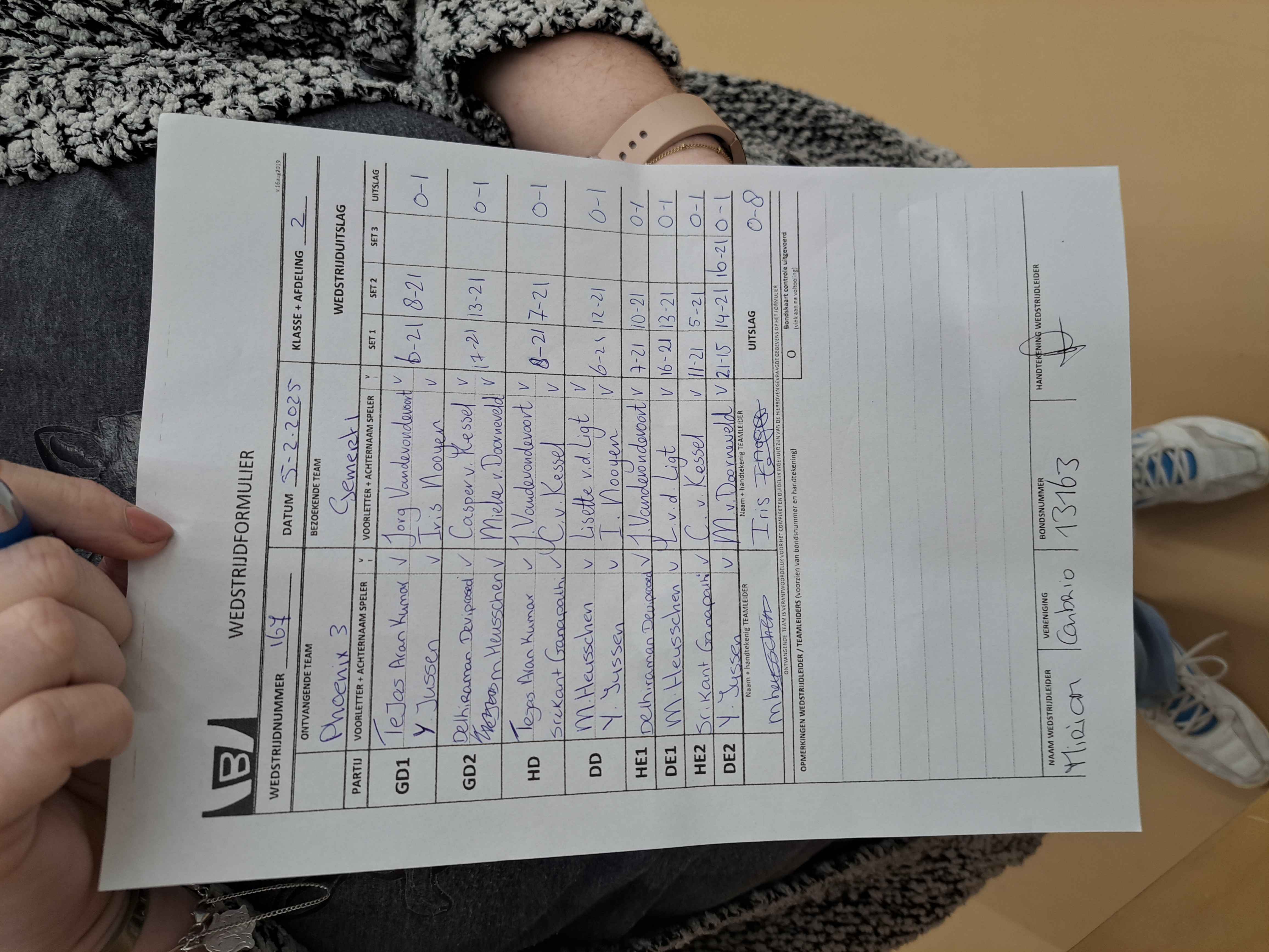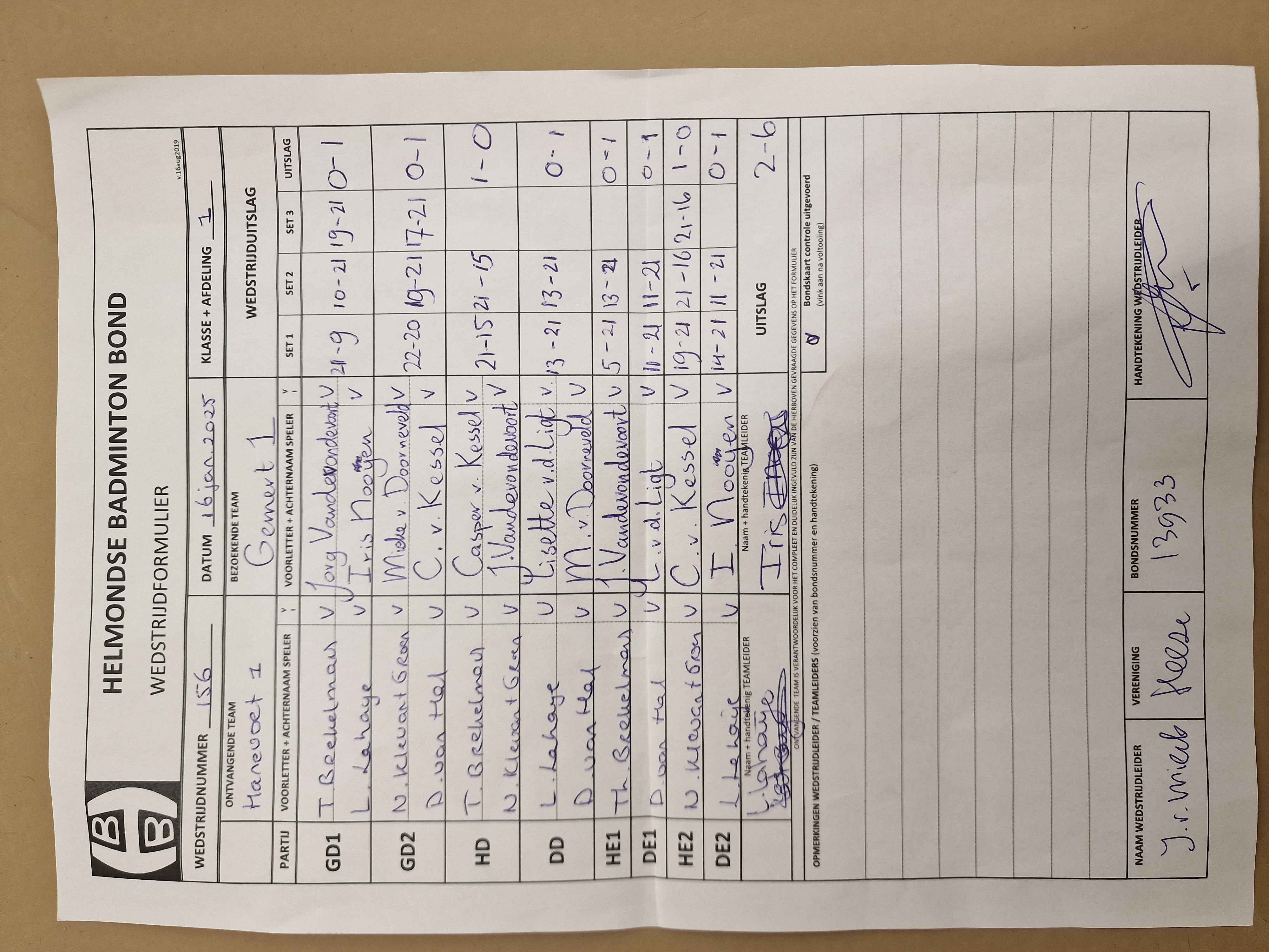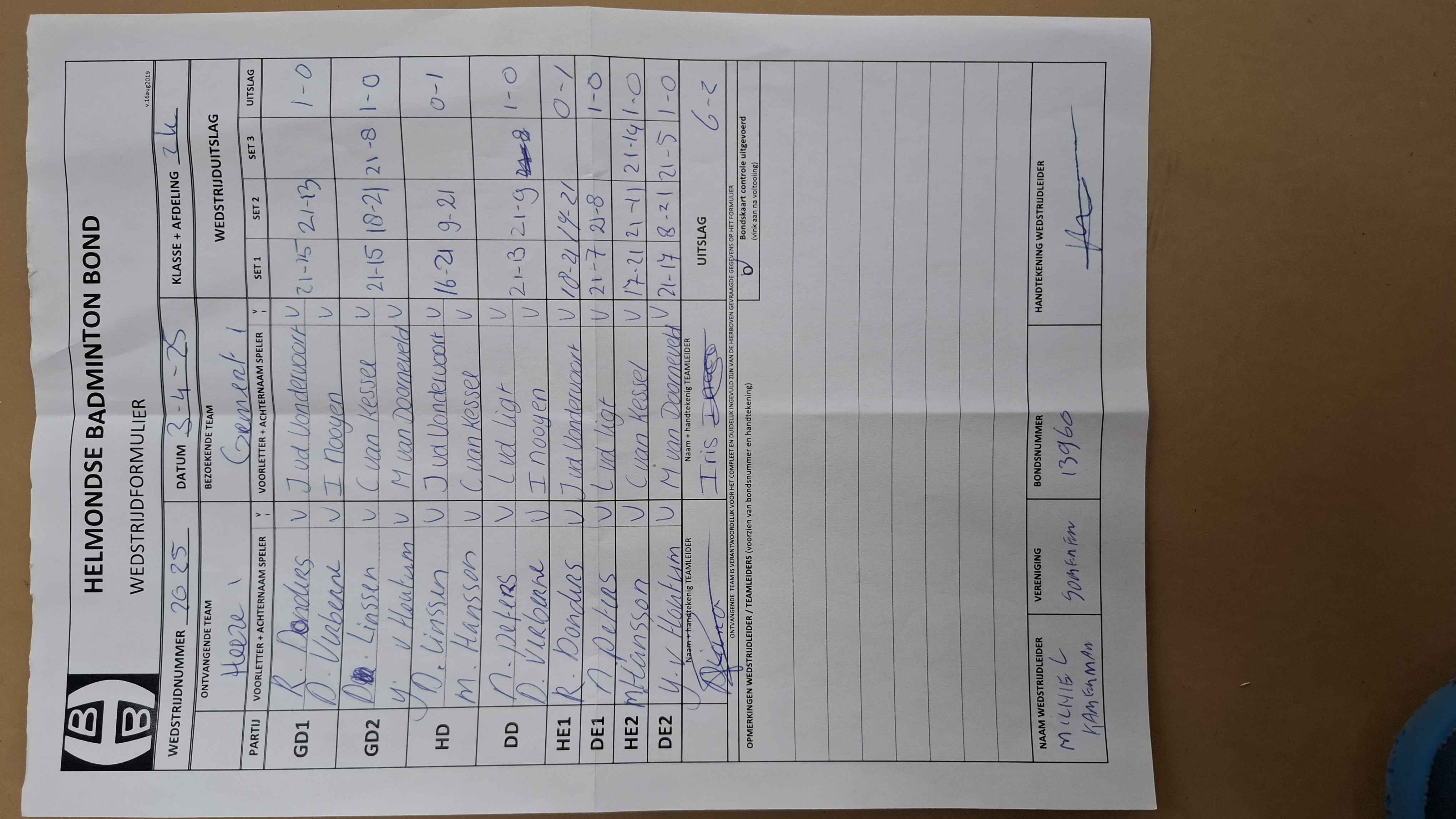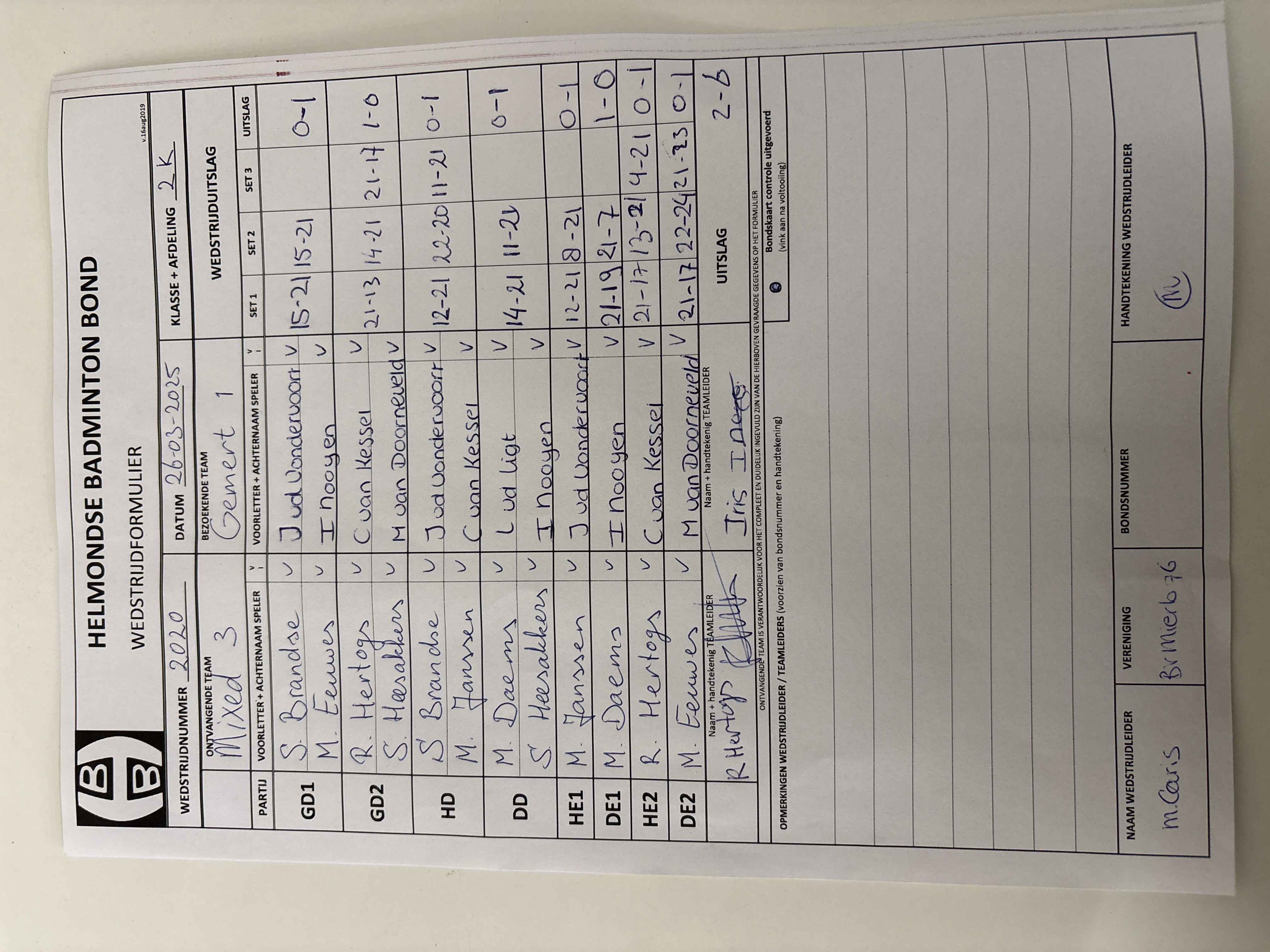| 2020 | wo. 26-03-2025 | Mixed 3 | - | Gemert 1 | 3 | 2 - 6 | |||