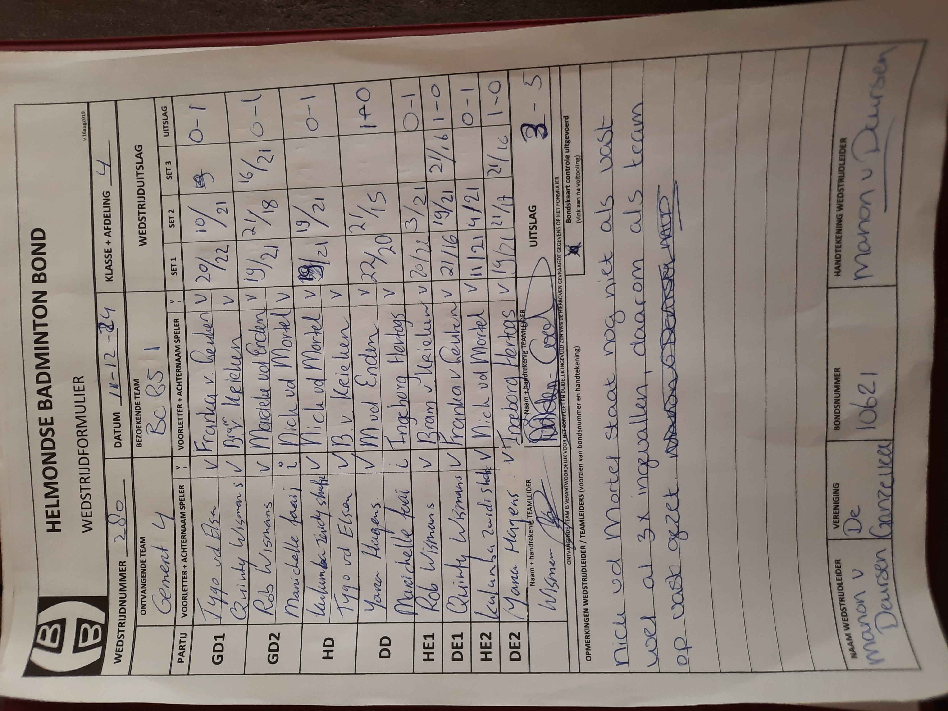 | 280 | wo. 11-12-2024 | Gemert 4 | - | BC '85 1 | 15 | 3 - 5 | |||