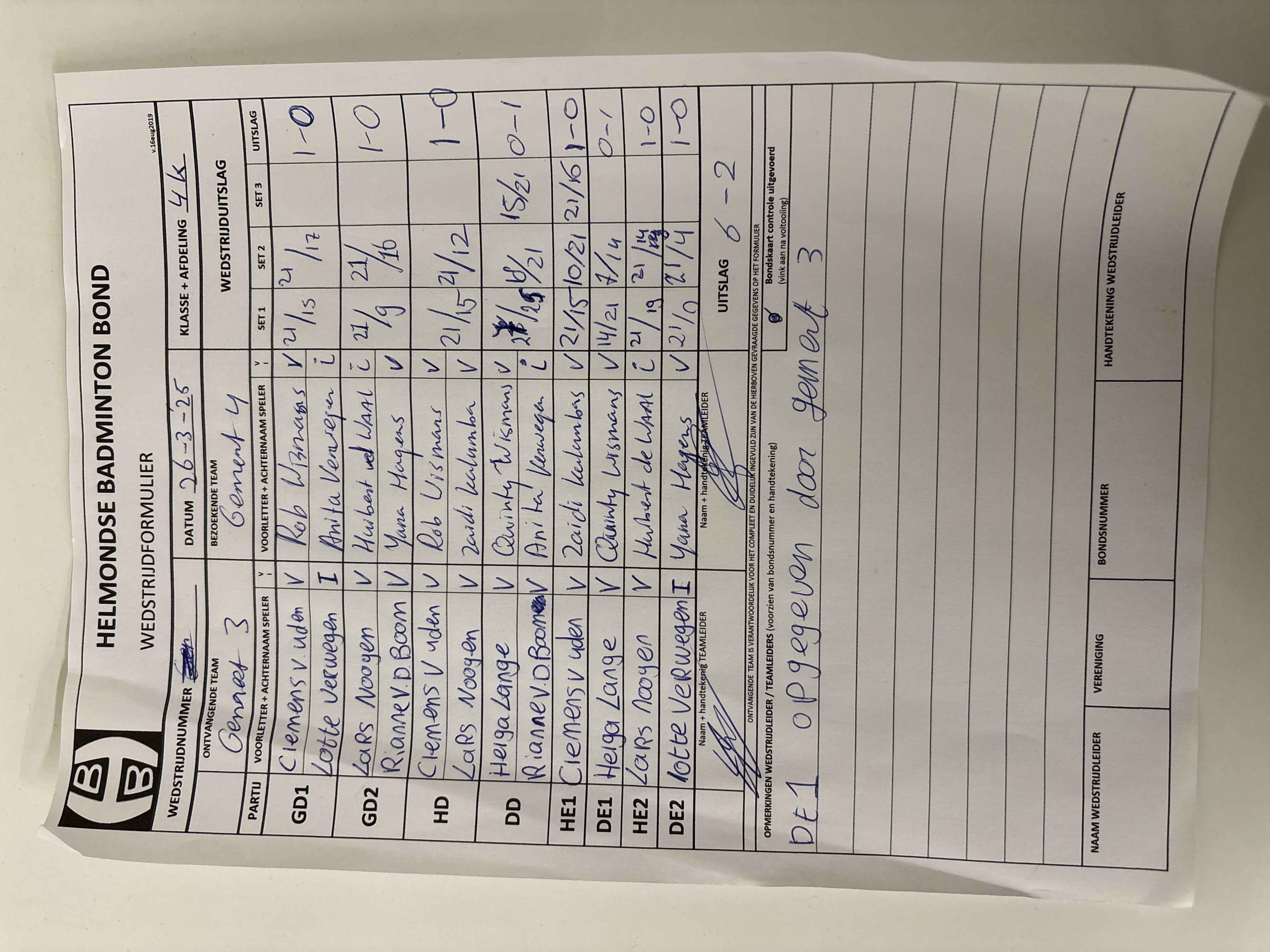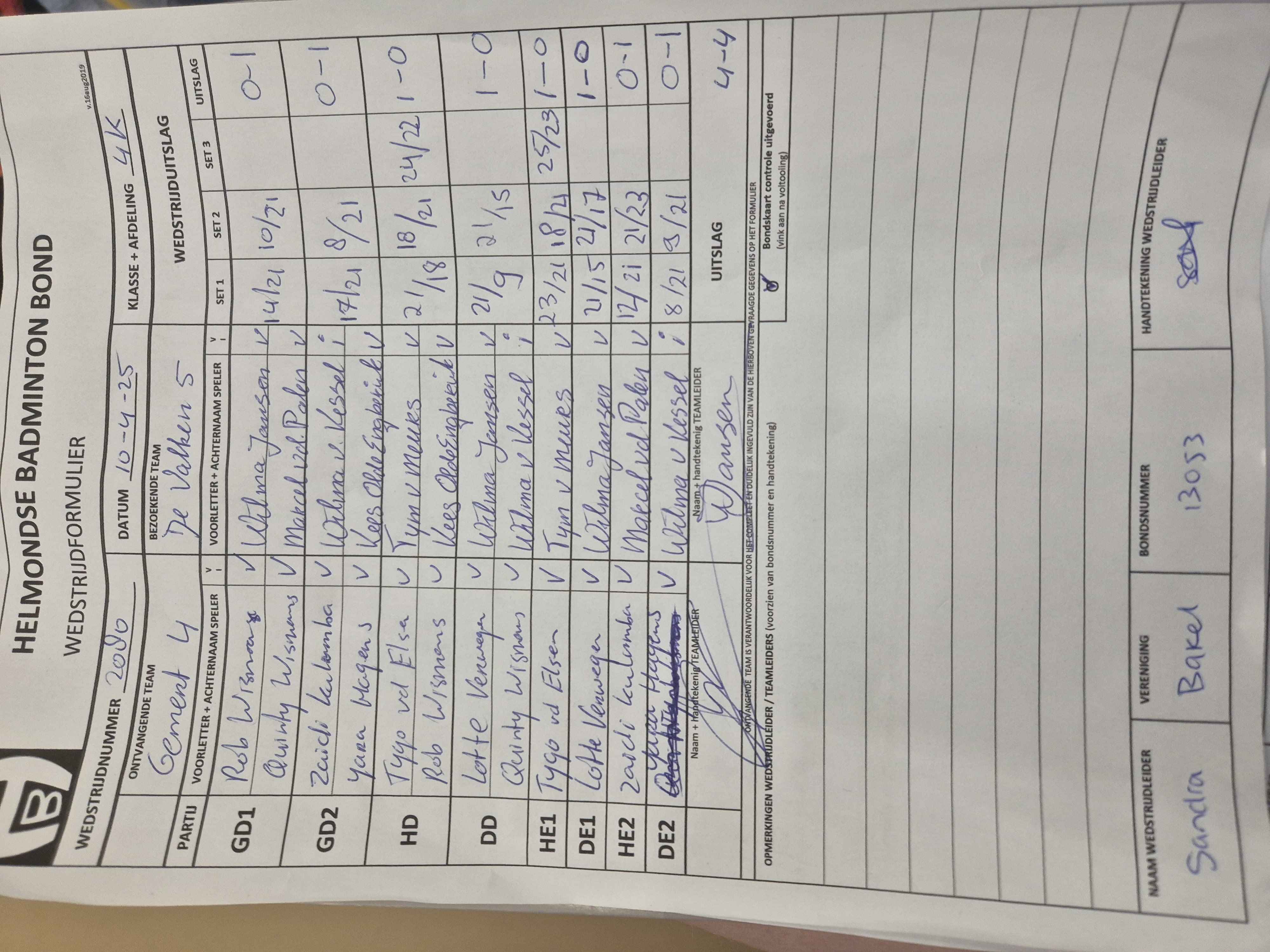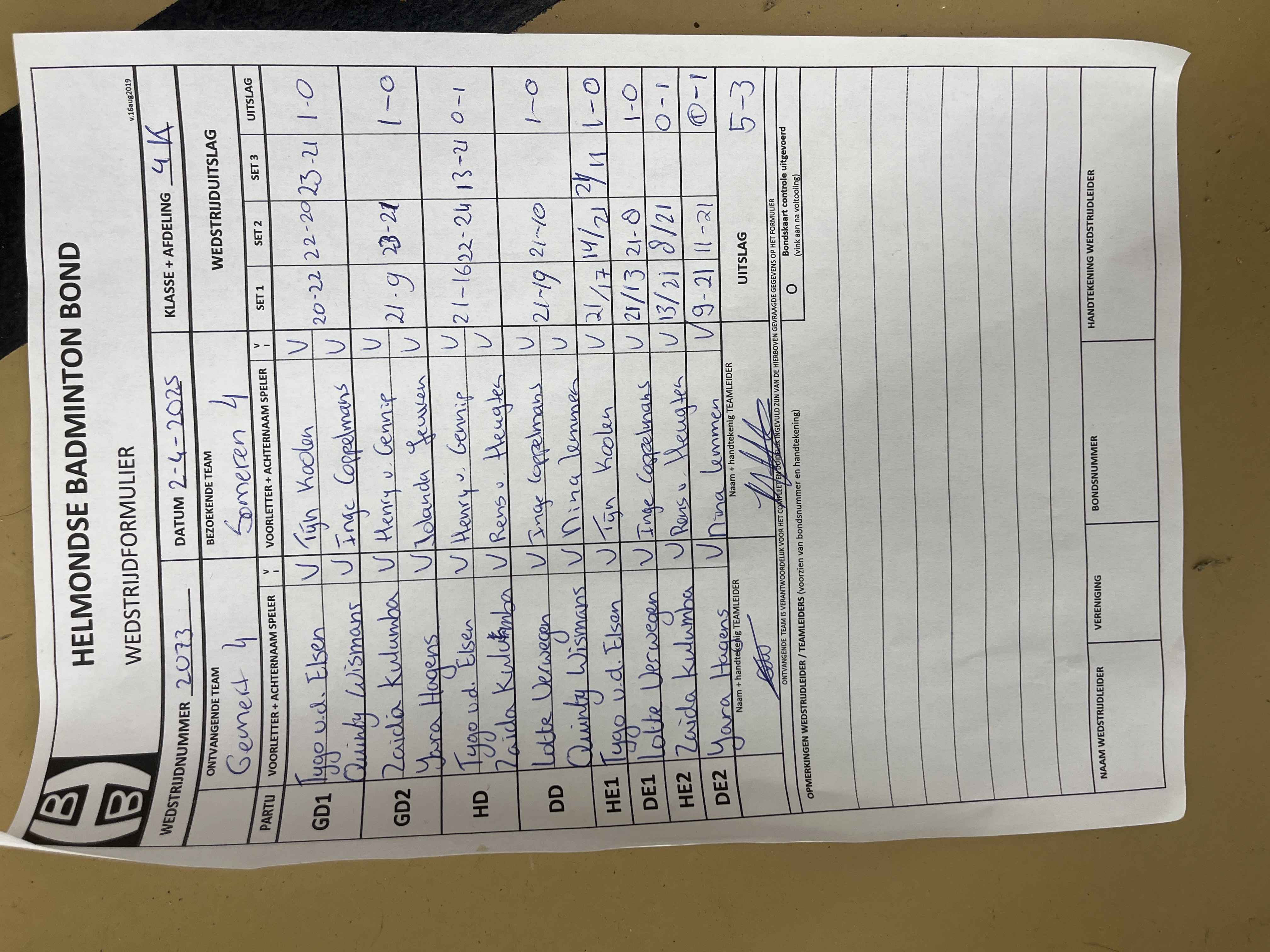 | 2073 | wo. 02-04-2025 | Gemert 4 | - | Someren 4 | 12 | 5 - 3 | |||