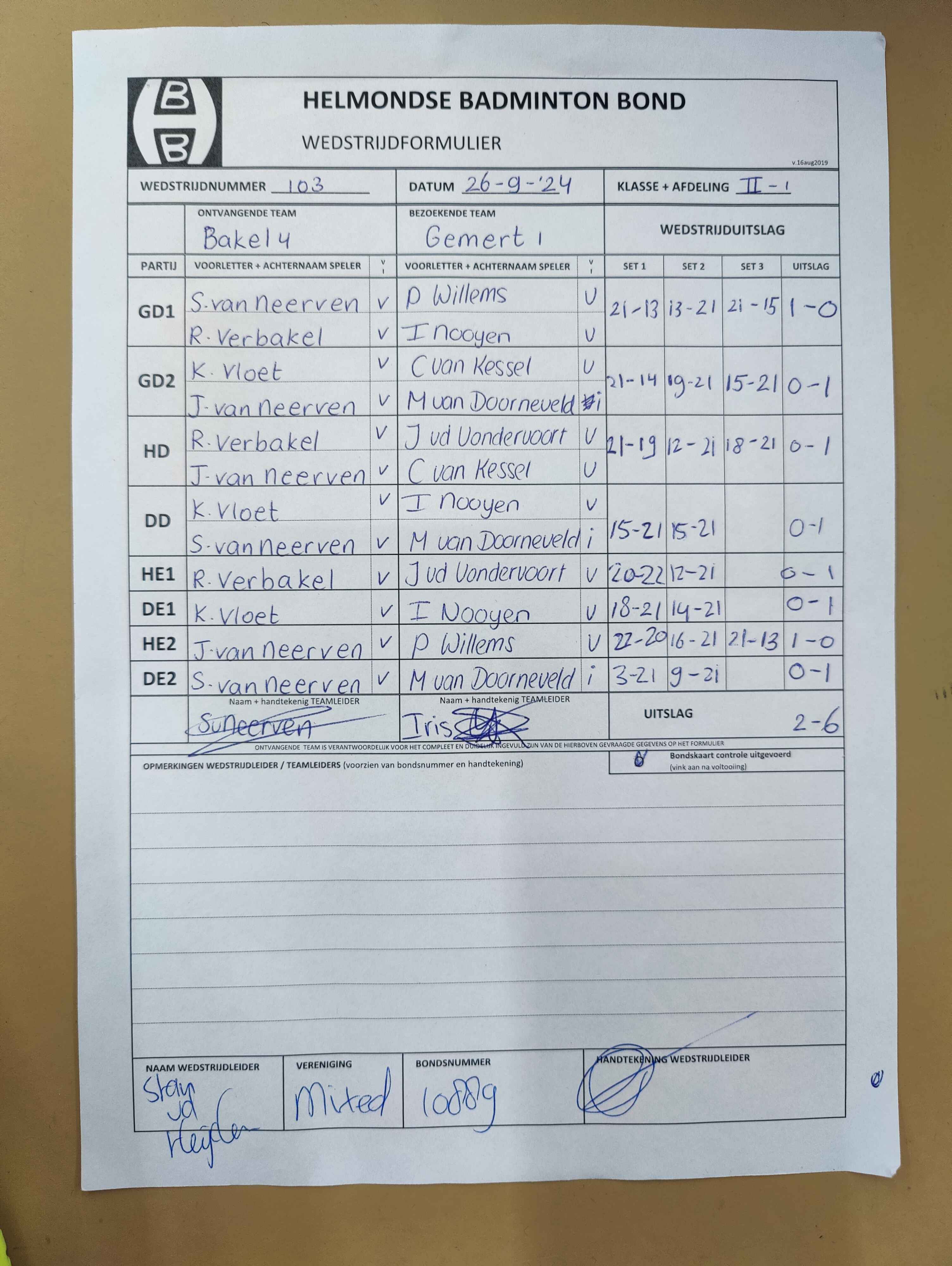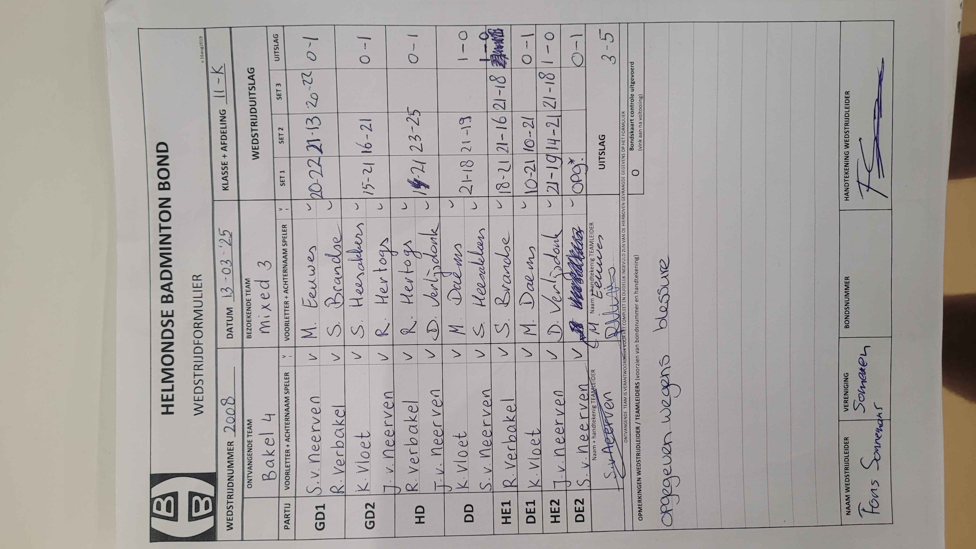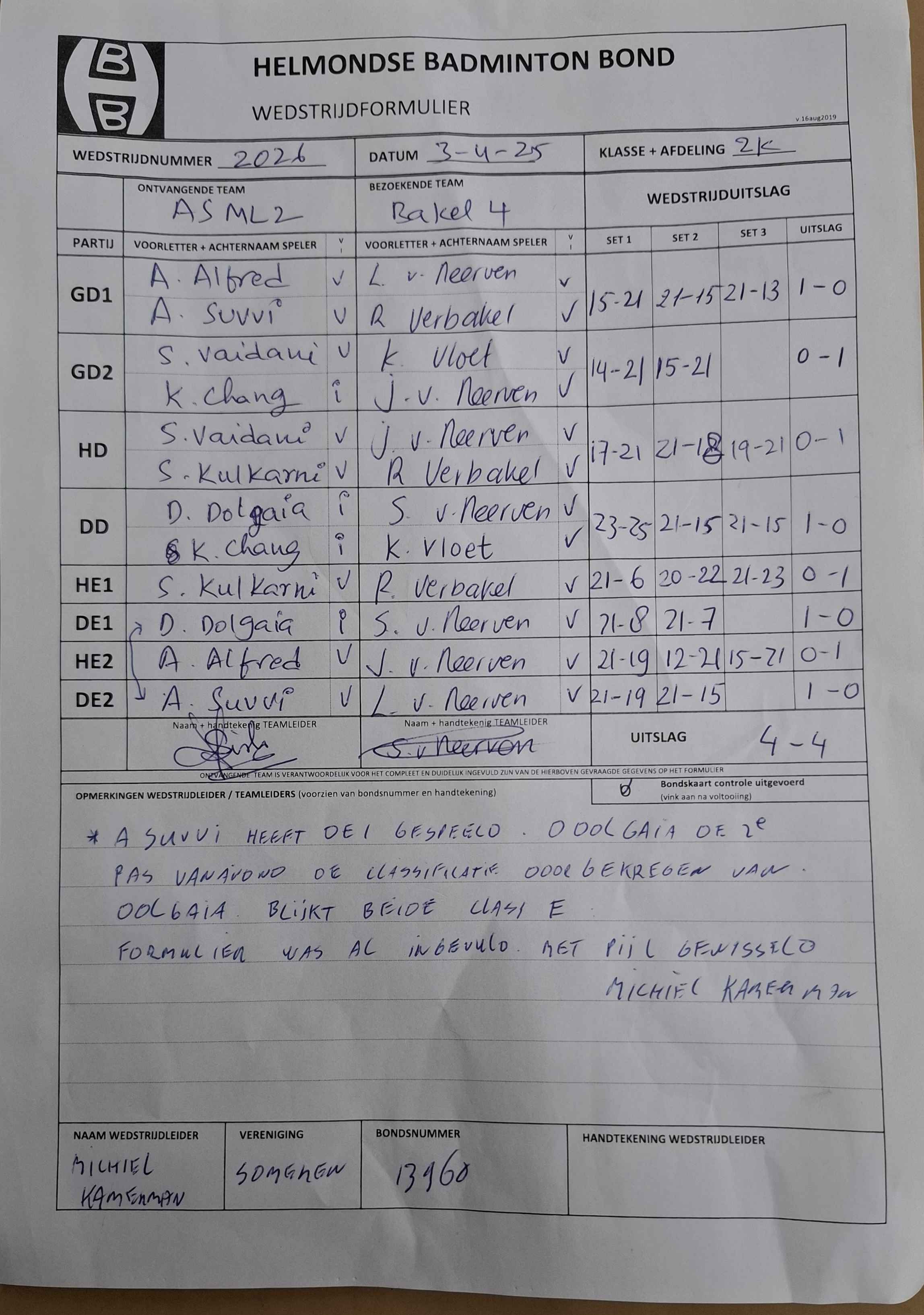 | 2021 | wo. 26-03-2025 | Mixed 4 | - | Bakel 4 | 4 | 5 - 3 | |||