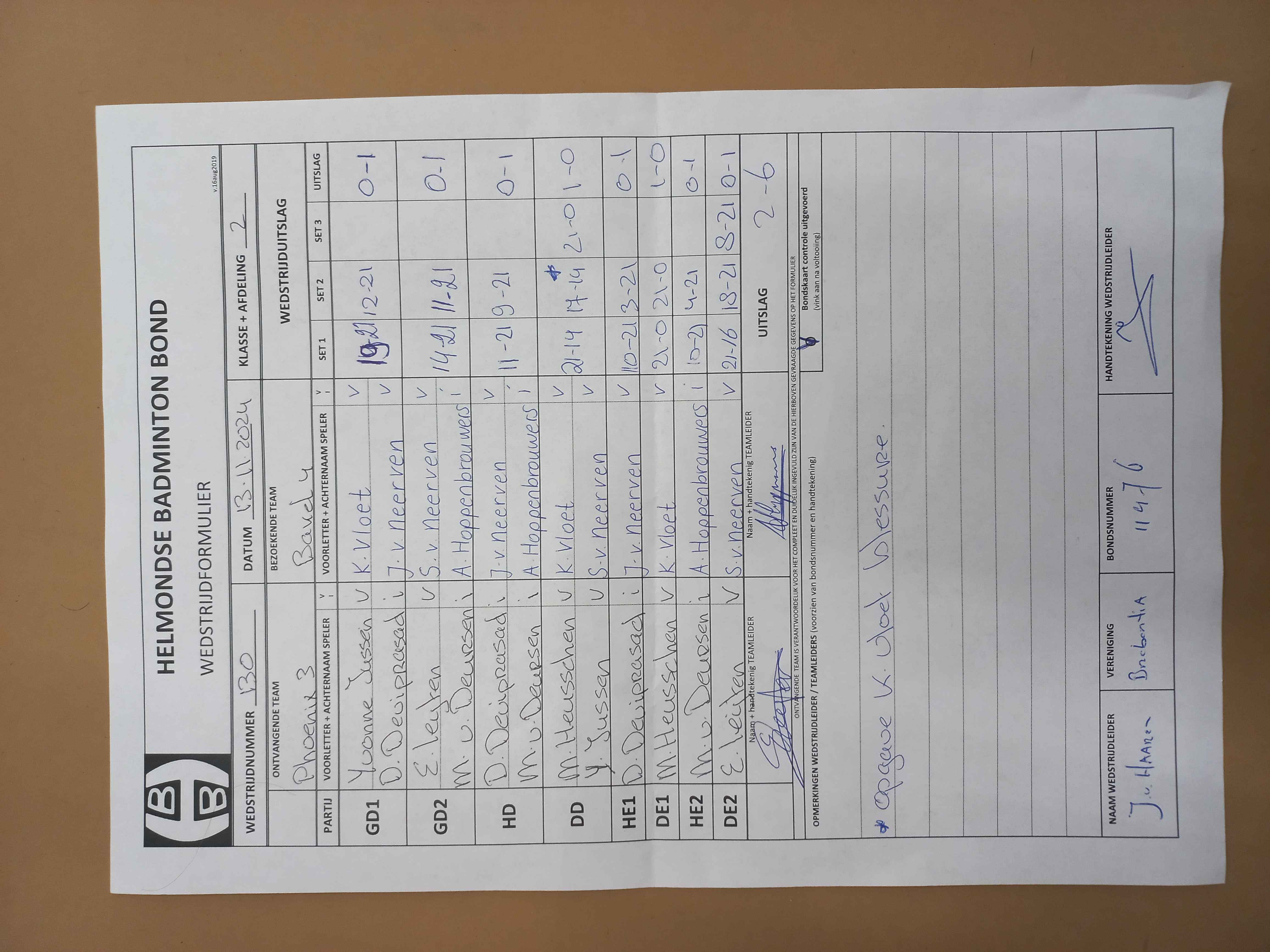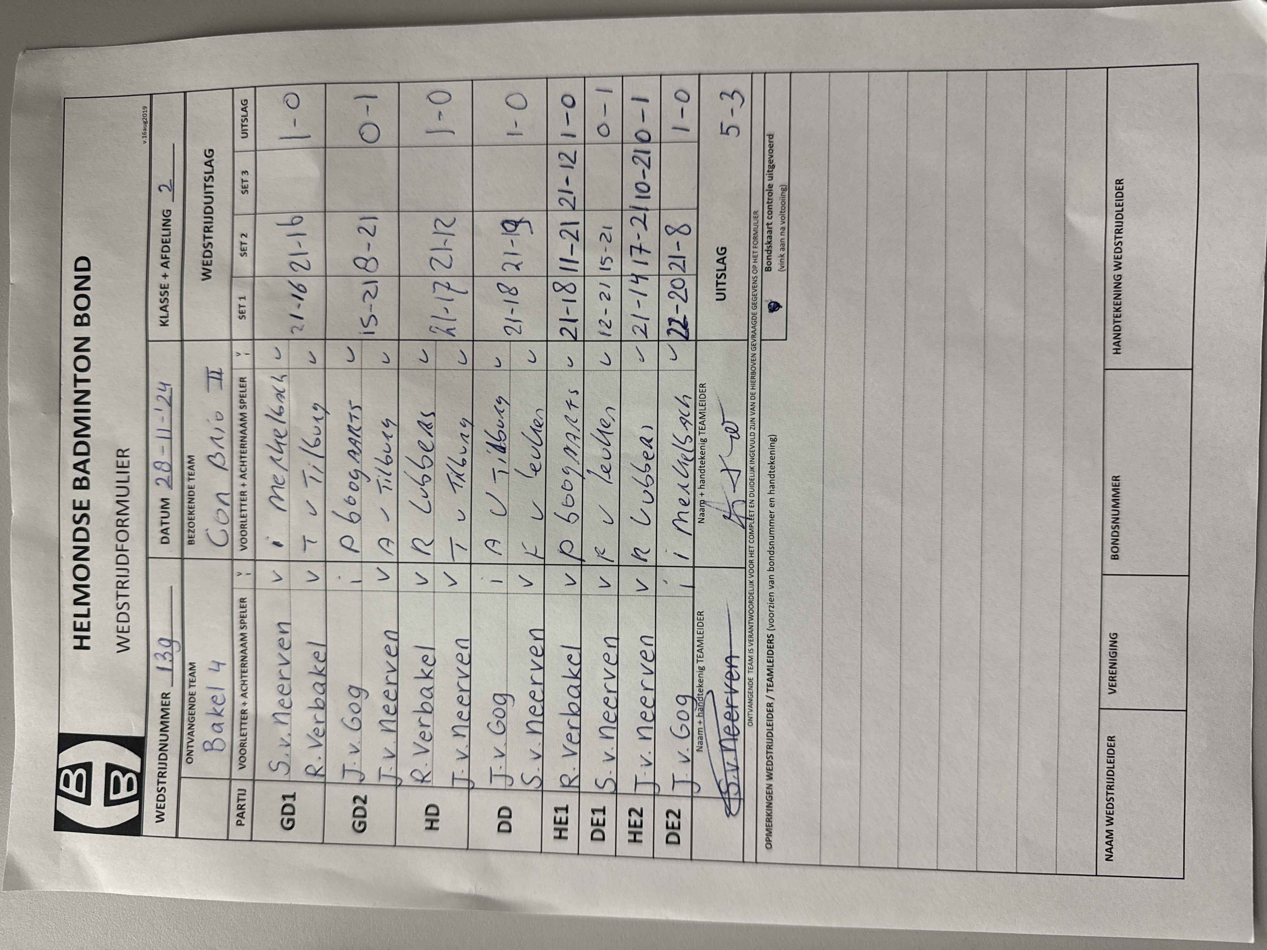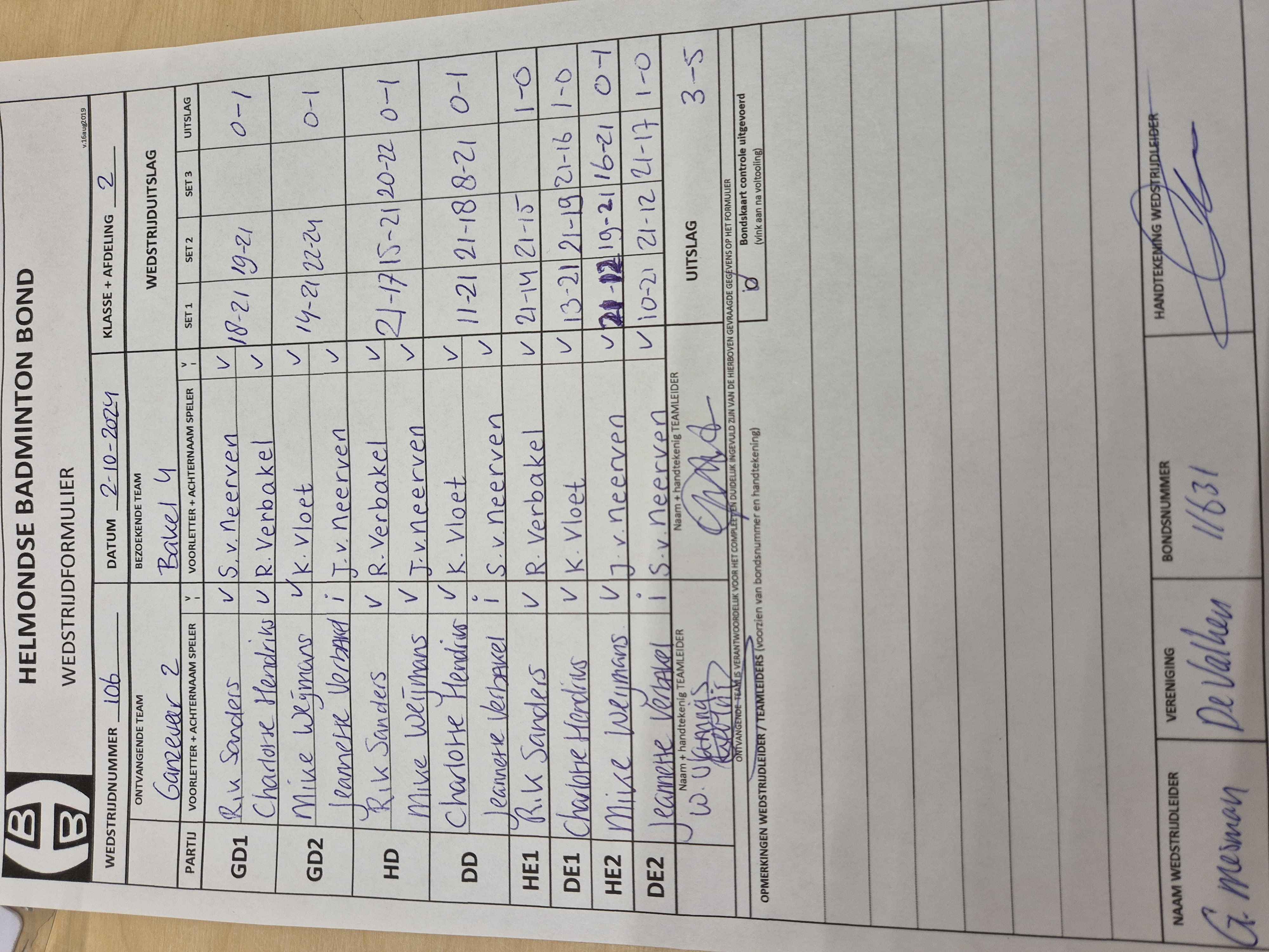 | 2021 | wo. 26-03-2025 | Mixed 4 | - | Bakel 4 | 4 | 5 - 3 | |||
