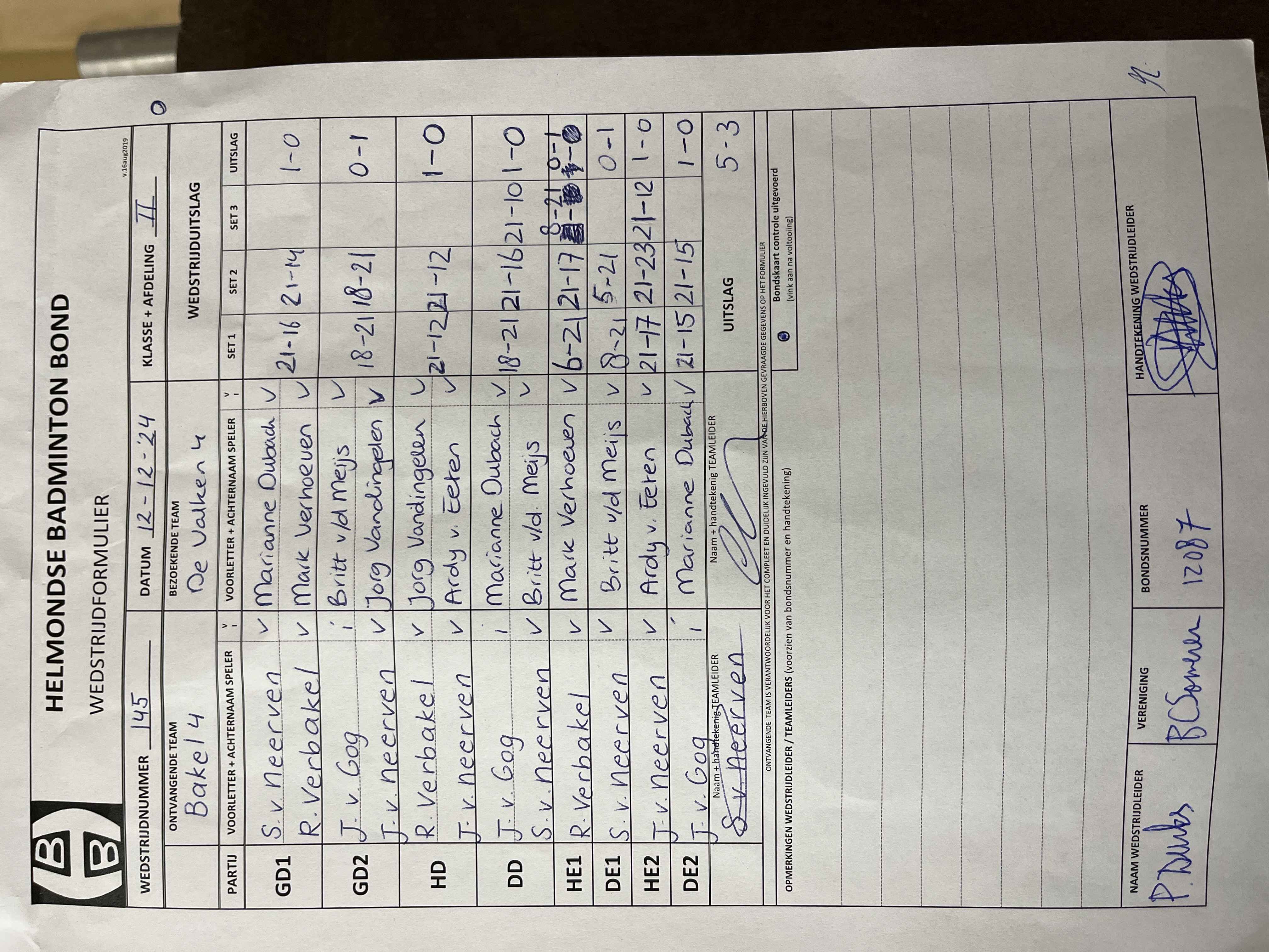 | 145 | do. 12-12-2024 | Bakel 4 | - | De Valken 4 | 12 | 5 - 3 | |||