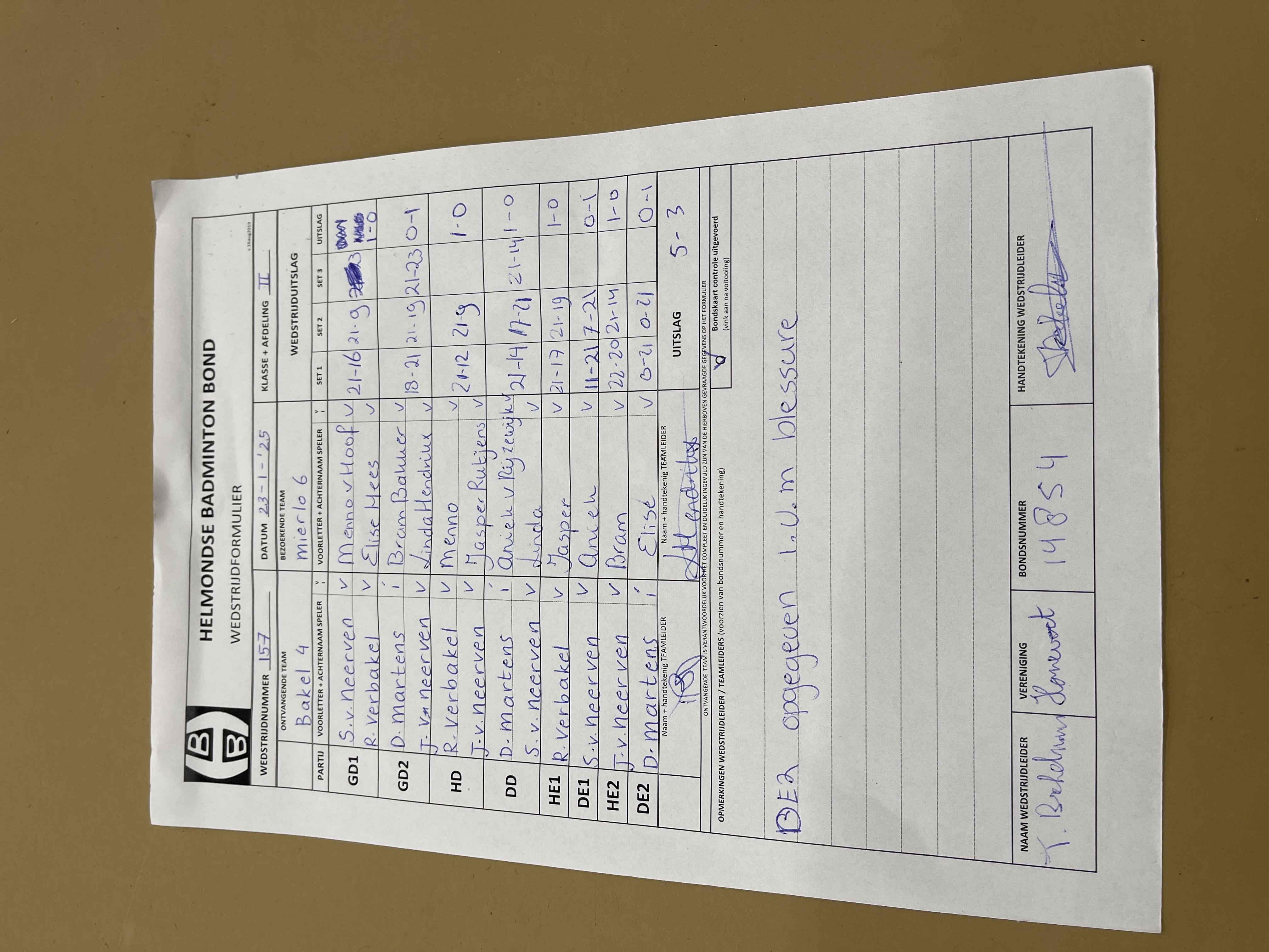 | 157 | do. 23-01-2025 | Bakel 4 | - | Mierlo 6 | 5 | 5 - 3 | |||