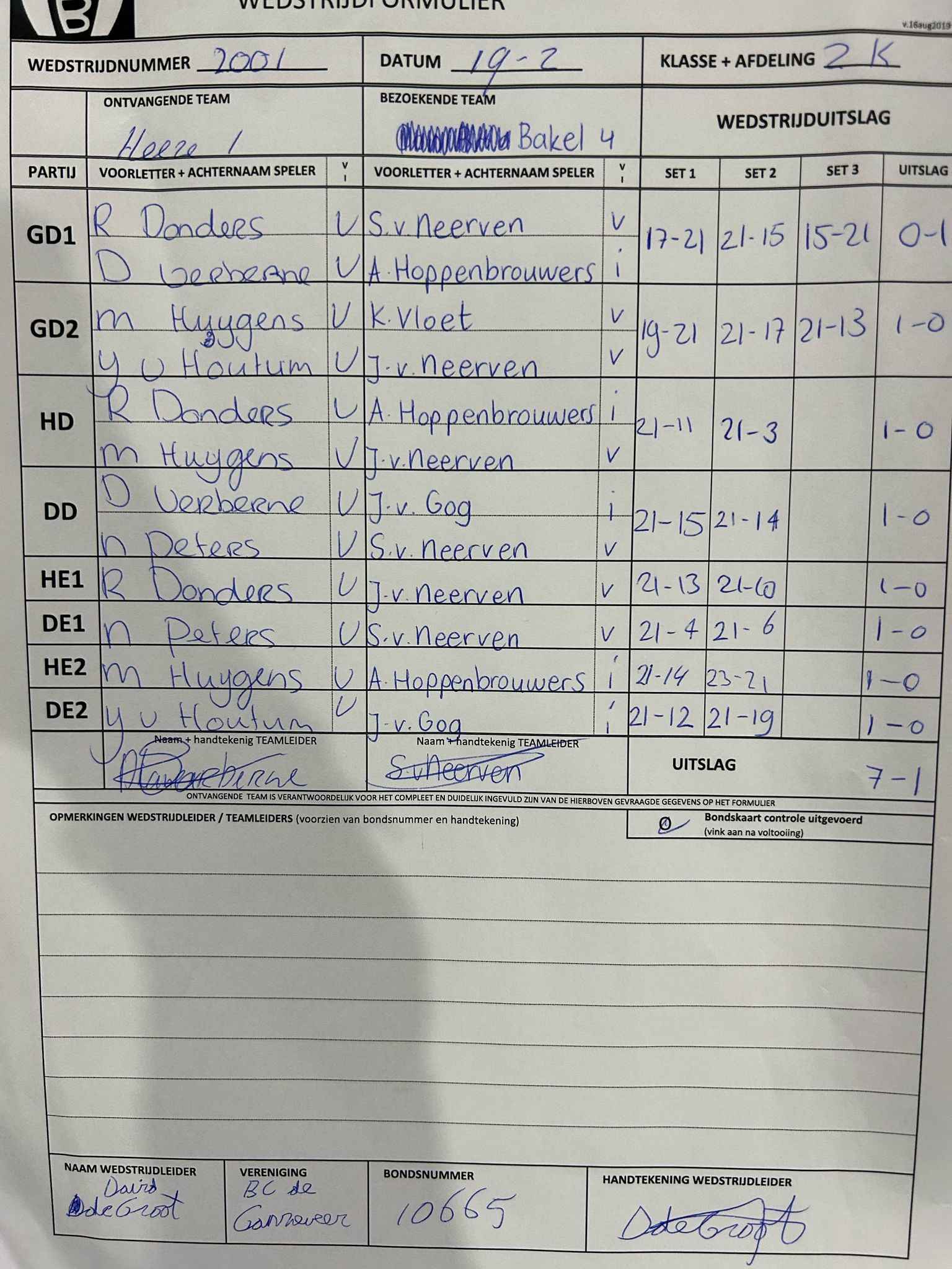 | 2001 | wo. 19-02-2025 | Heeze 1 | - | Bakel 4 | 12 | 7 - 1 | |||