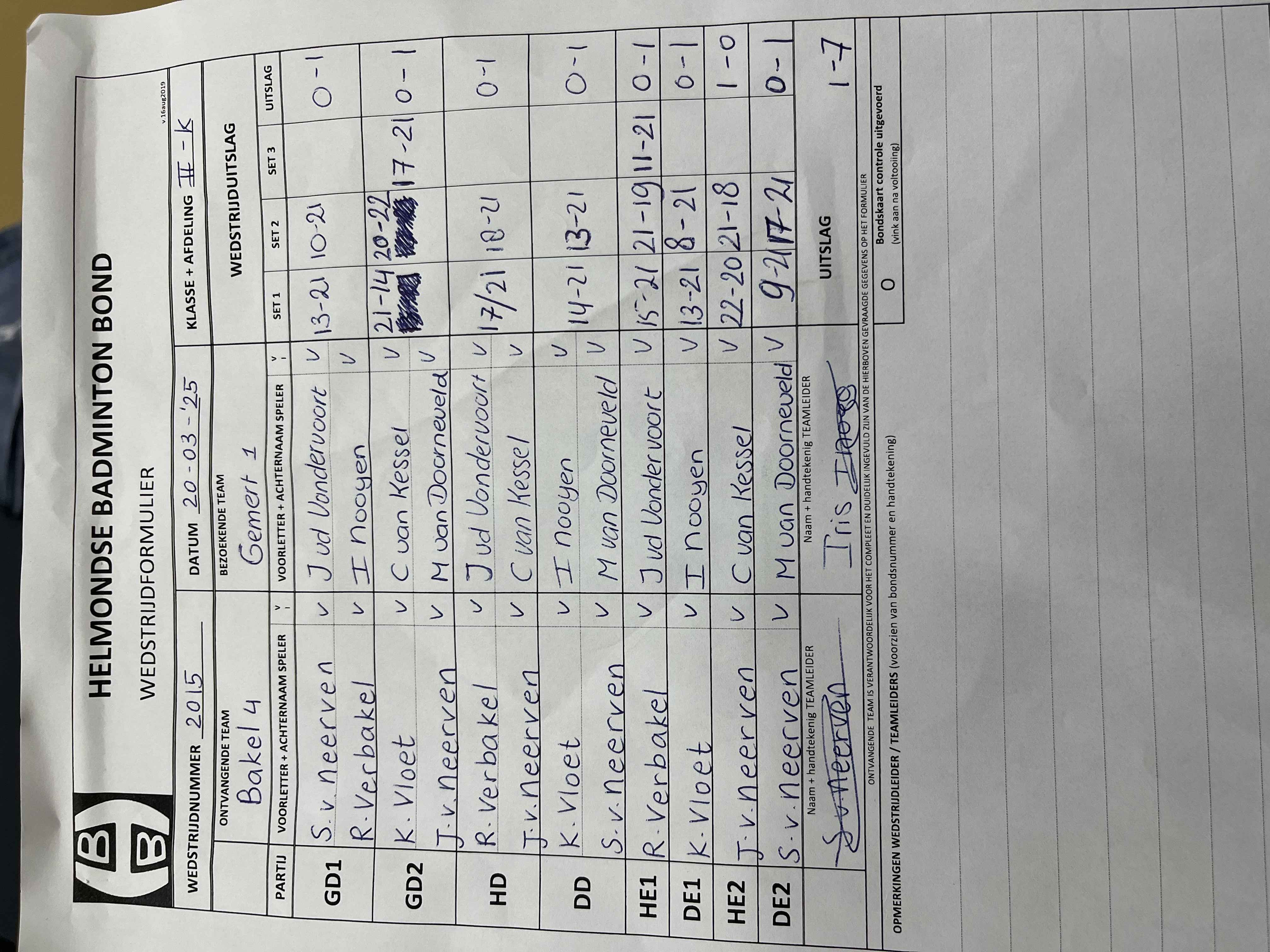 | 2015 | do. 20-03-2025 | Bakel 4 | - | Gemert 1 | 12 | 1 - 7 | |||