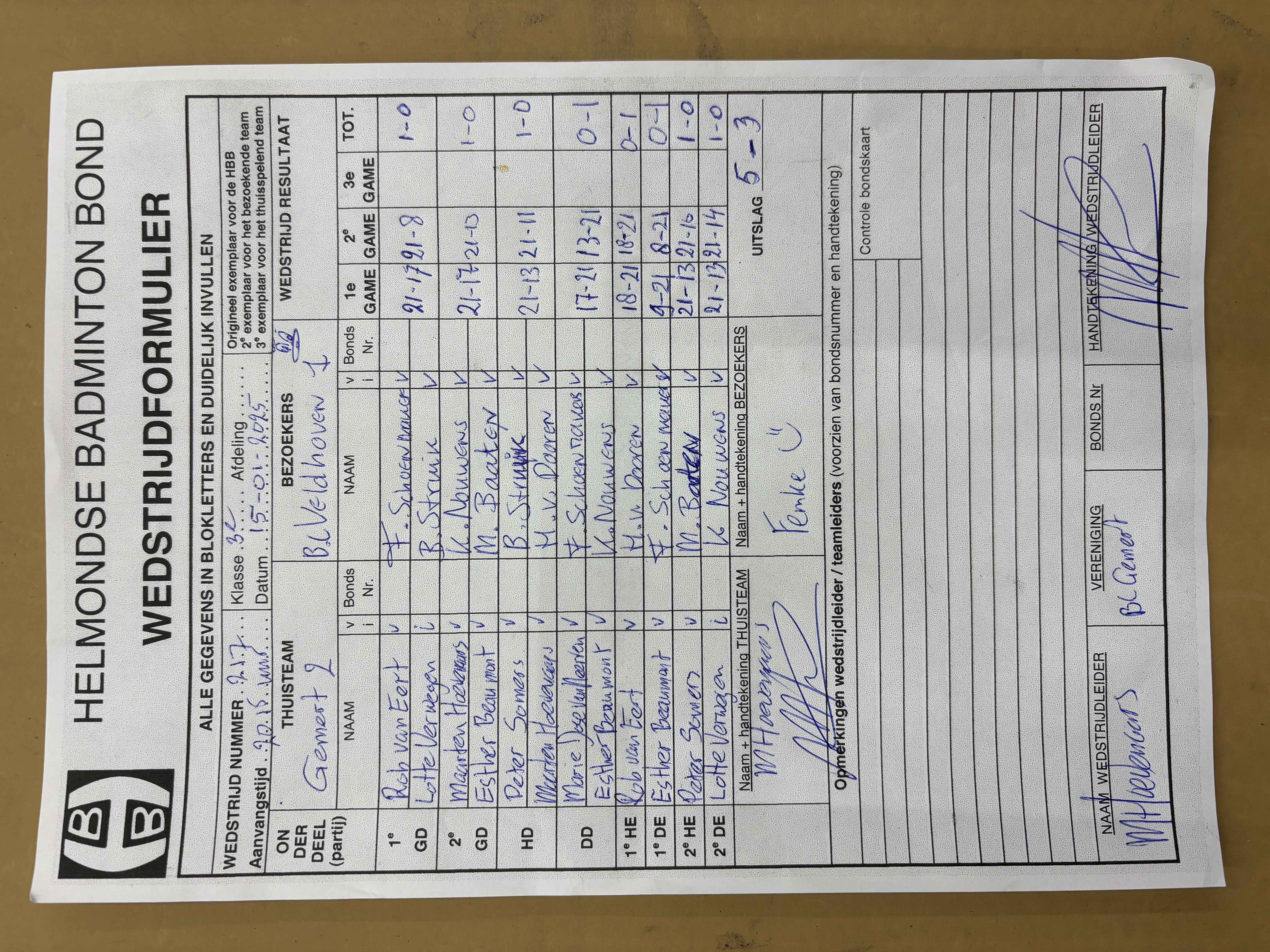 | 217 | wo. 15-01-2025 | Gemert 2 | - | Veldhoven 1 | 13 | 5 - 3 | |||