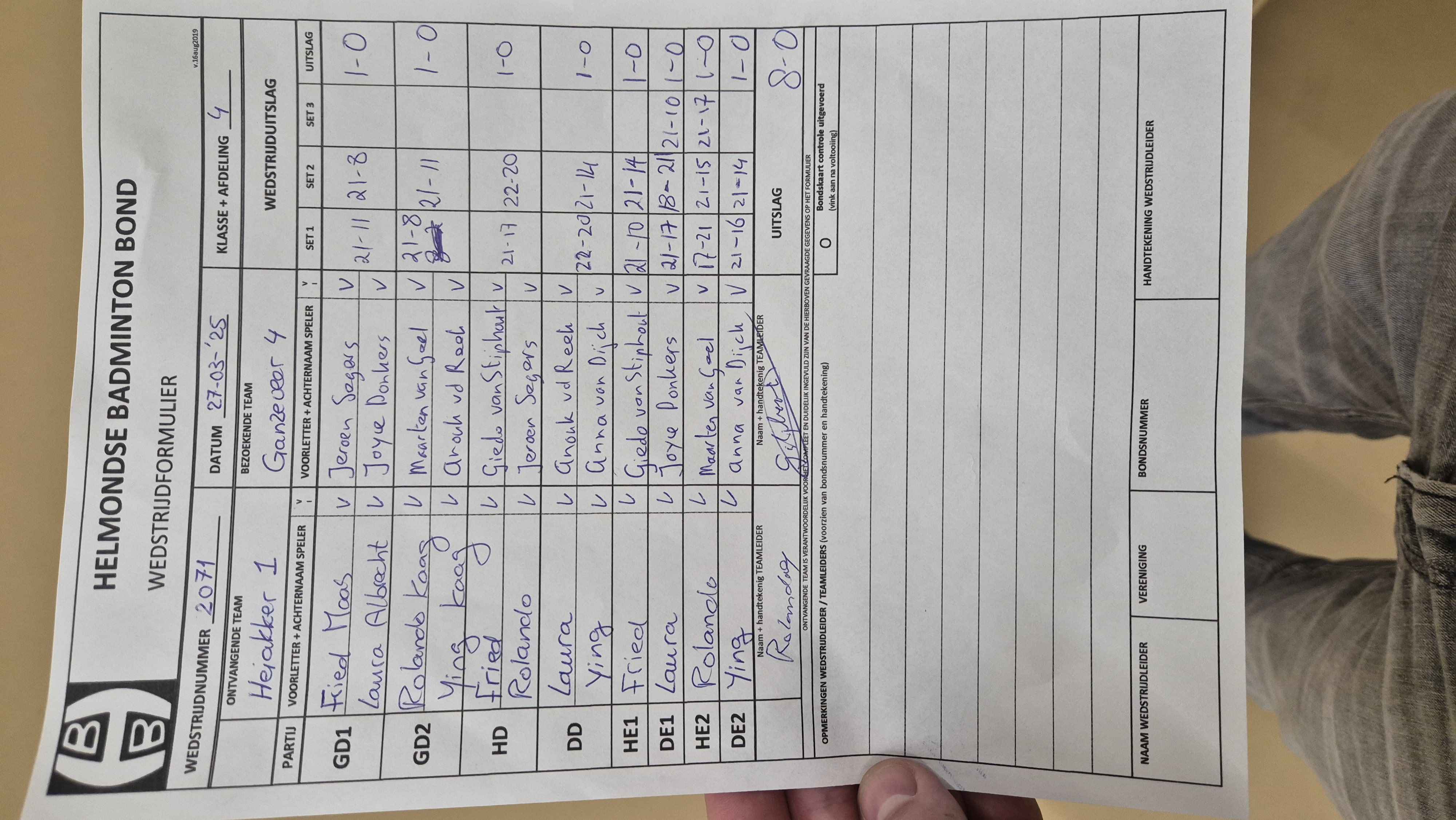 | 2071 | do. 27-03-2025 | Heiakker 1 | - | Ganzeveer 4 | 15 | 8 - 0 | |||