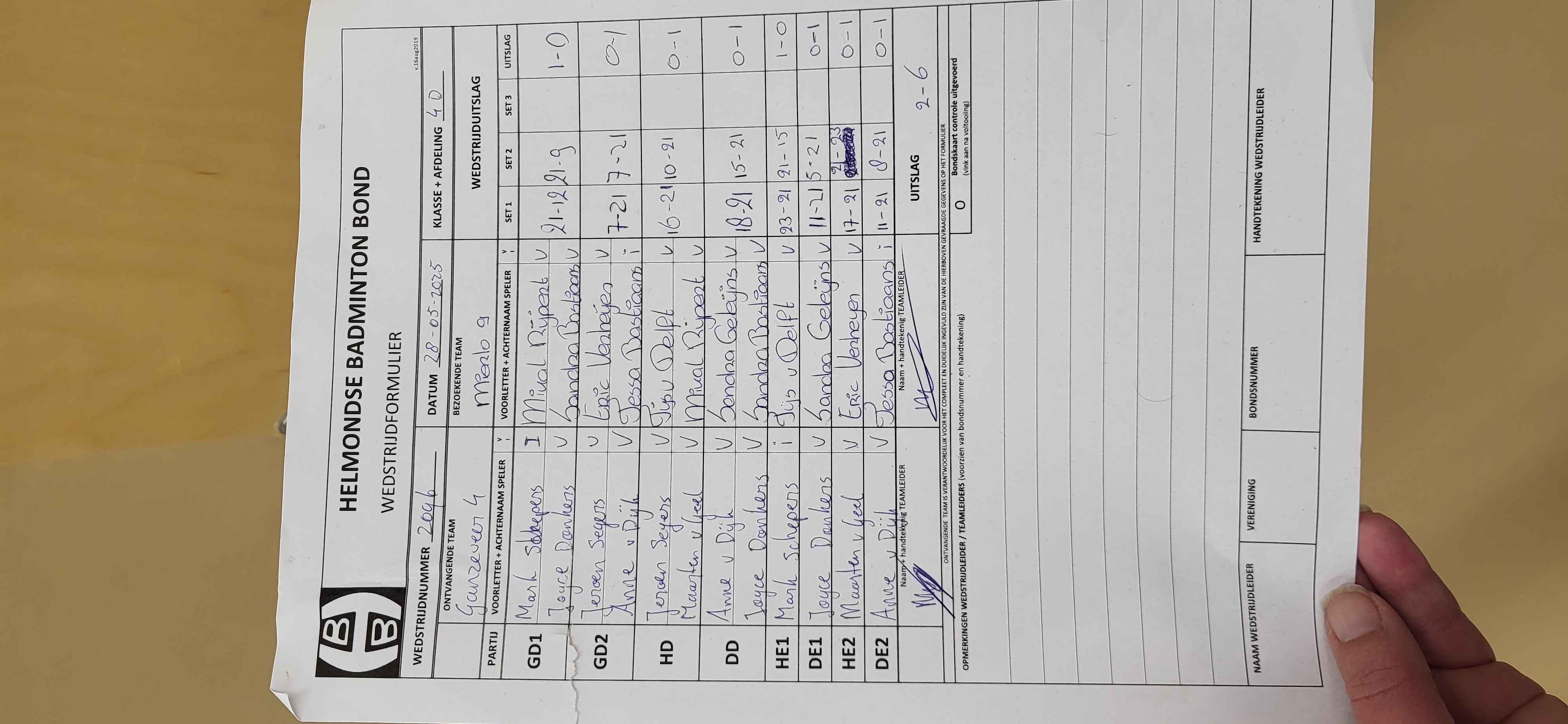 | 2096 | wo. 28-05-2025 | Ganzeveer 4 | - | Mierlo 9 | 15 | 2 - 6 | |||
