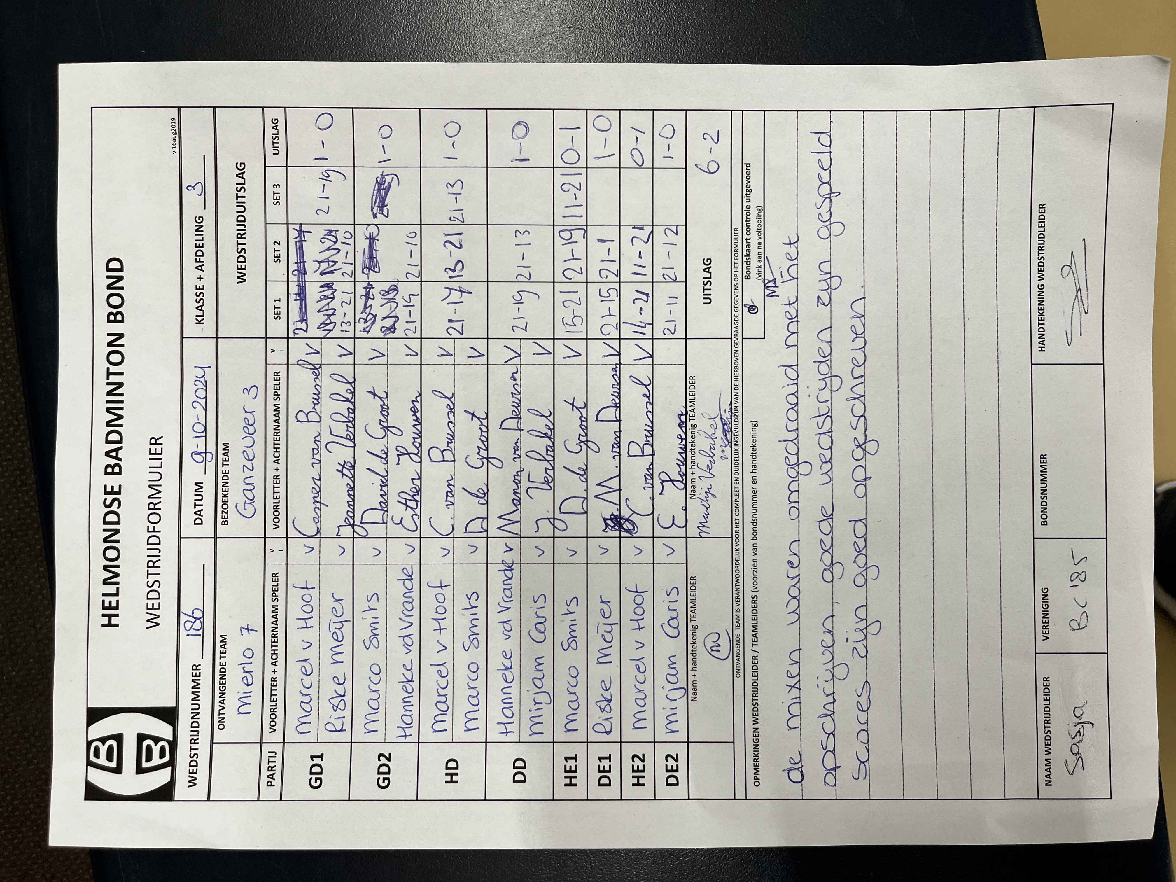 | 186 | wo. 09-10-2024 | Mierlo 7 | - | Ganzeveer 3 | 12 | 6 - 2 | |||