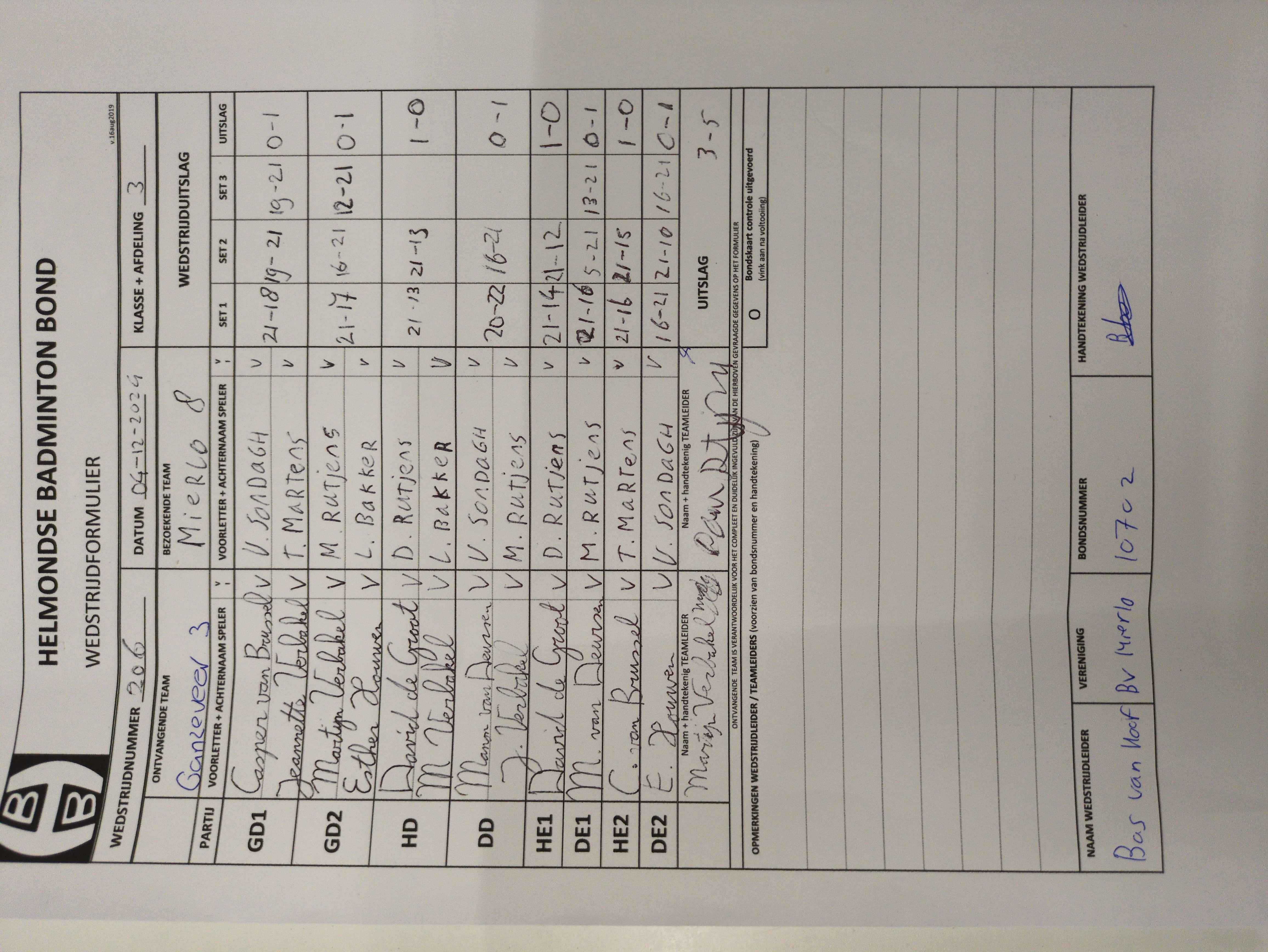 | 206 | wo. 04-12-2024 | Ganzeveer 3 | - | Mierlo 8 | 13 | 3 - 5 | |||