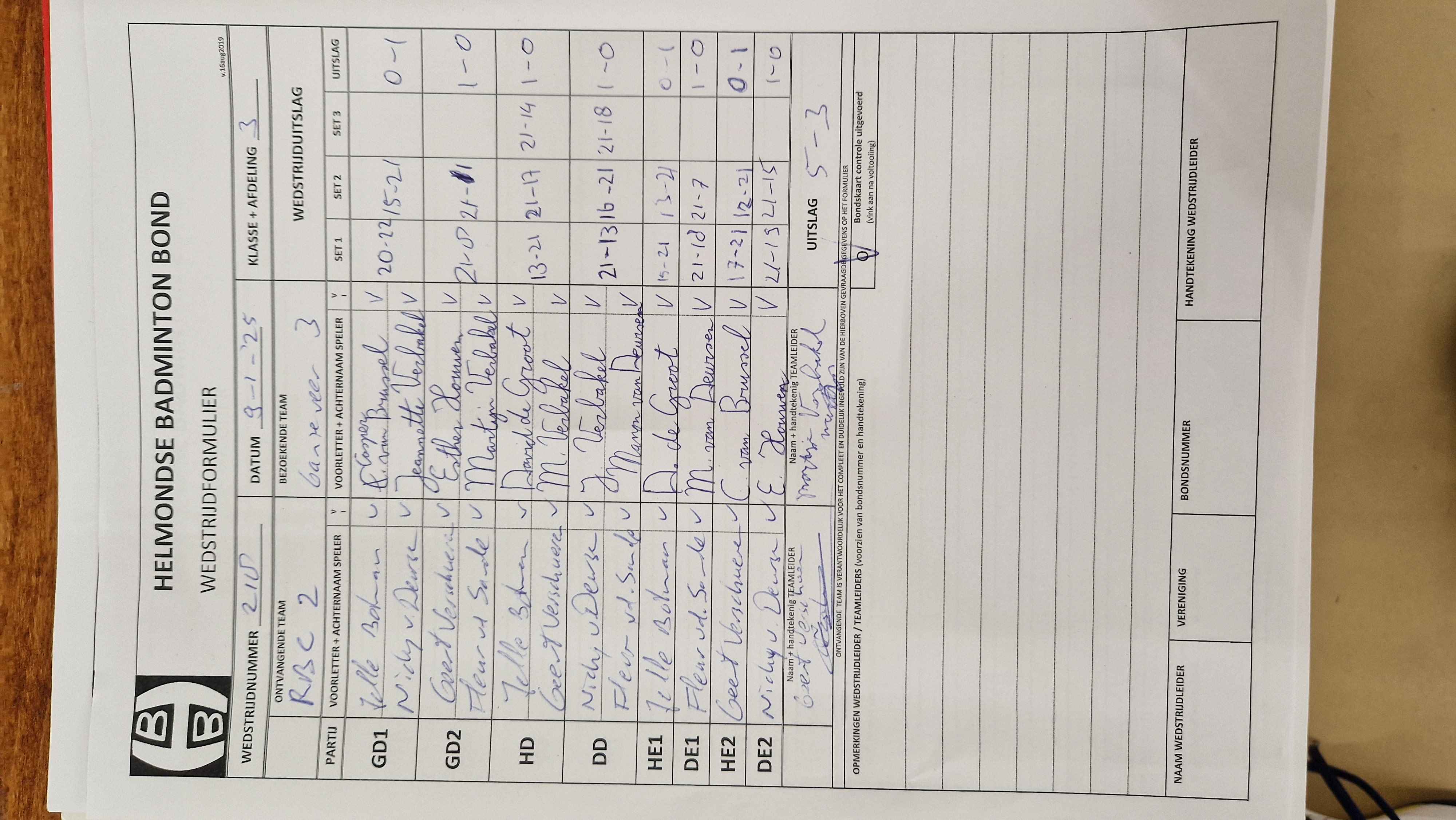 | 218 | do. 09-01-2025 | RBC 2 | - | Ganzeveer 3 | 12 | 5 - 3 | |||