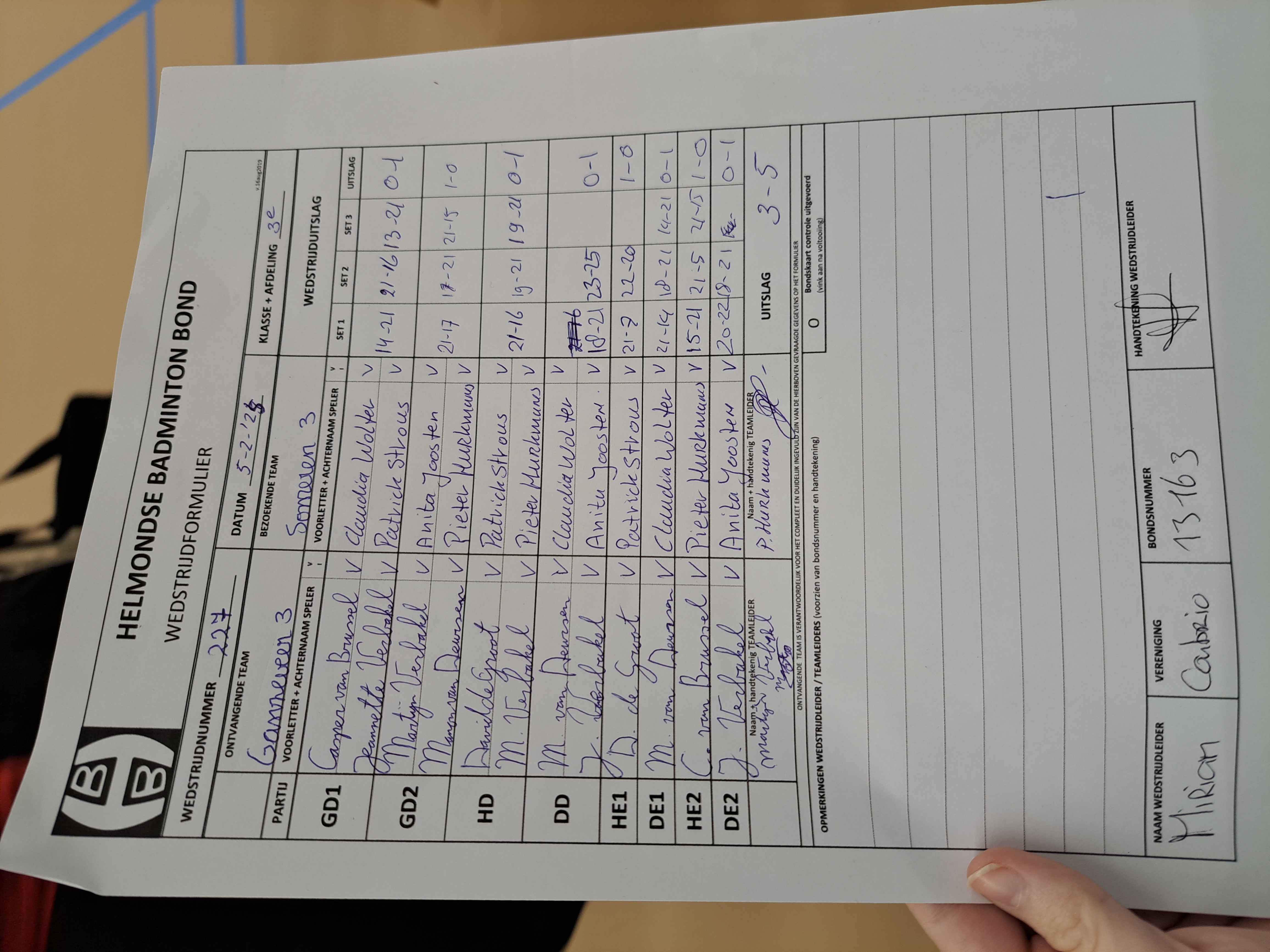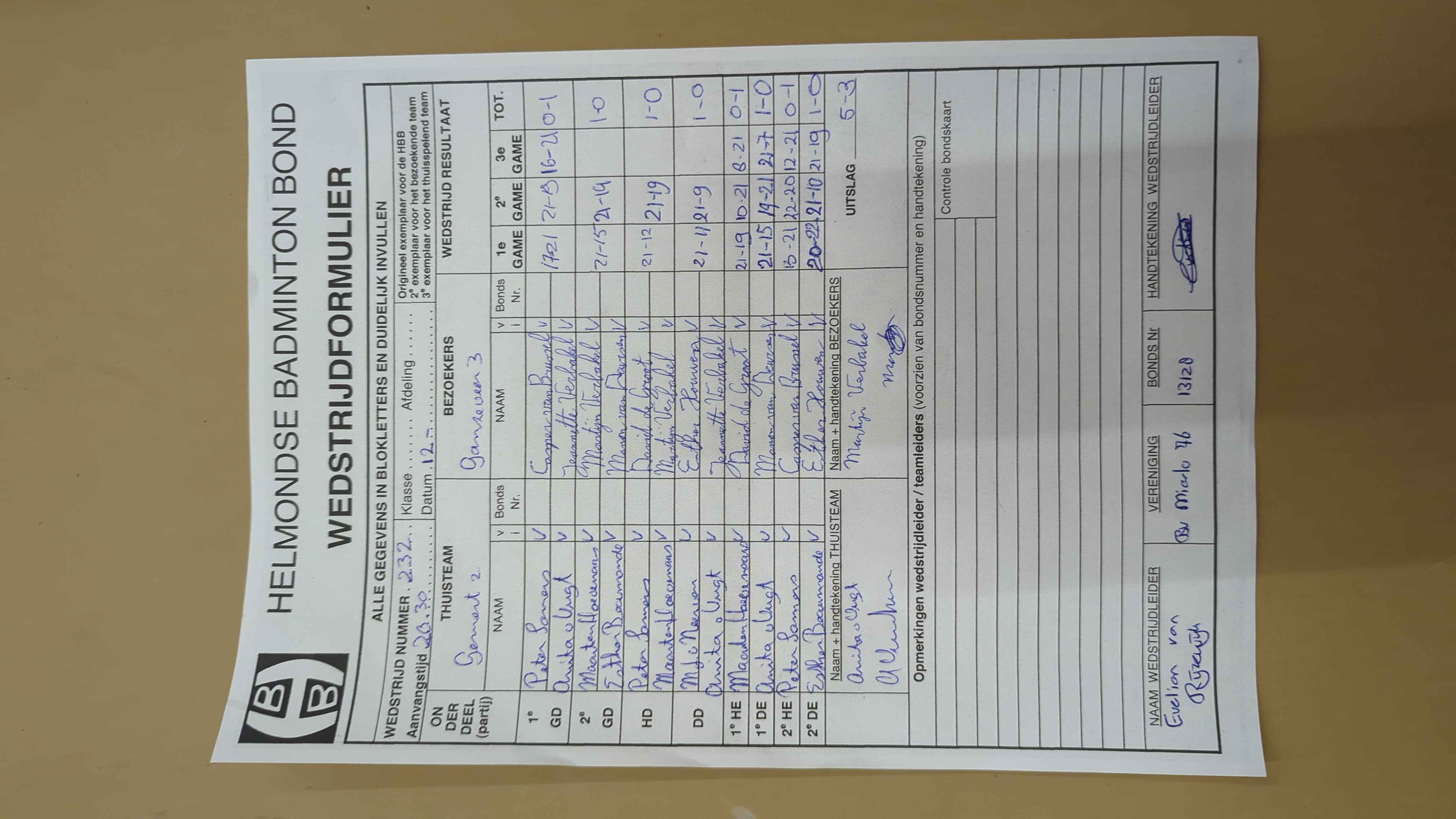 | 232 | wo. 12-02-2025 | Gemert 2 | - | Ganzeveer 3 | 11 | 5 - 3 | |||