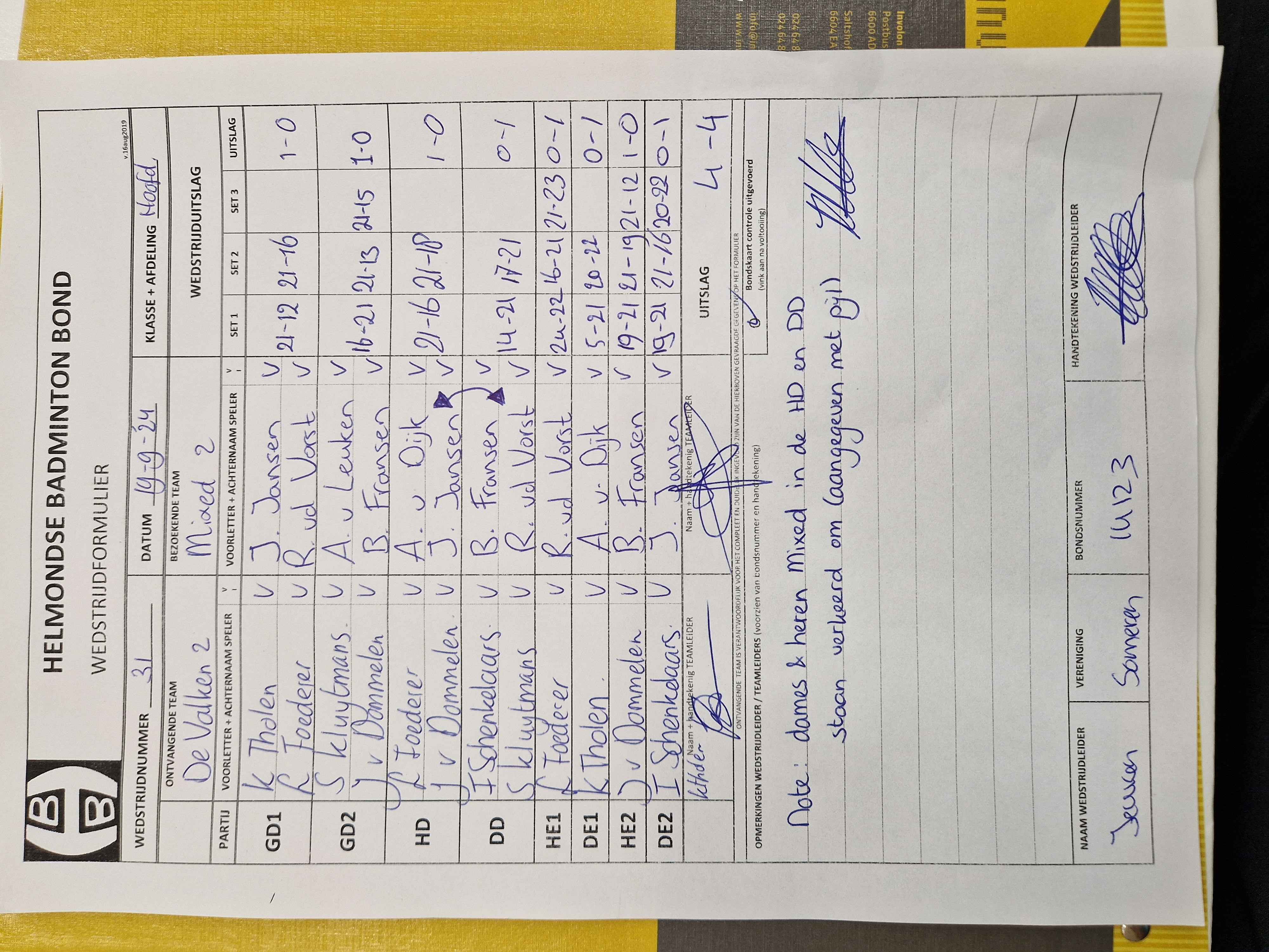 | 31 | do. 19-09-2024 | De Valken 2 | - | Mixed 2 | 15 | 4 - 4 | |||