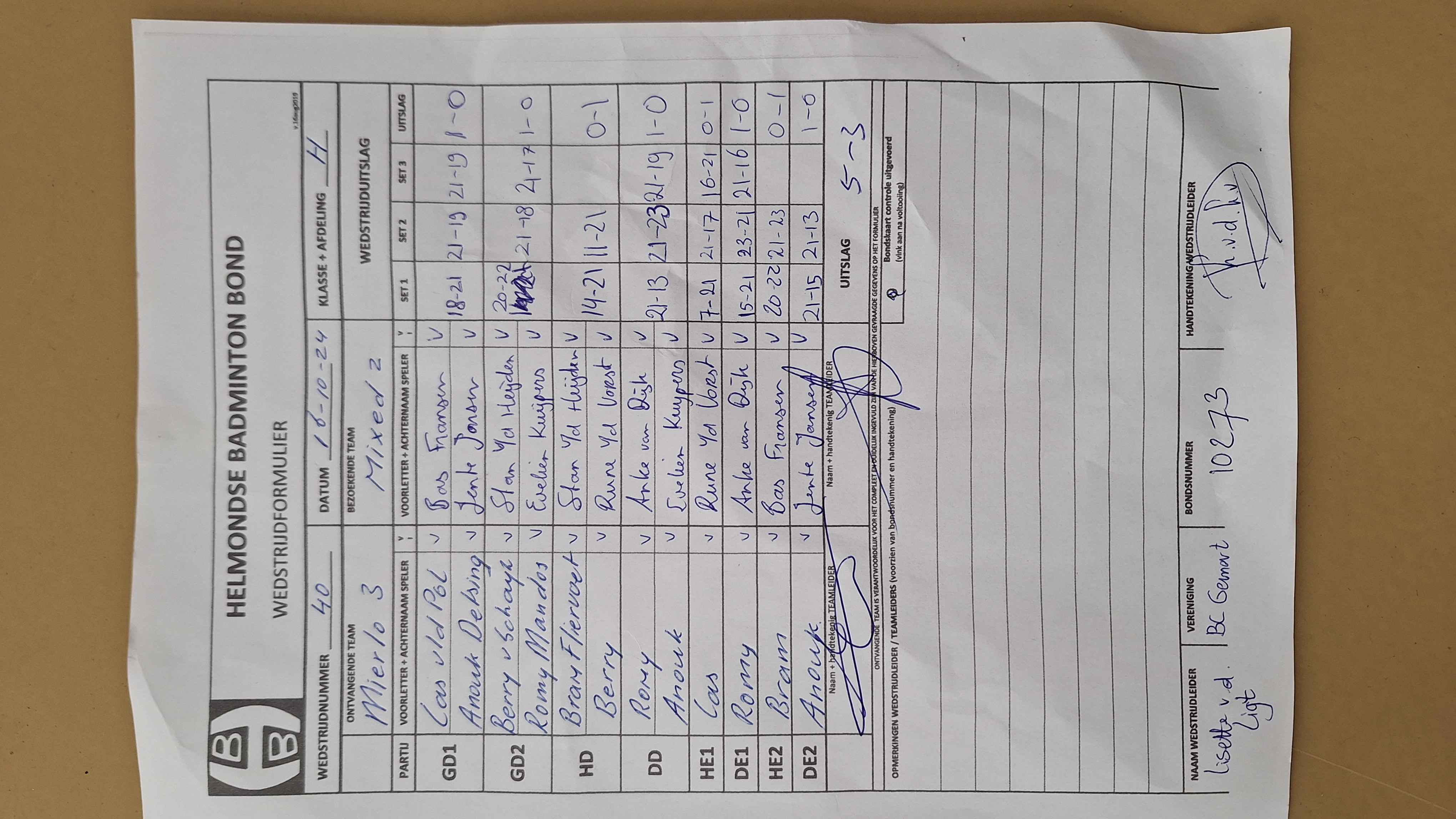 | 40 | wo. 16-10-2024 | Mierlo 3 | - | Mixed 2 | 4 | 5 - 3 | |||