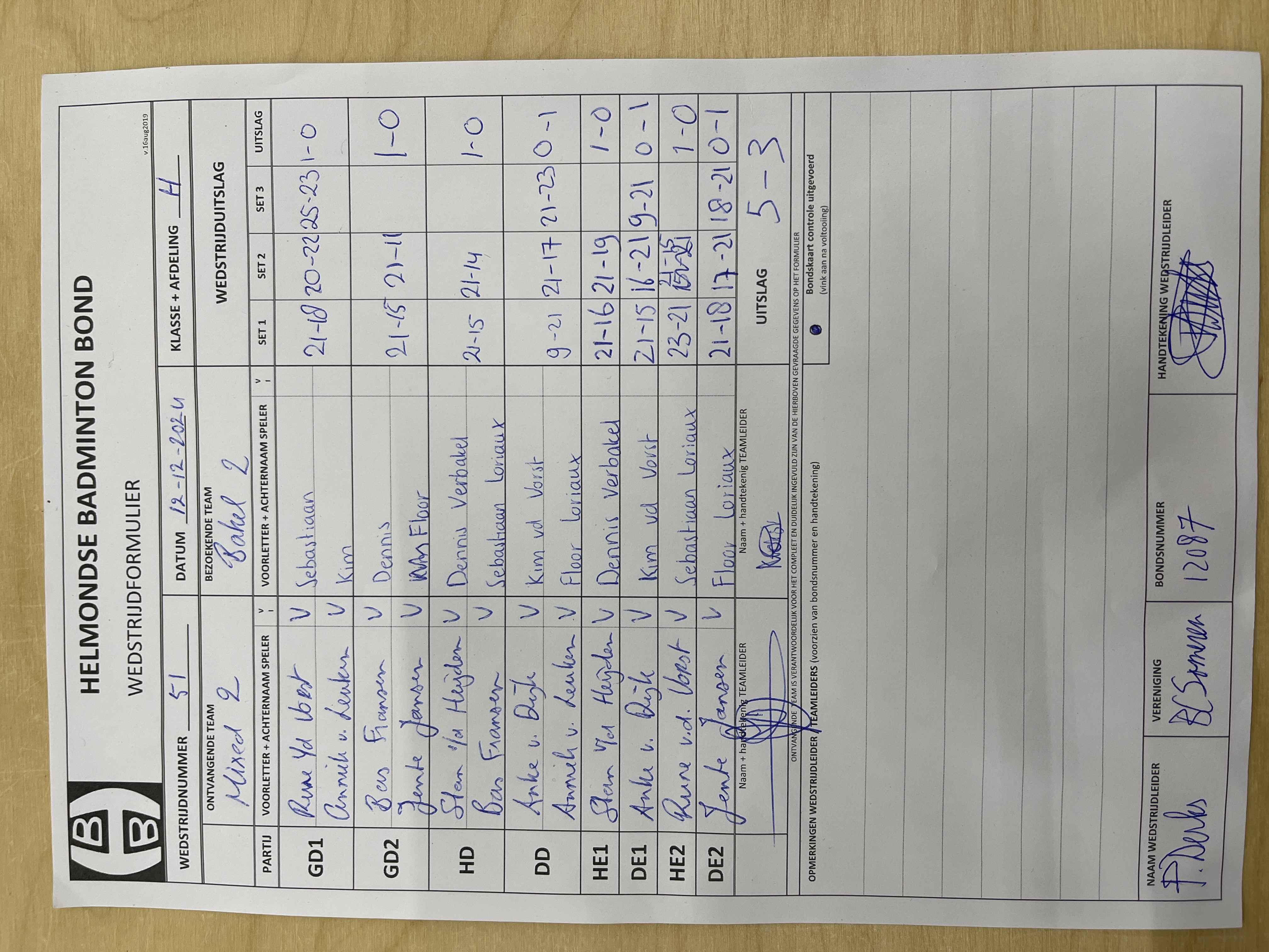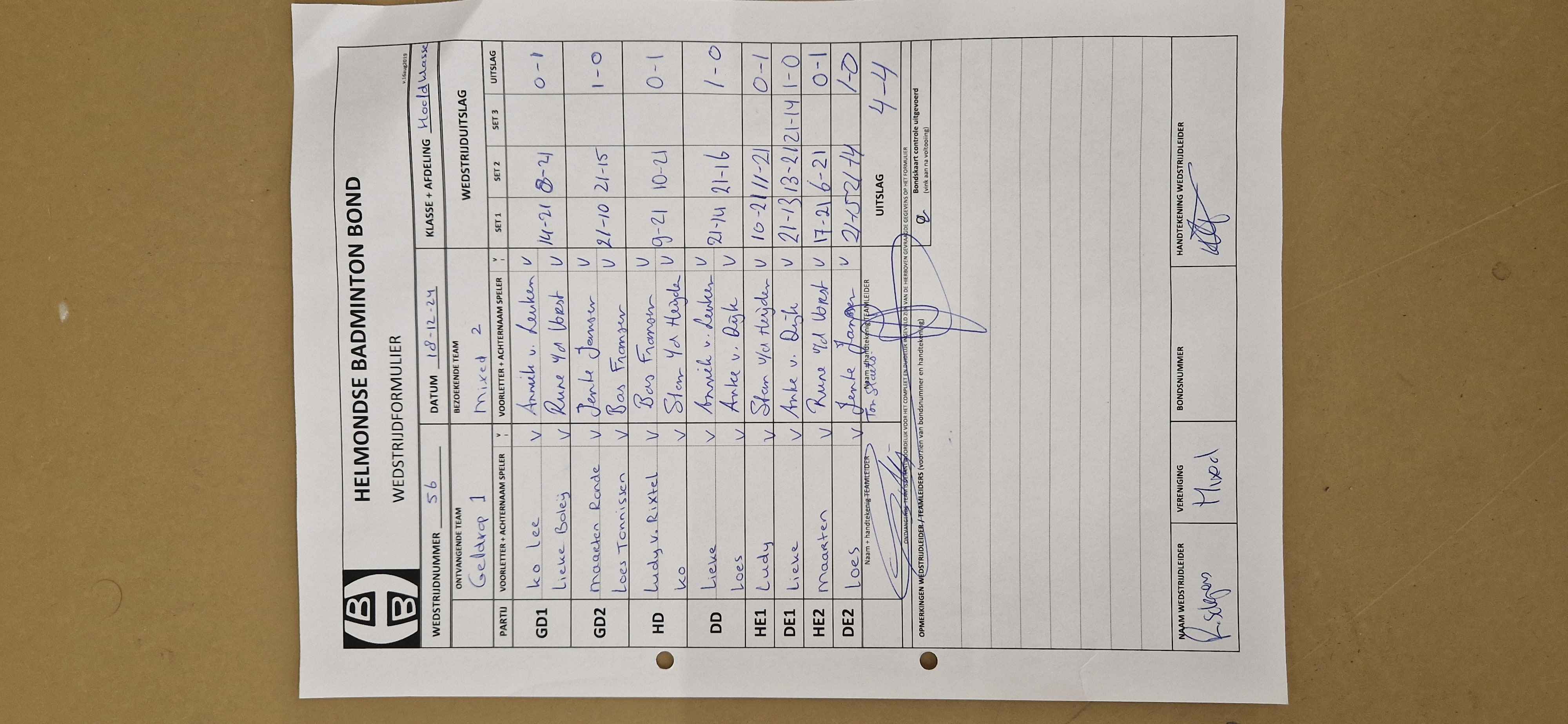 | 56 | wo. 18-12-2024 | Geldrop 1 | - | Mixed 2 | 2 | 4 - 4 | |||