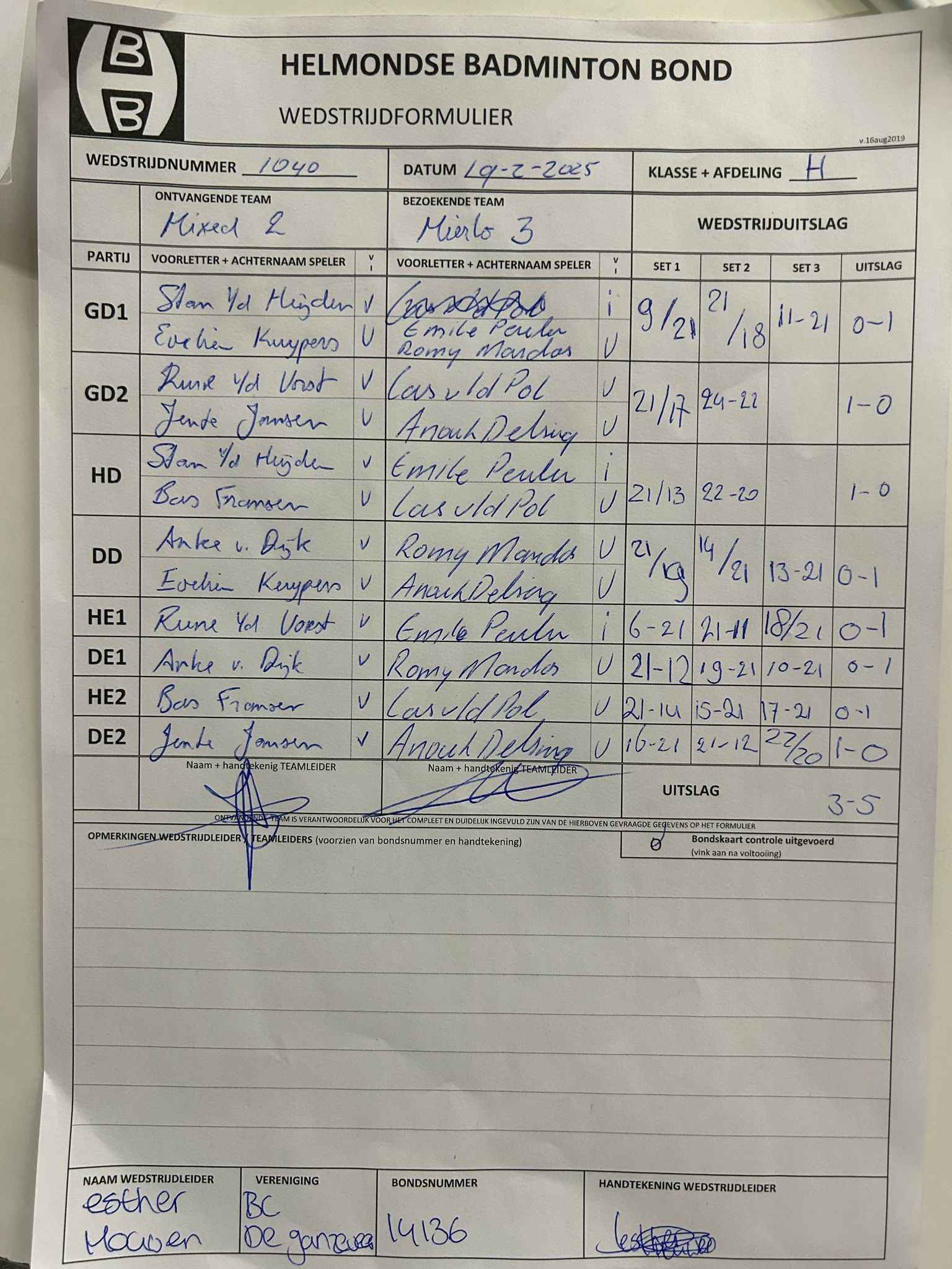 | 1040 | wo. 19-02-2025 | Mixed 2 | - | Mierlo 3 | 1 | 3 - 5 | |||