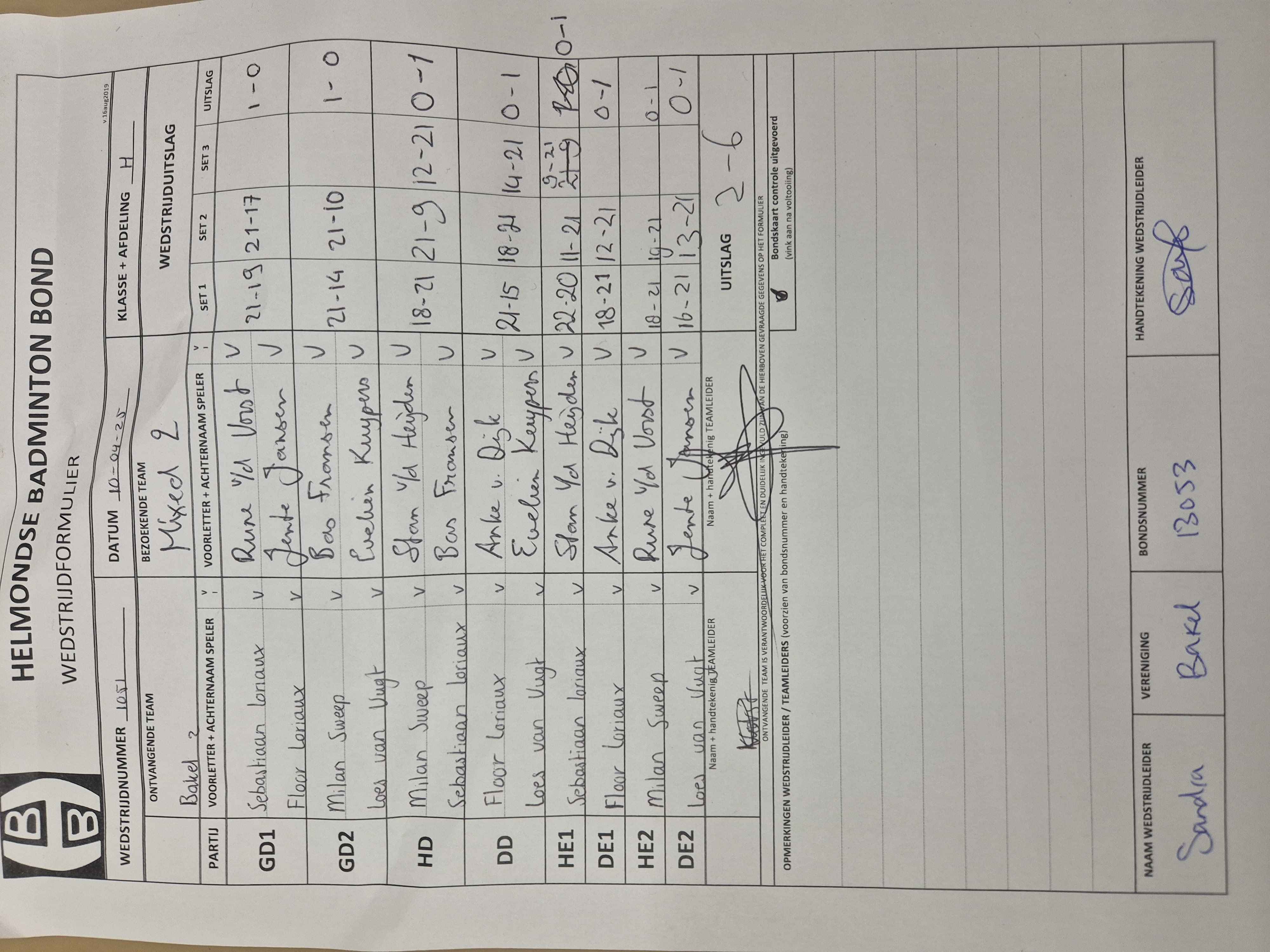 | 1056 | wo. 16-04-2025 | Mixed 2 | - | Geldrop 1 | 4 | 5 - 3 | |||