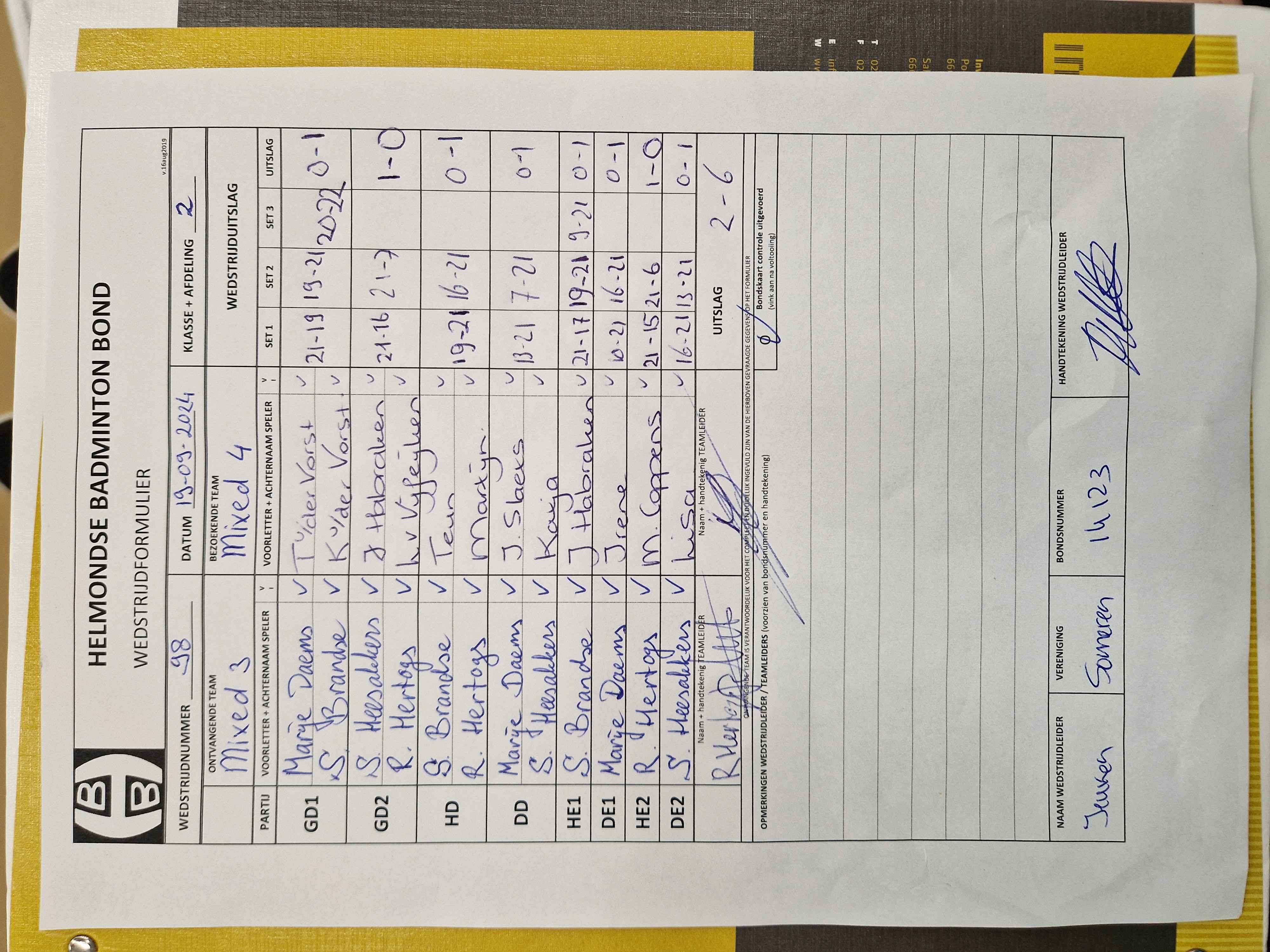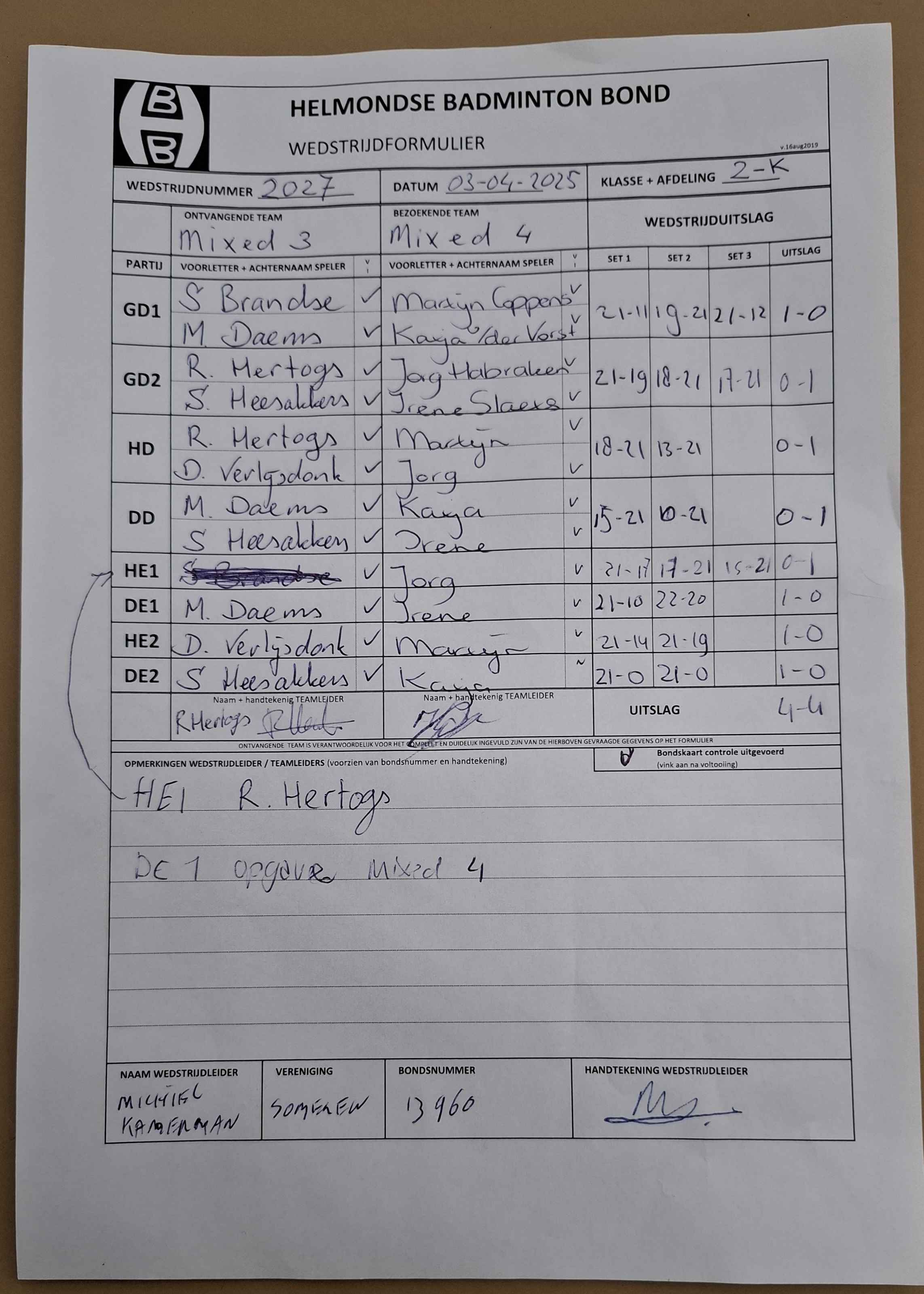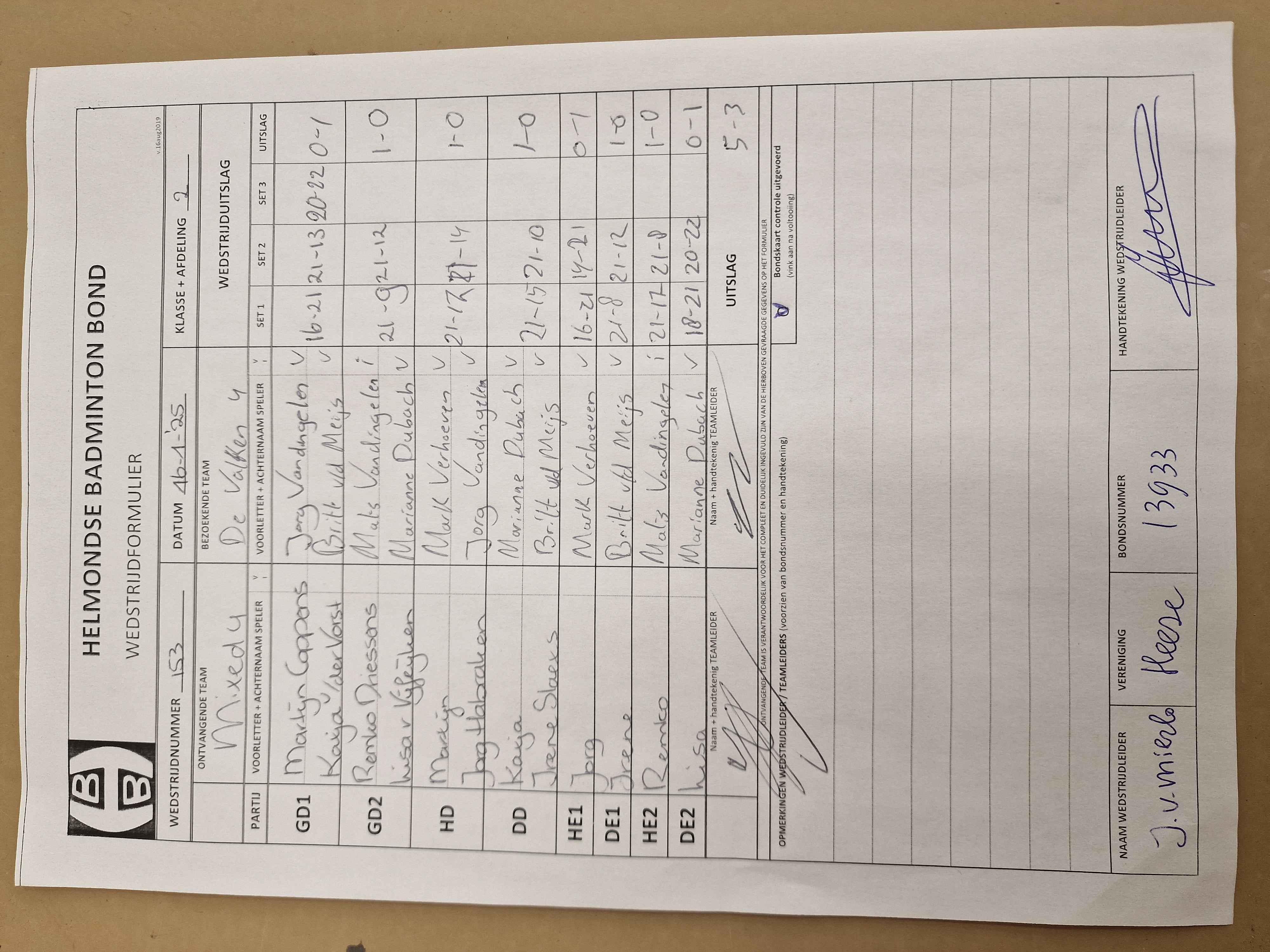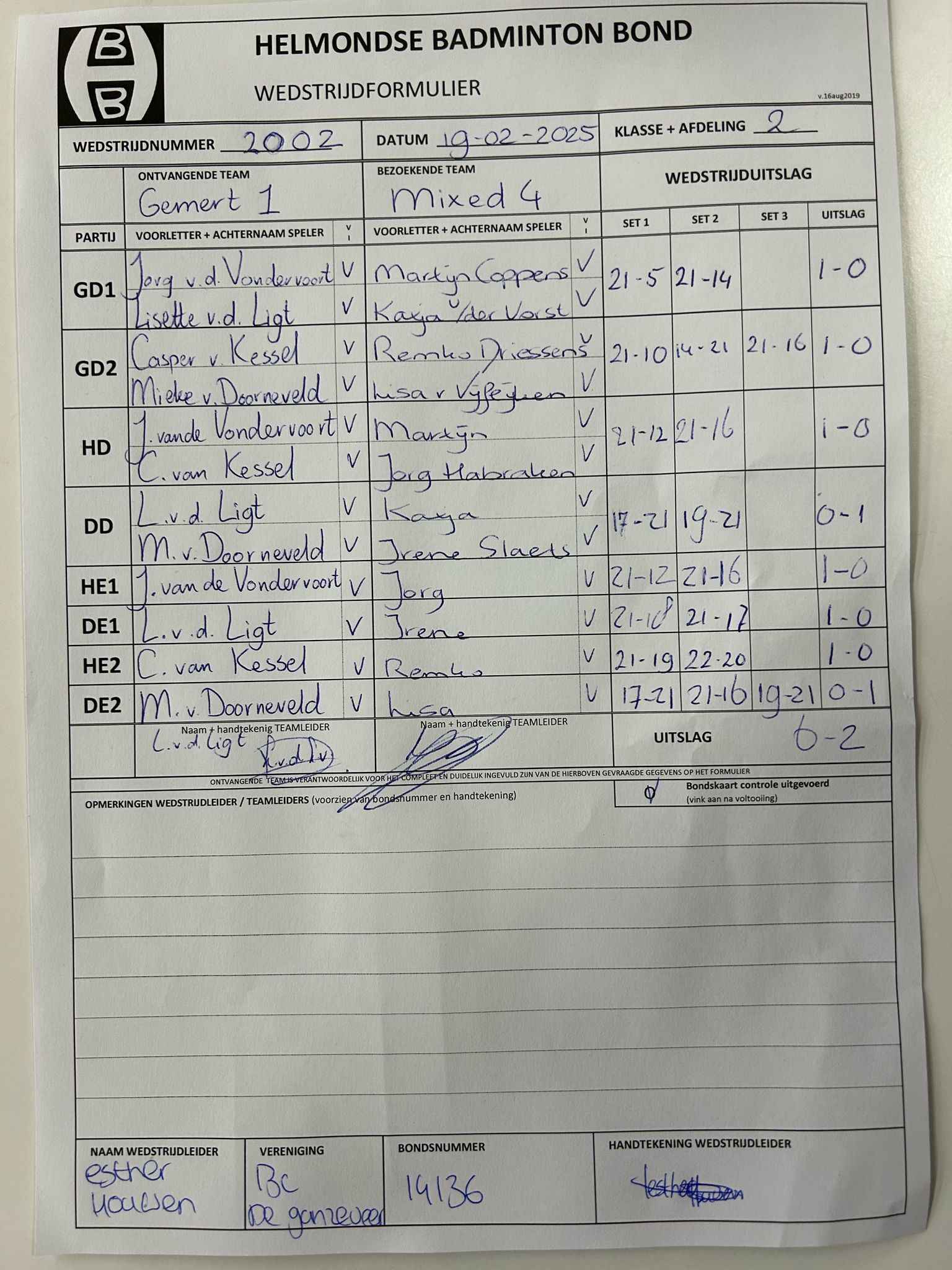 | 2002 | wo. 19-02-2025 | Gemert 1 | - | Mixed 4 | 13 | 6 - 2 | |||