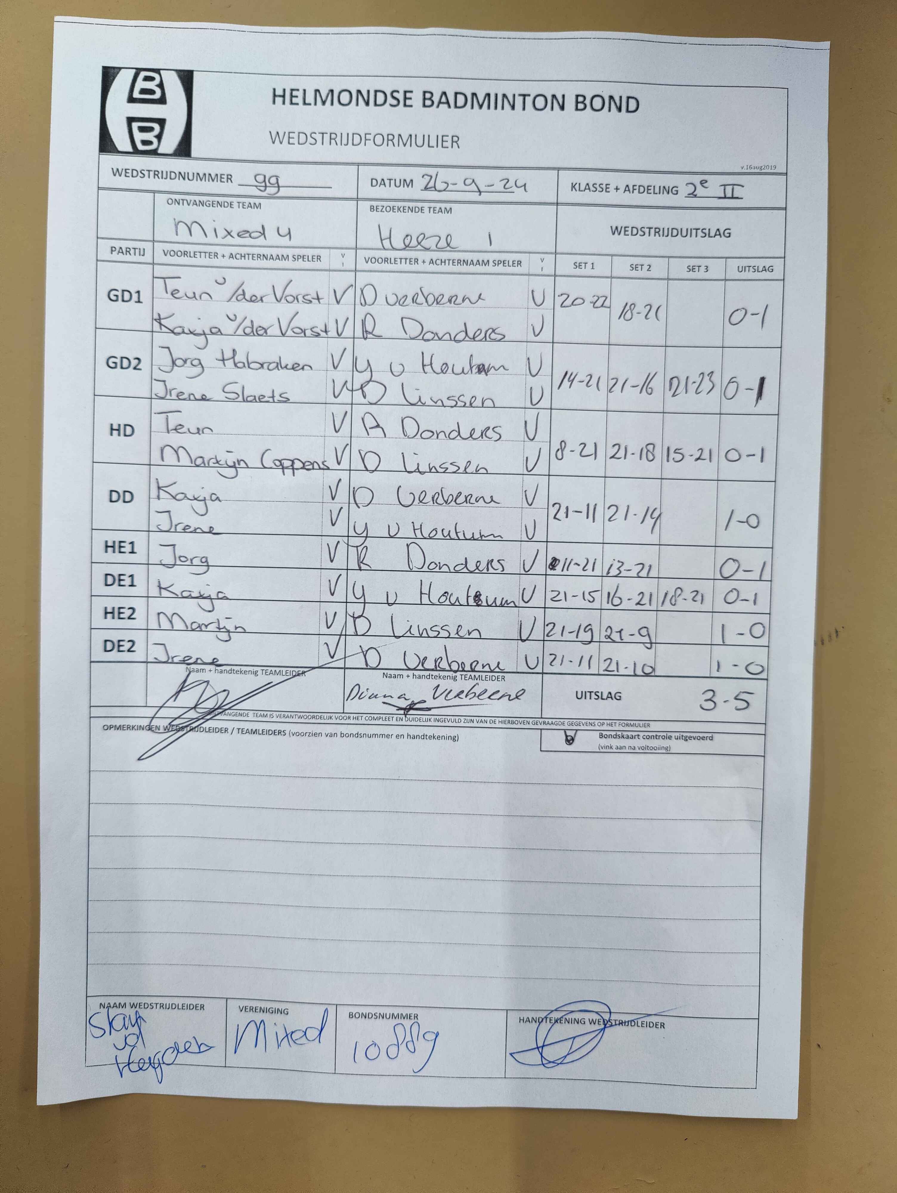 | 99 | do. 26-09-2024 | Mixed 4 | - | Heeze 1 | 5 | 3 - 5 | |||