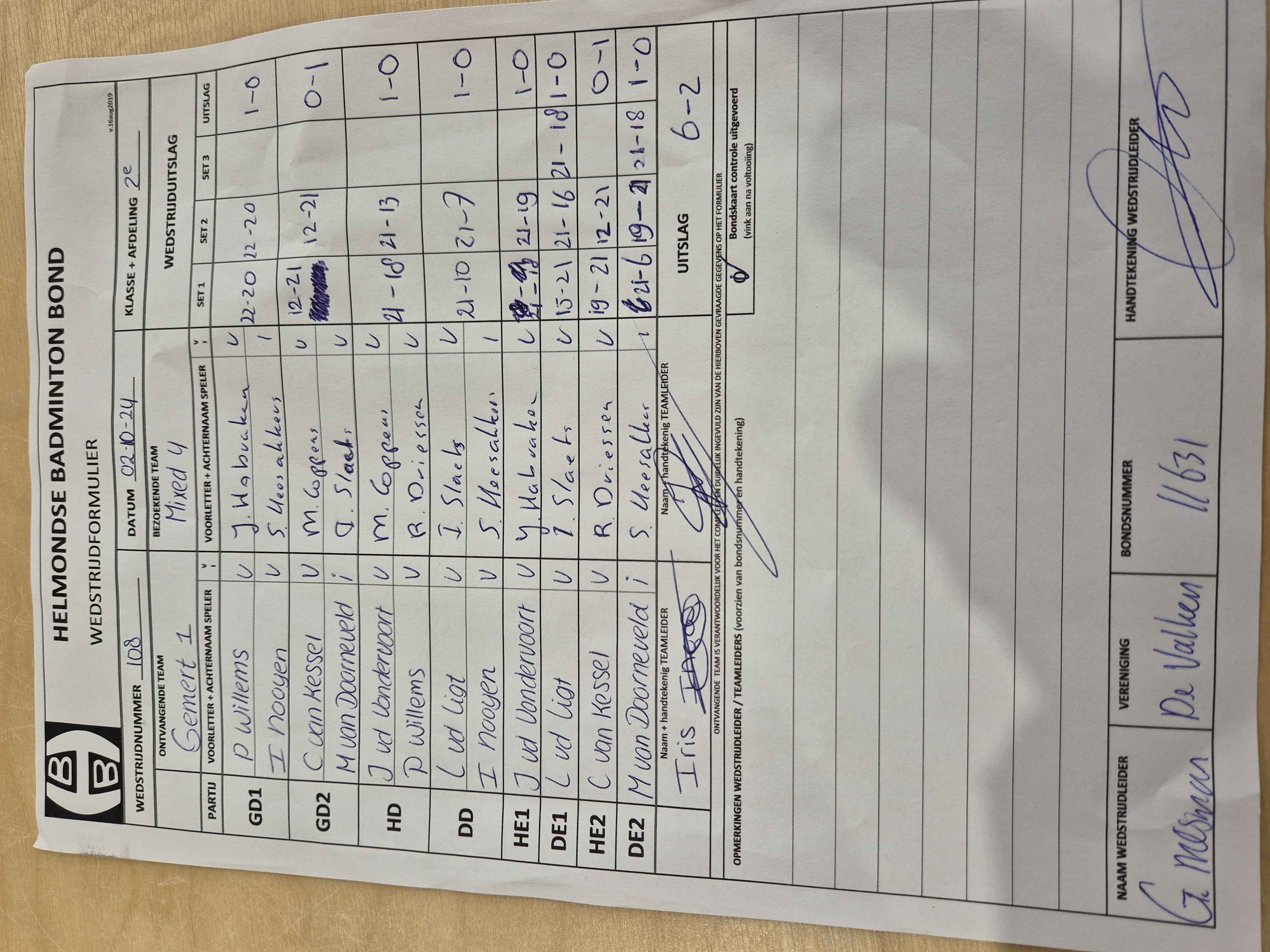| 108 | wo. 02-10-2024 | Gemert 1 | - | Mixed 4 | 13 | 6 - 2 | |||