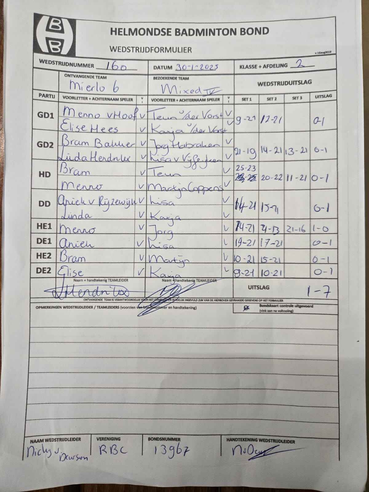 | 160 | do. 30-01-2025 | Mierlo 6 | - | Mixed 4 | 5 | 1 - 7 | |||