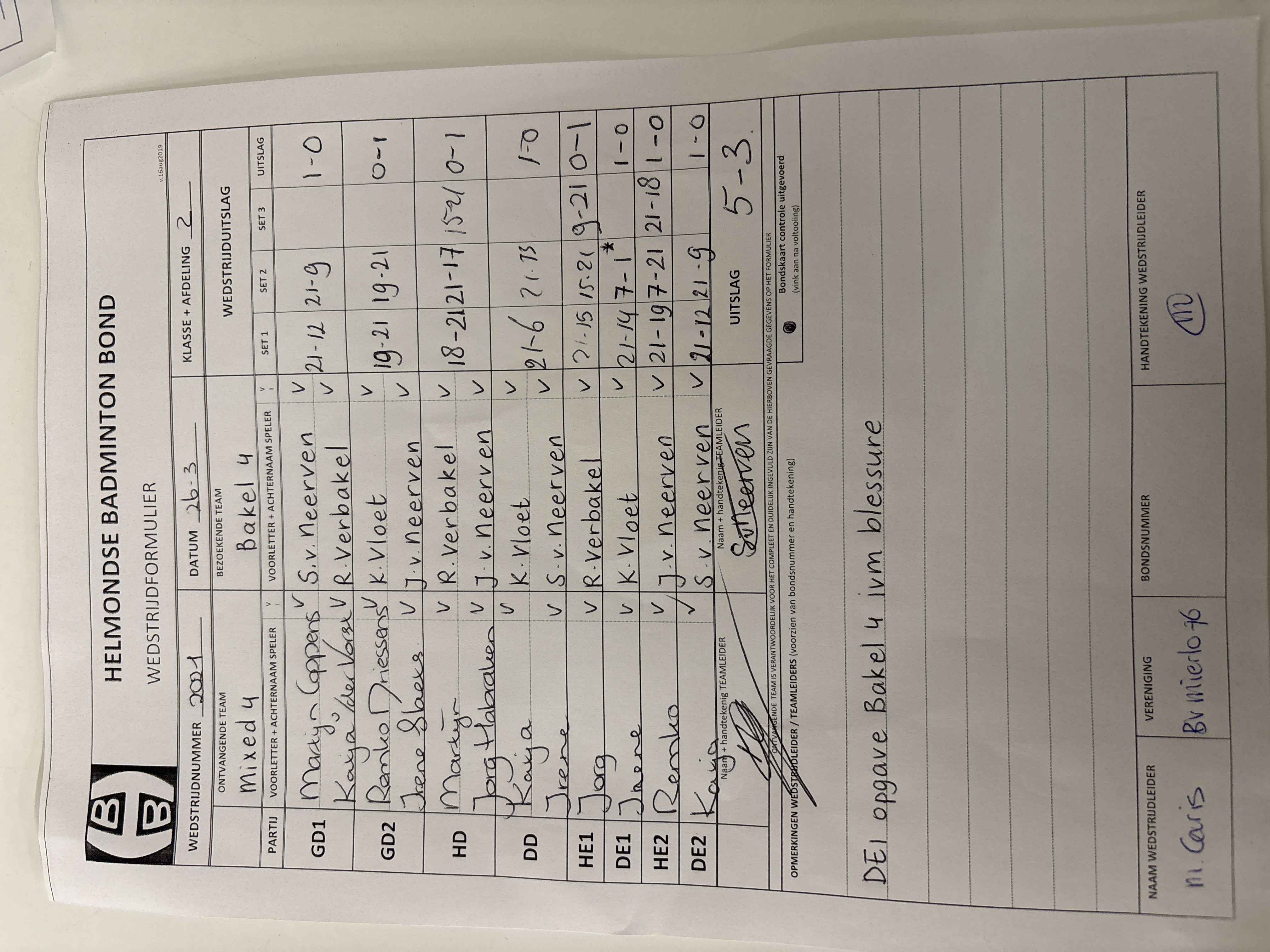 | 2021 | wo. 26-03-2025 | Mixed 4 | - | Bakel 4 | 4 | 5 - 3 | |||