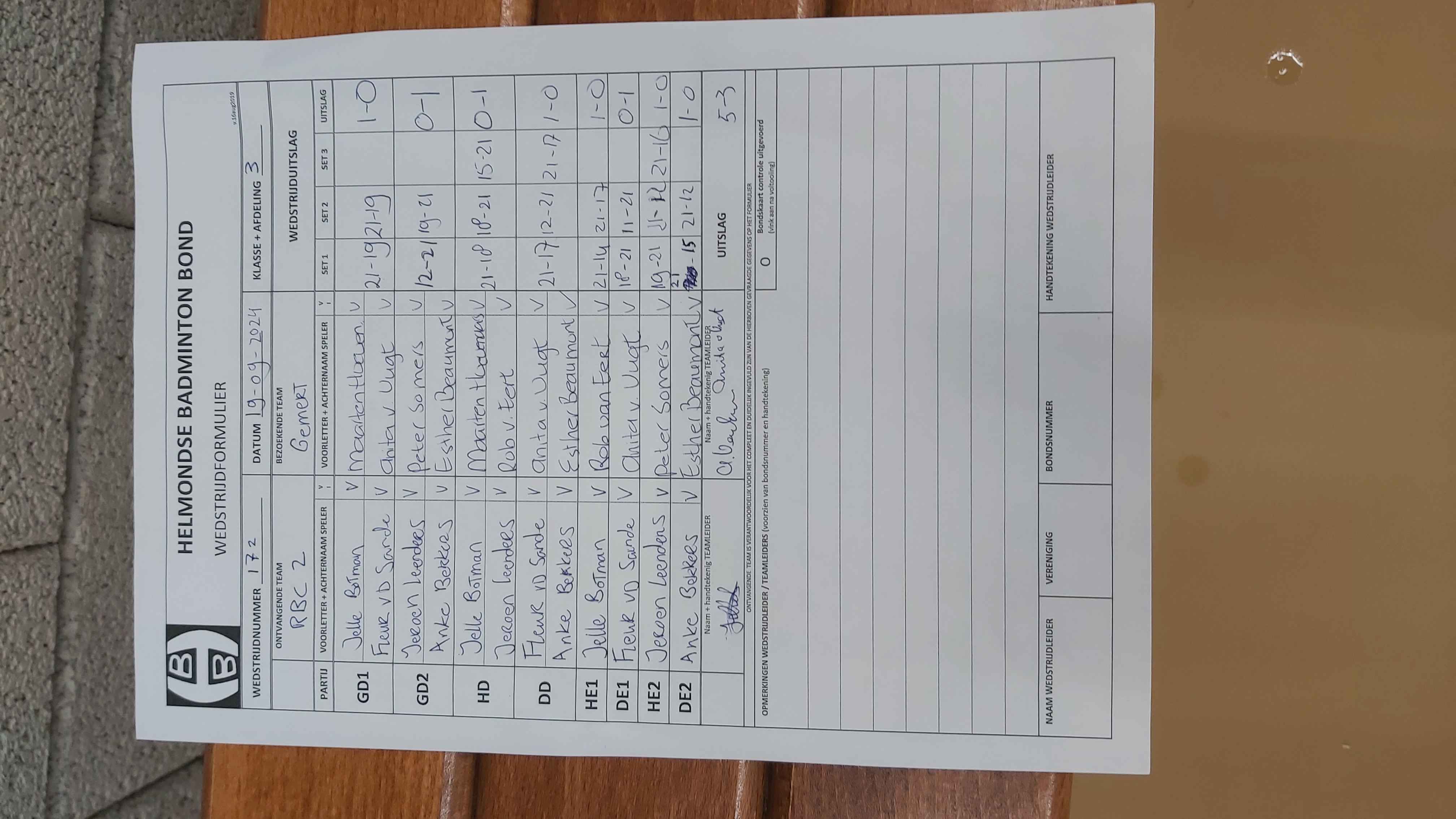 | 172 | do. 19-09-2024 | RBC 2 | - | Gemert 2 | 5 | 5 - 3 | |||
