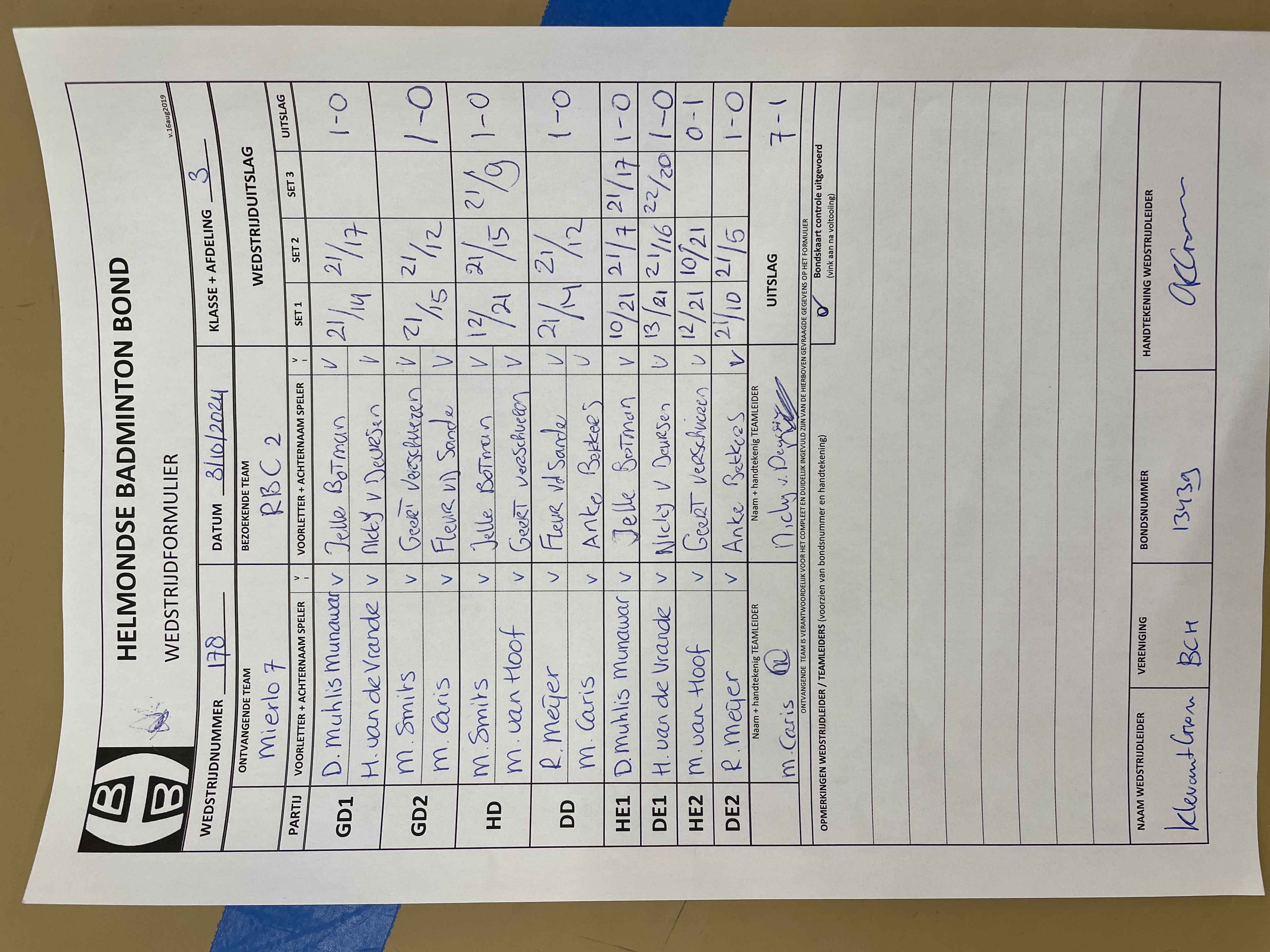 | 178 | do. 03-10-2024 | Mierlo 7 | - | RBC 2 | 14 | 7 - 1 | |||