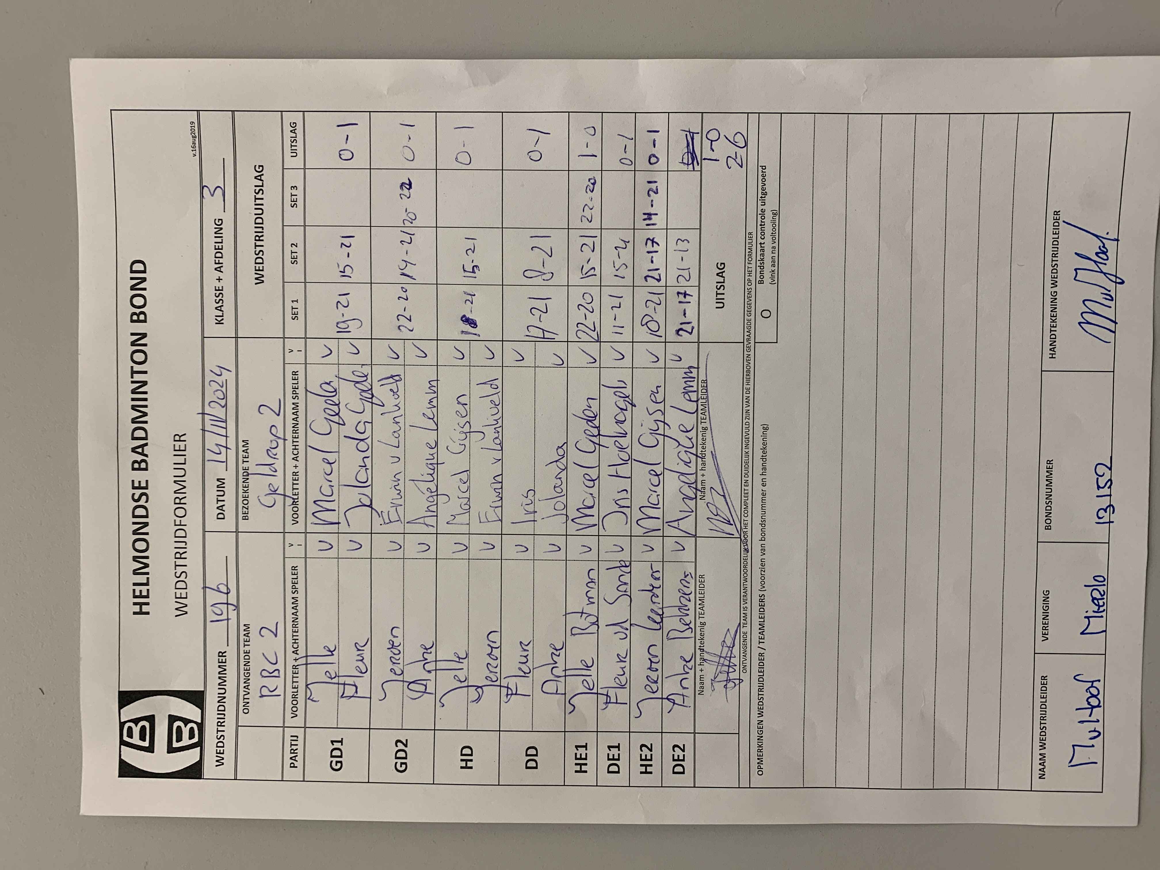 | 196 | do. 14-11-2024 | RBC 2 | - | Geldrop 2 | 12 | 2 - 6 | |||
