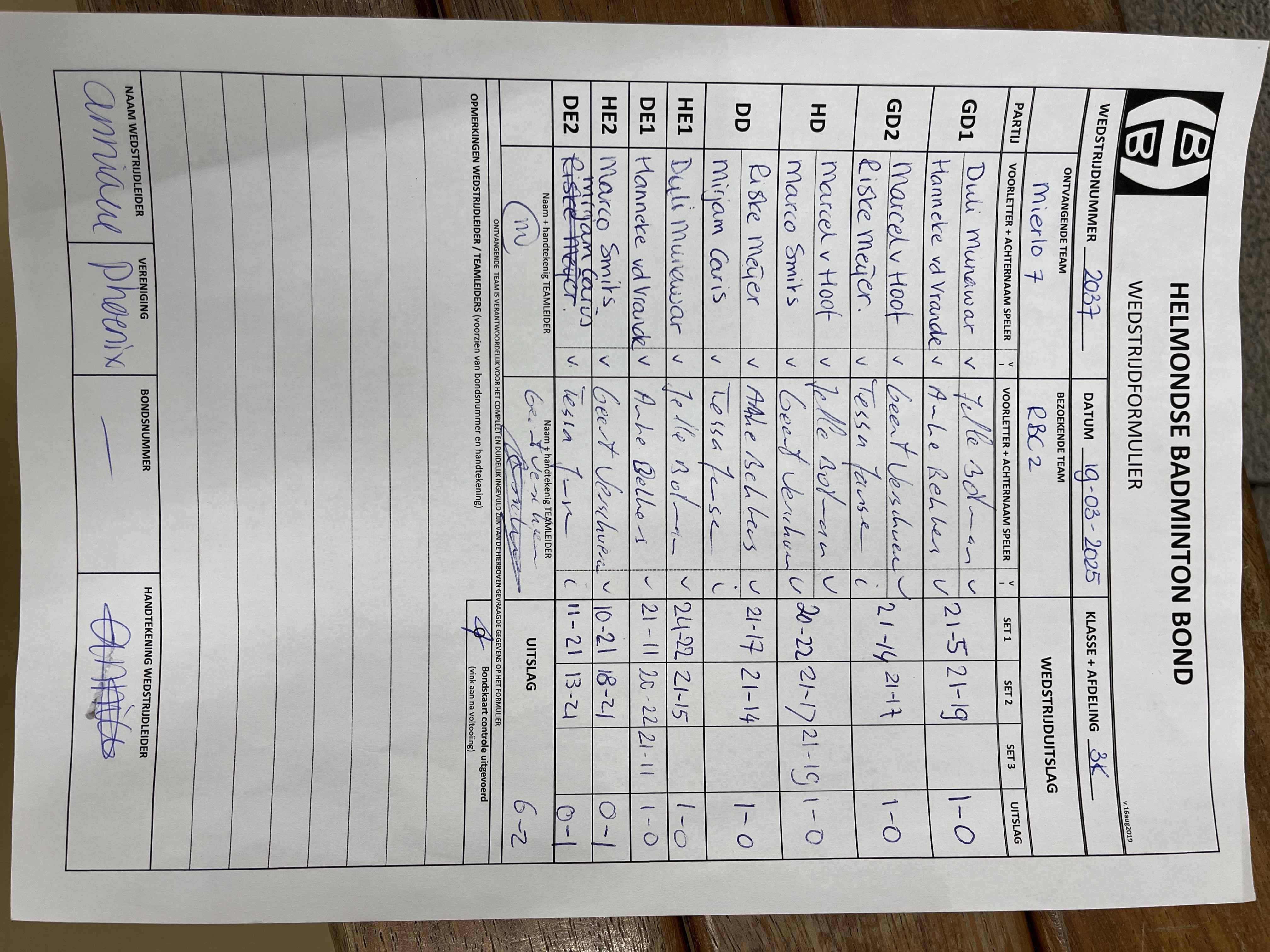 | 2037 | wo. 19-03-2025 | Mierlo 7 | - | RBC 2 | 13 | 6 - 2 | |||