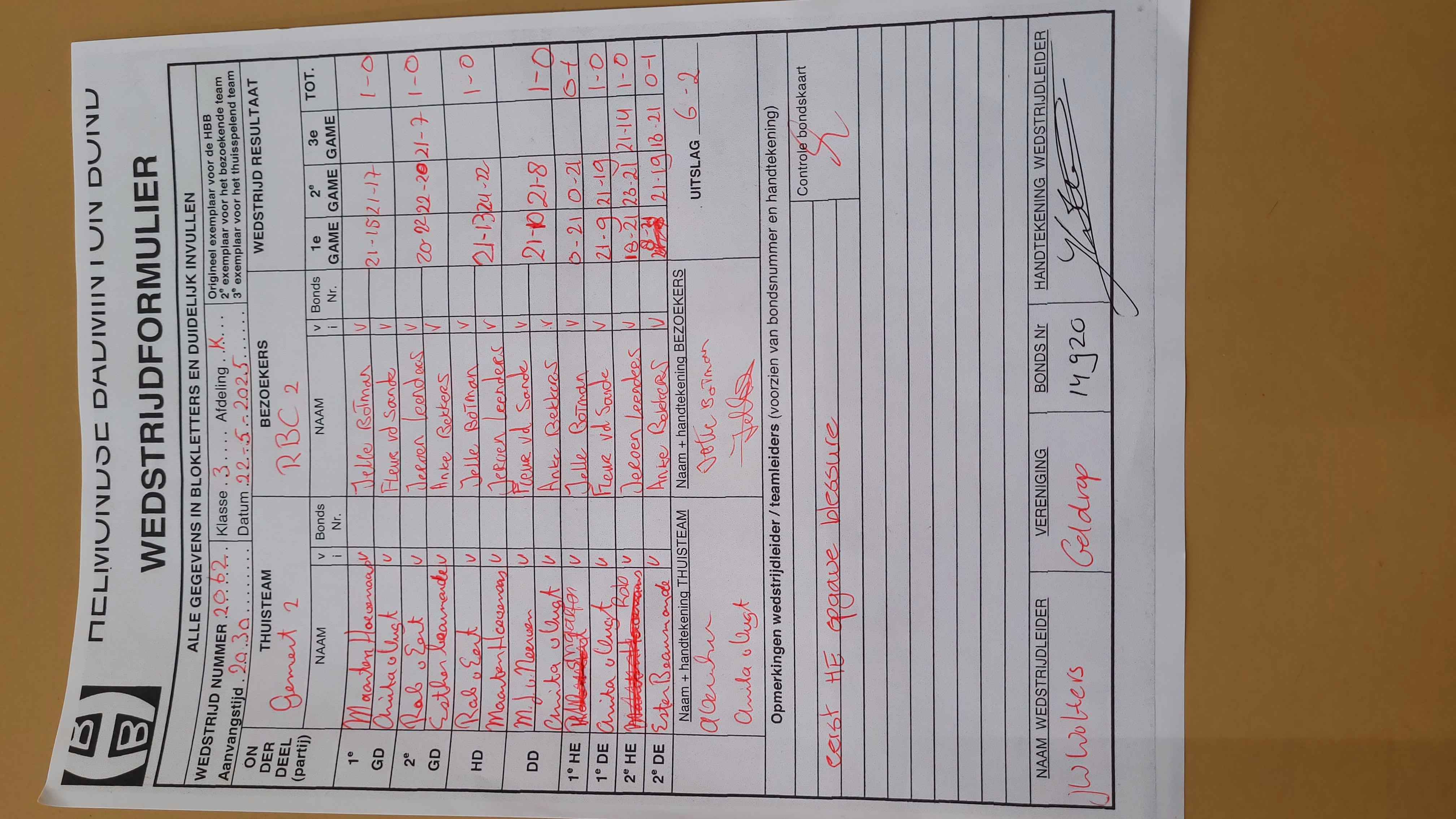 | 2062 | do. 22-05-2025 | Gemert 2 | - | RBC 2 | 14 | 6 - 2 | |||