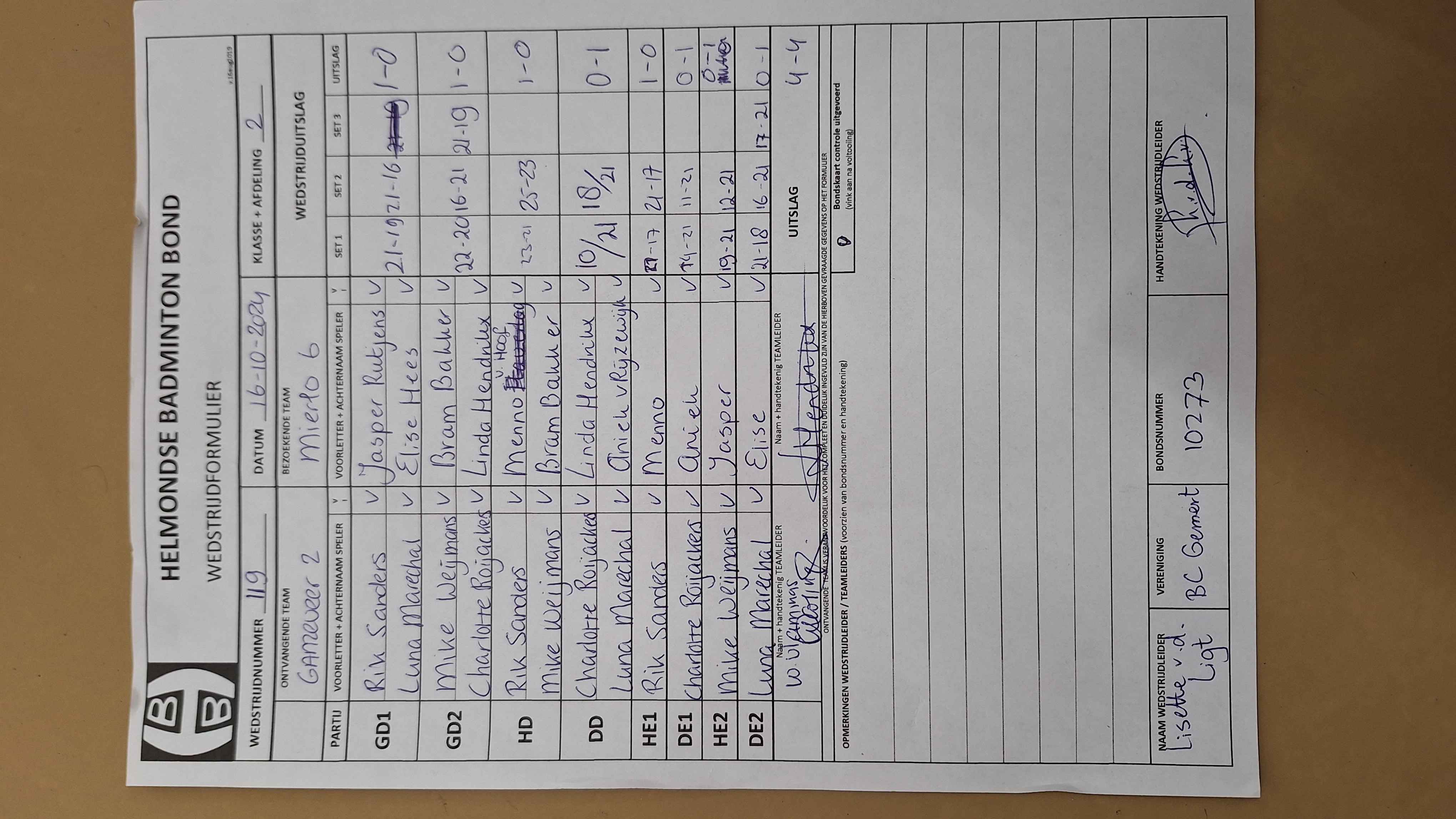 | 119 | wo. 16-10-2024 | Ganzeveer 2 | - | Mierlo 6 | 11 | 4 - 4 | |||
