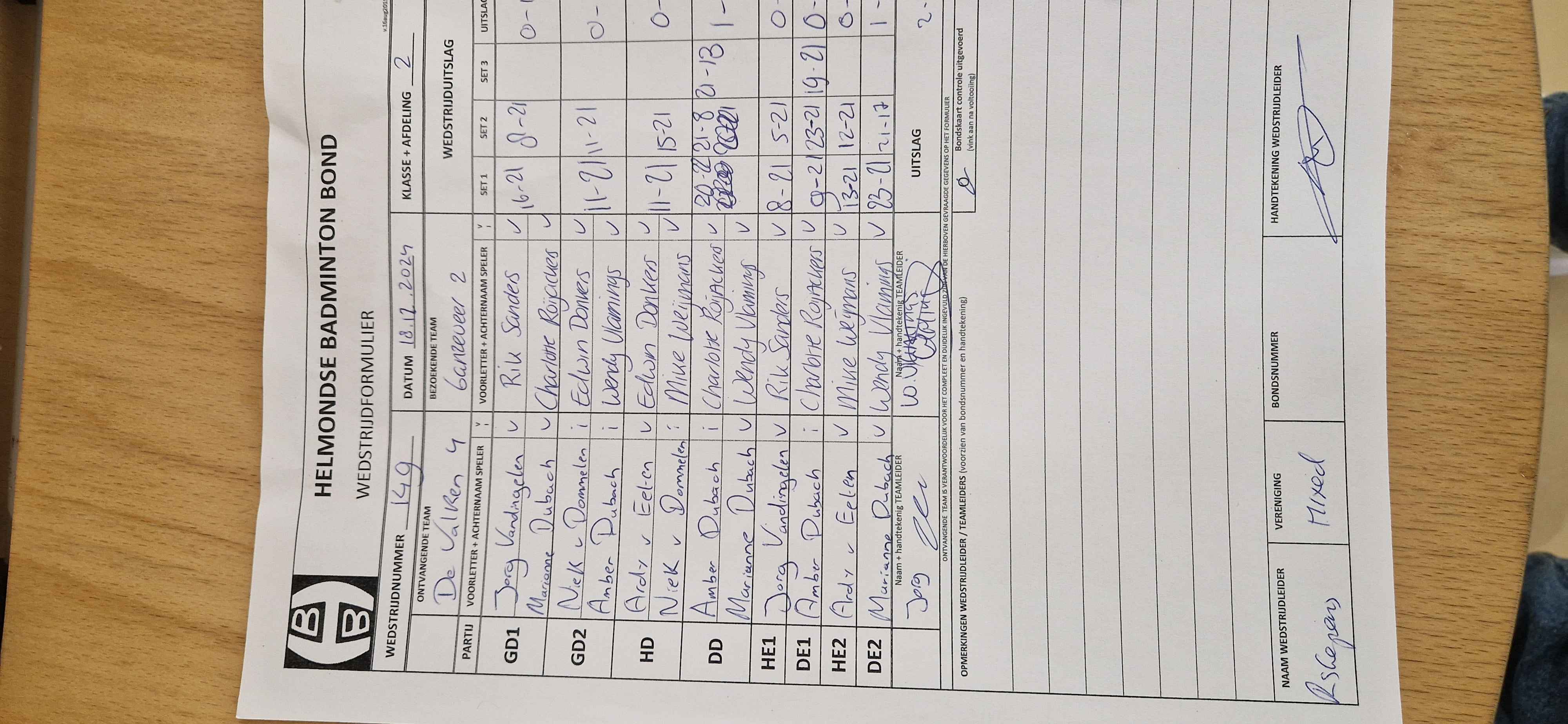 | 132 | wo. 13-11-2024 | Ganzeveer 2 | - | Mixed 3 | 14 | 3 - 5 | |||