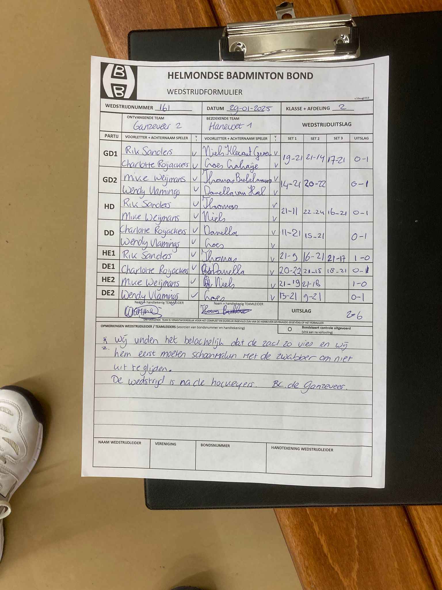 | 161 | wo. 29-01-2025 | Ganzeveer 2 | - | Hanevoet 1 | 11 | 2 - 6 | |||