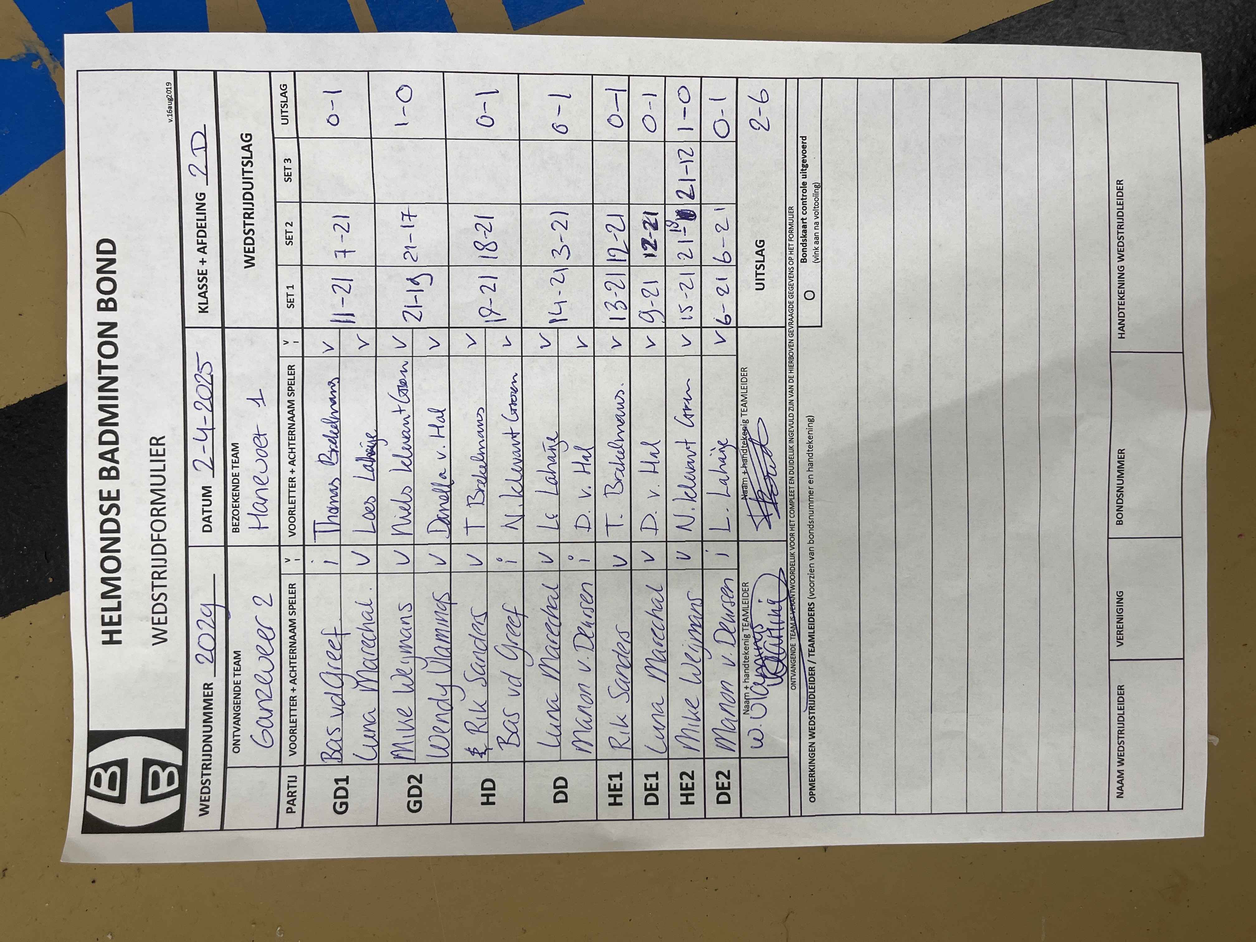 | 2029 | wo. 02-04-2025 | Ganzeveer 2 | - | Hanevoet 1 | 11 | 2 - 6 | |||