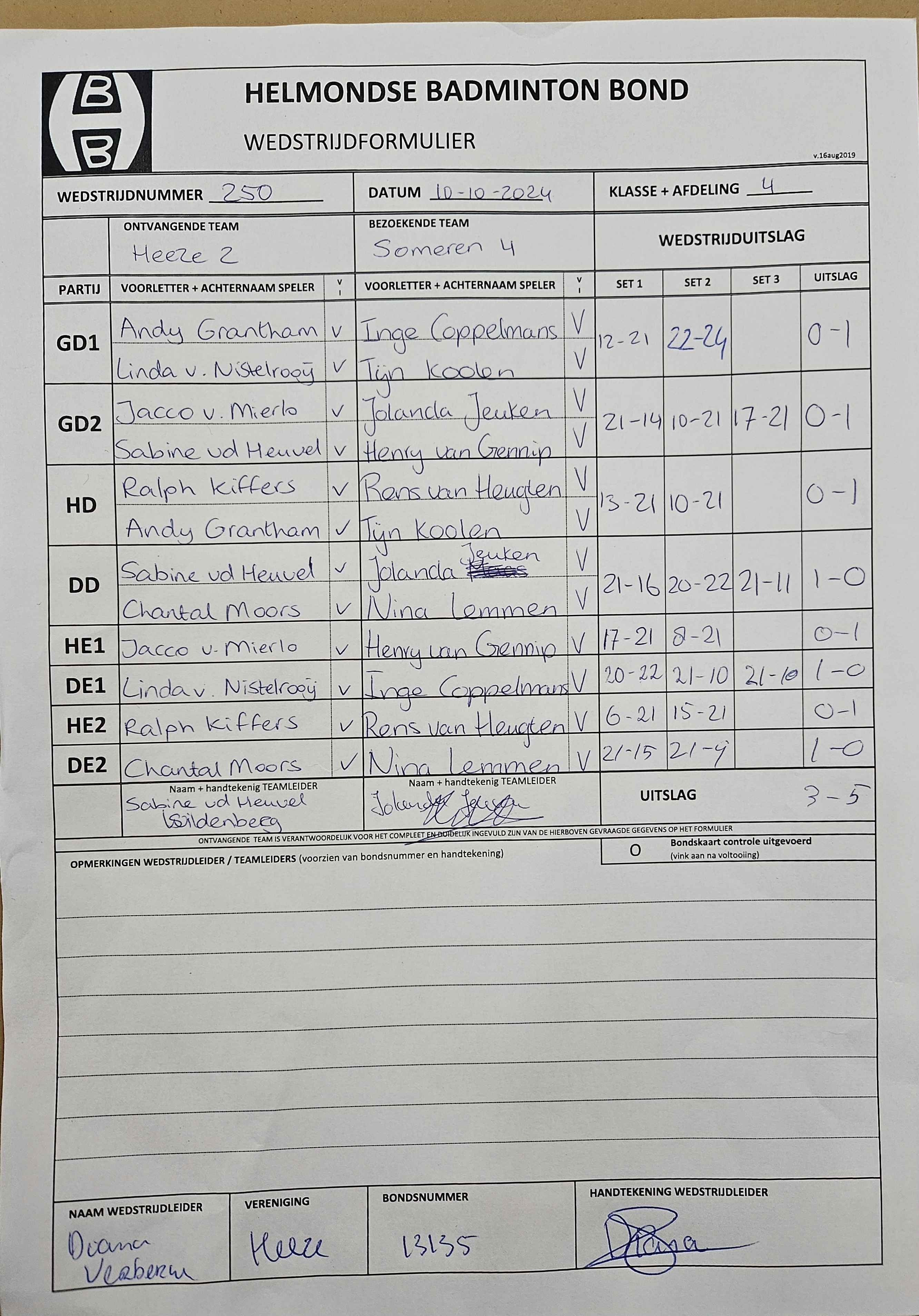 | 250 | do. 10-10-2024 | Heeze 2 | - | Someren 4 | 13 | 3 - 5 | |||