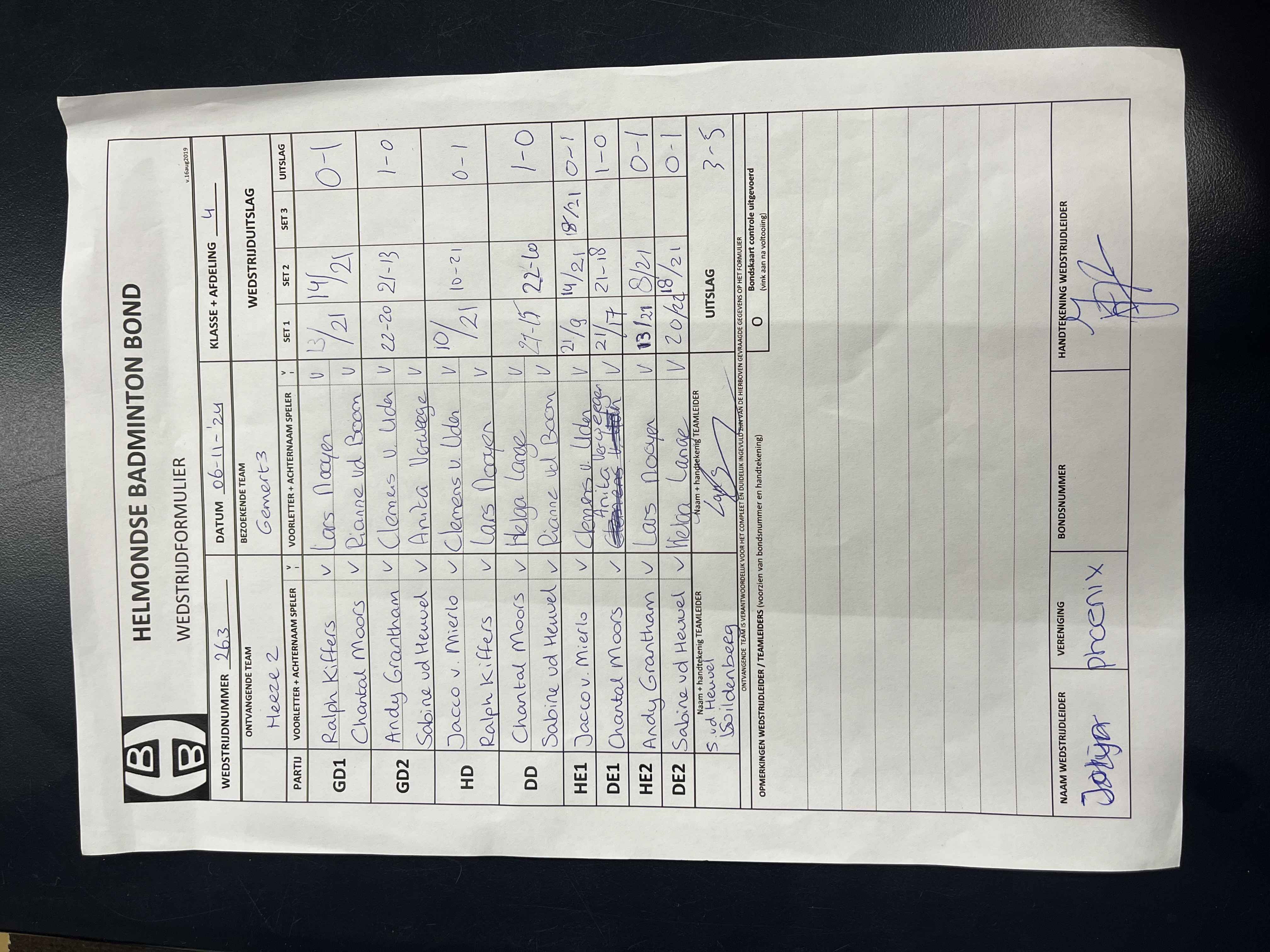| 263 | wo. 06-11-2024 | Heeze 2 | - | Gemert 3 | 13 | 3 - 5 | |||