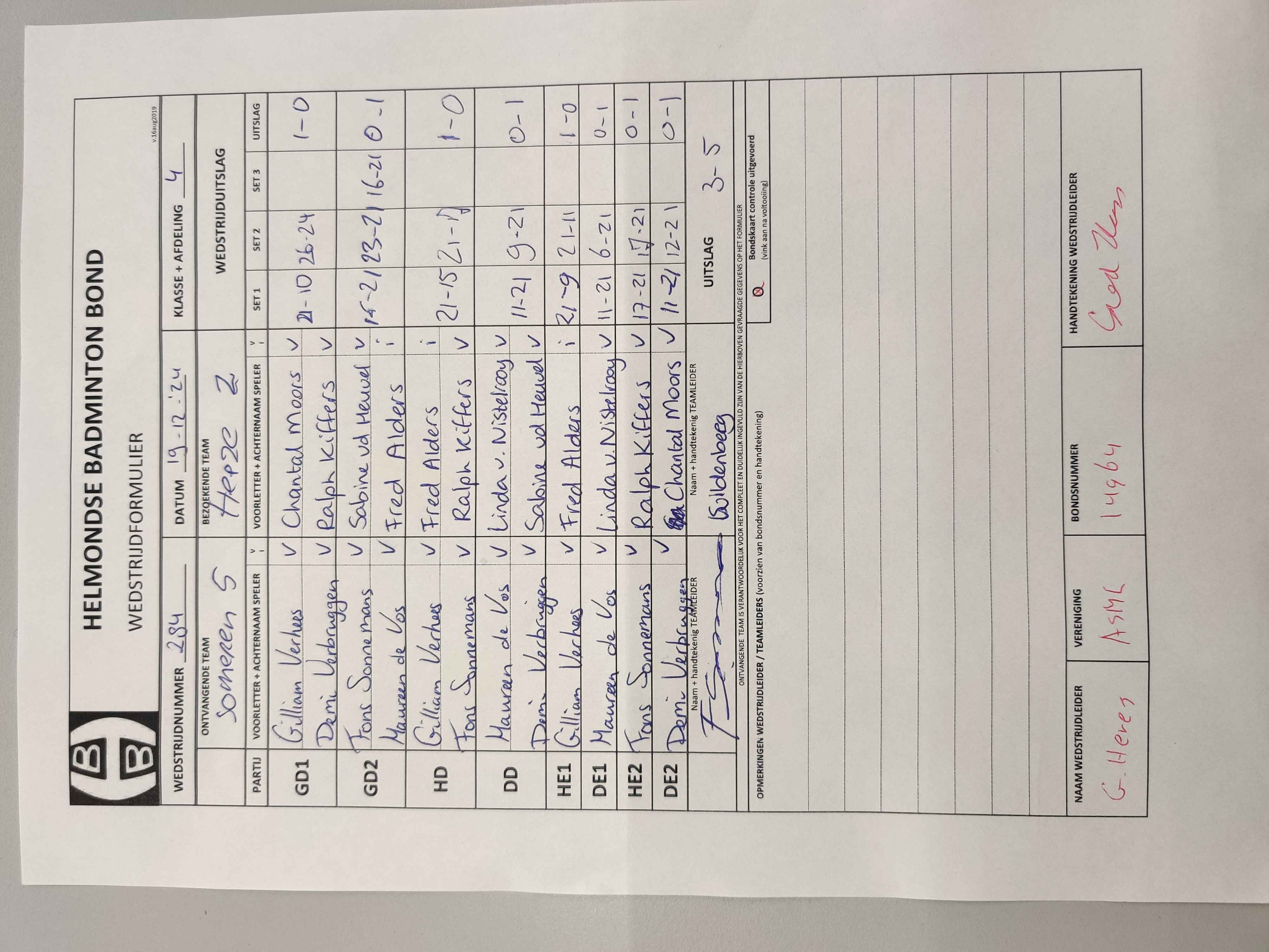 | 284 | do. 19-12-2024 | Someren 5 | - | Heeze 2 | 15 | 3 - 5 | |||