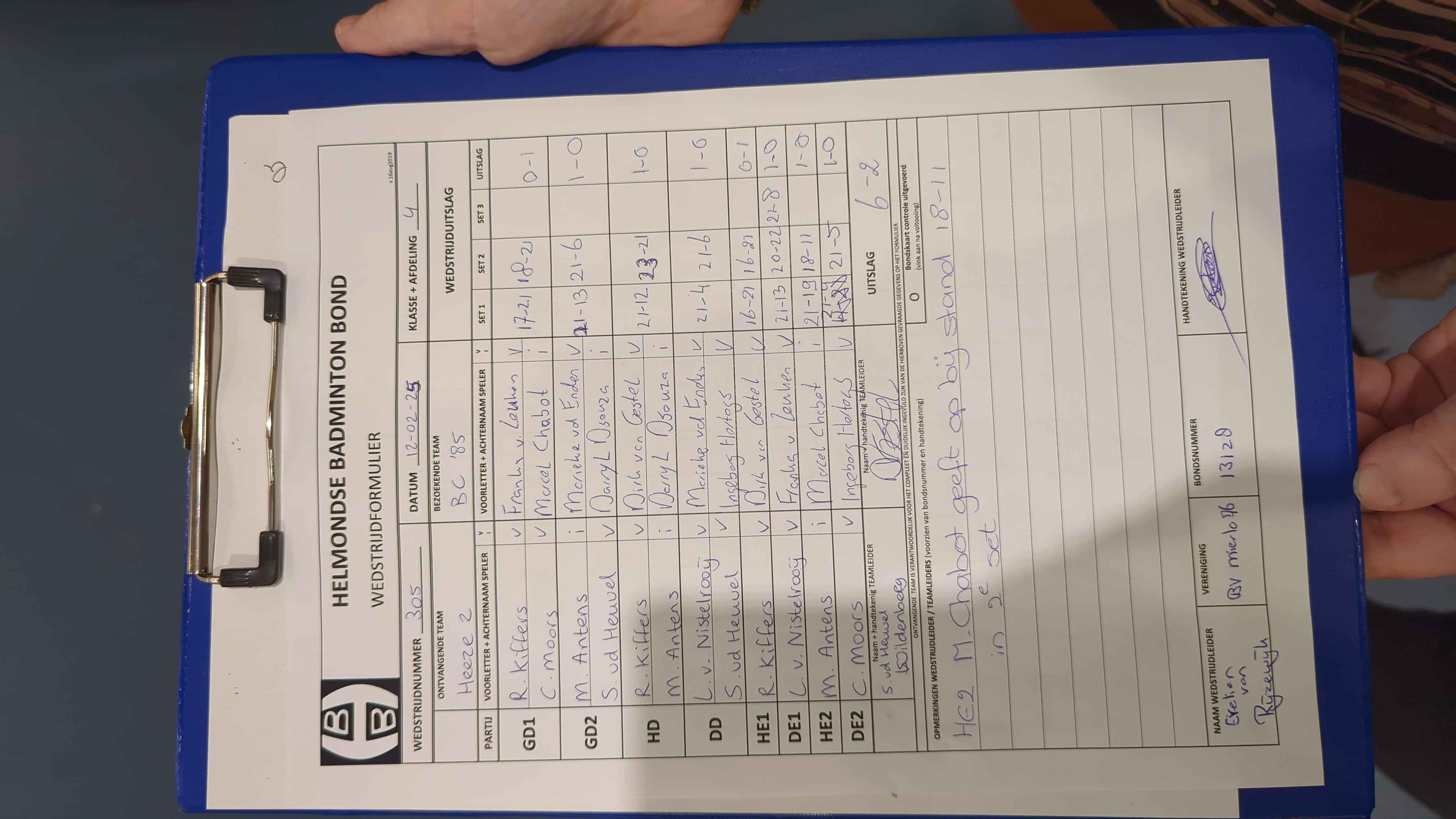 | 2069 | do. 27-03-2025 | De Valken 5 | - | Heeze 2 | 13 | 3 - 5 | |||