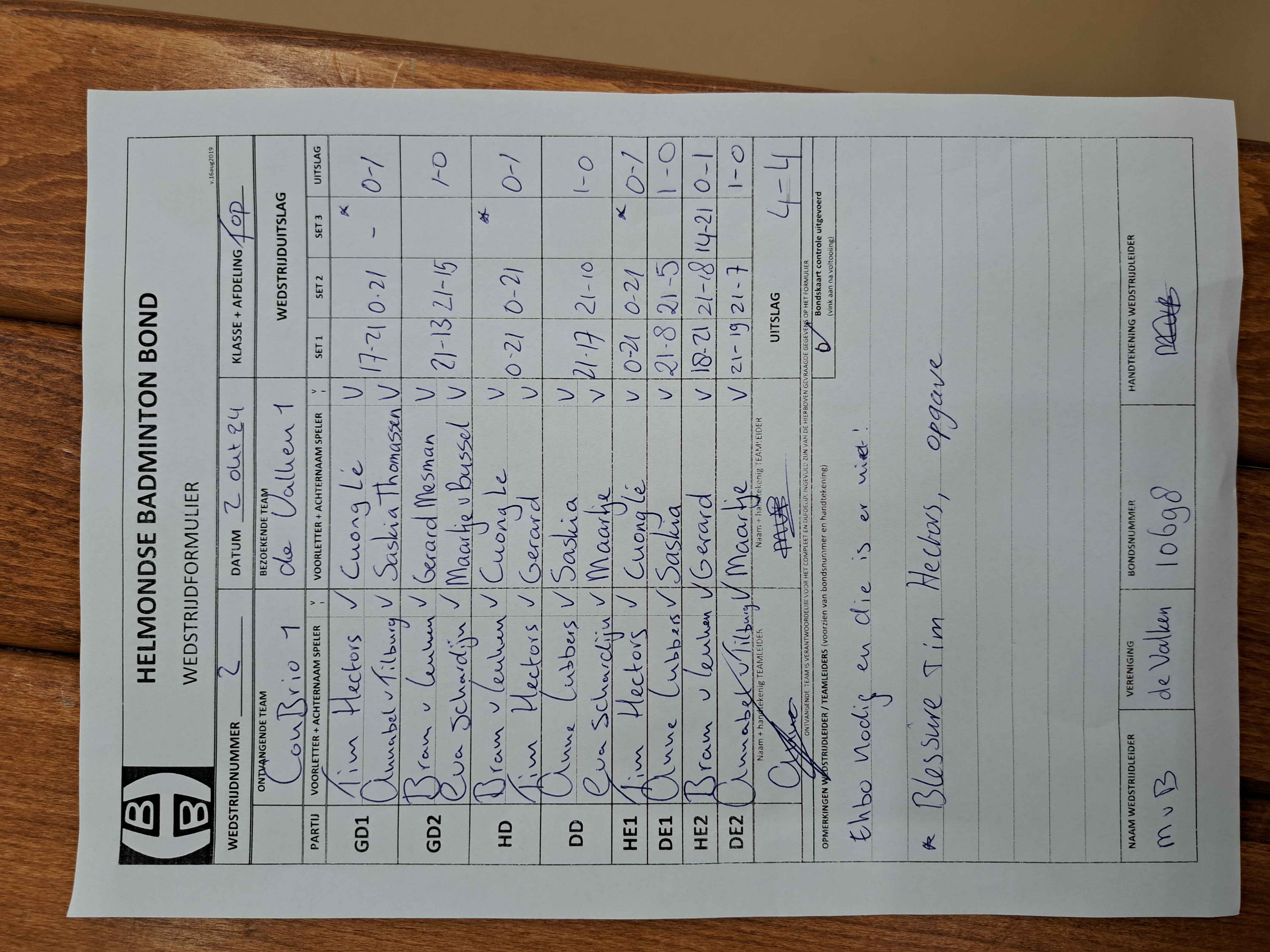 | 2 | wo. 02-10-2024 | Con Brio 1 | - | De Valken 1 | 2 | 4 - 4 | |||