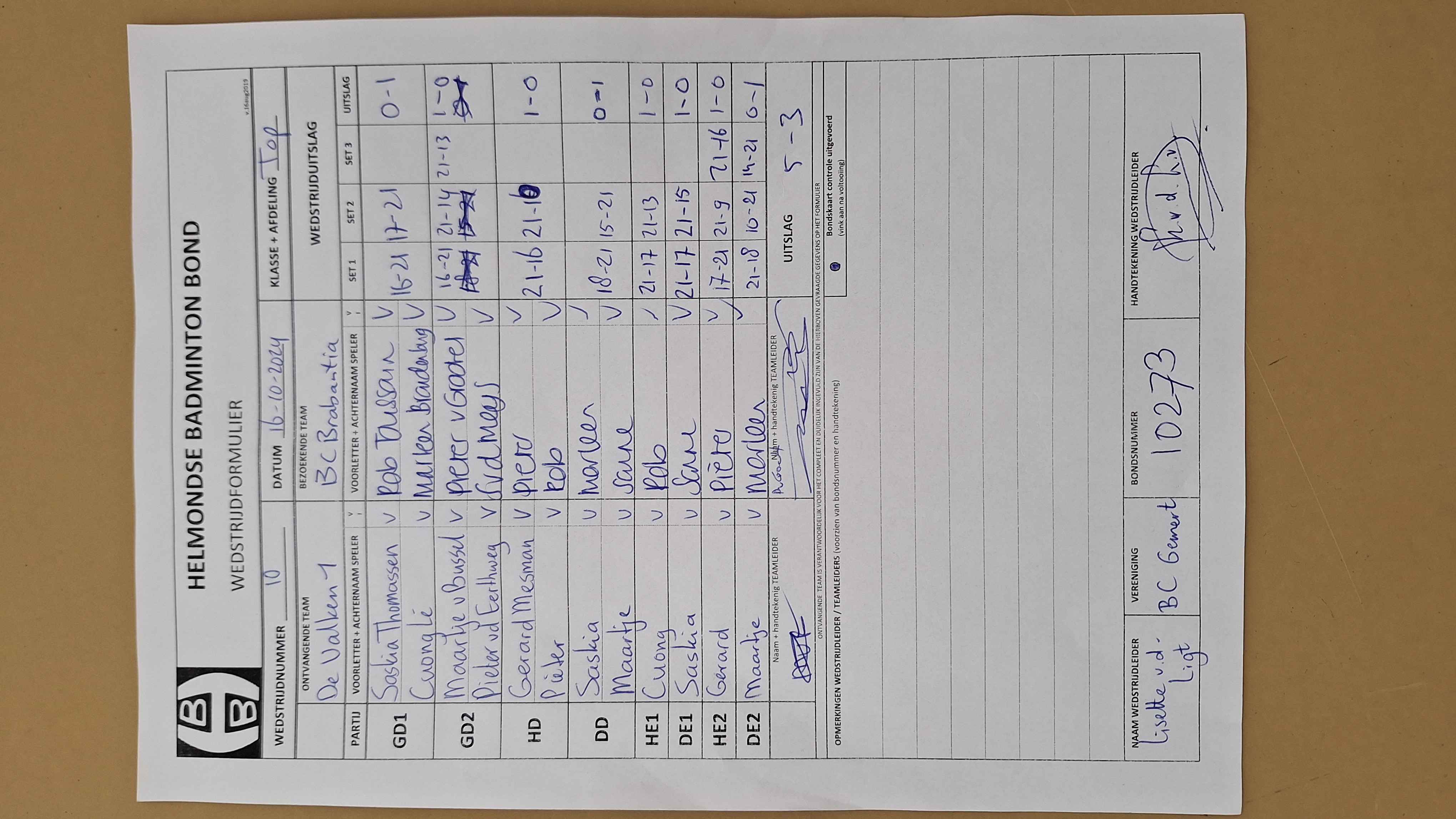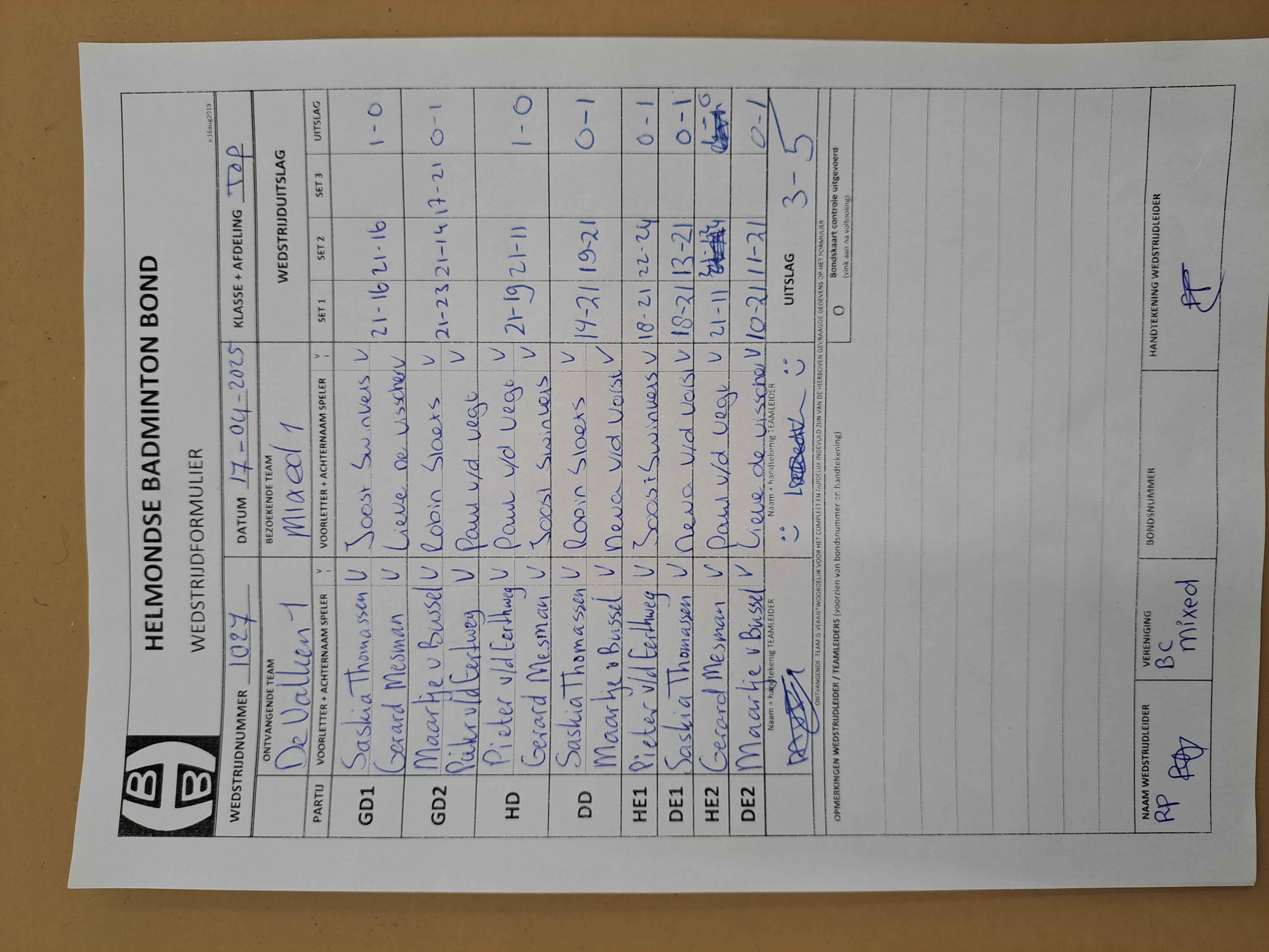 | 1020 | do. 20-03-2025 | Someren 1 | - | De Valken 1 | 2 | 3 - 5 | |||