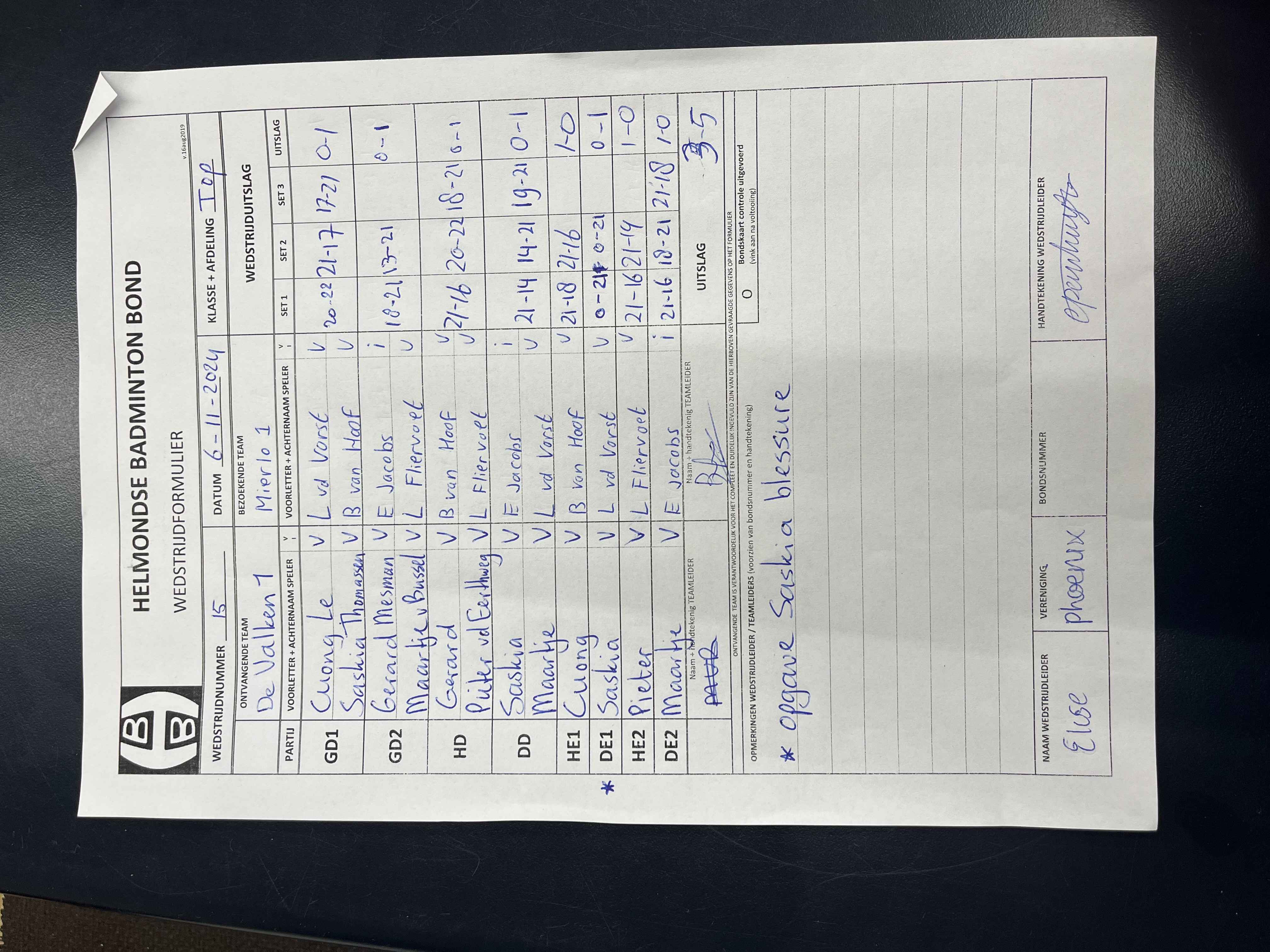 | 15 | wo. 06-11-2024 | De Valken 1 | - | Mierlo 1 | 2 | 3 - 5 | |||