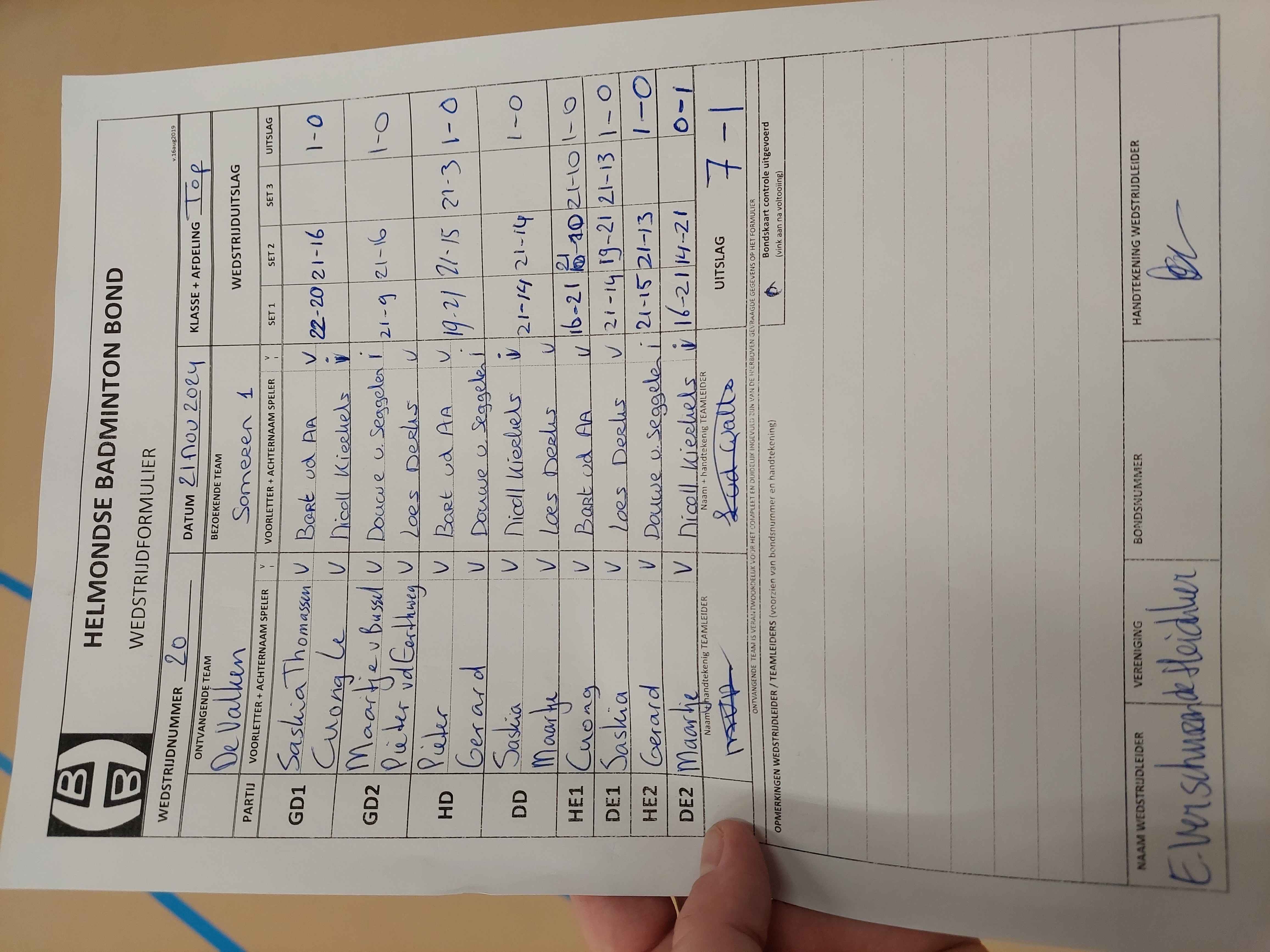 | 20 | do. 21-11-2024 | De Valken 1 | - | Someren 1 | 2 | 7 - 1 | |||