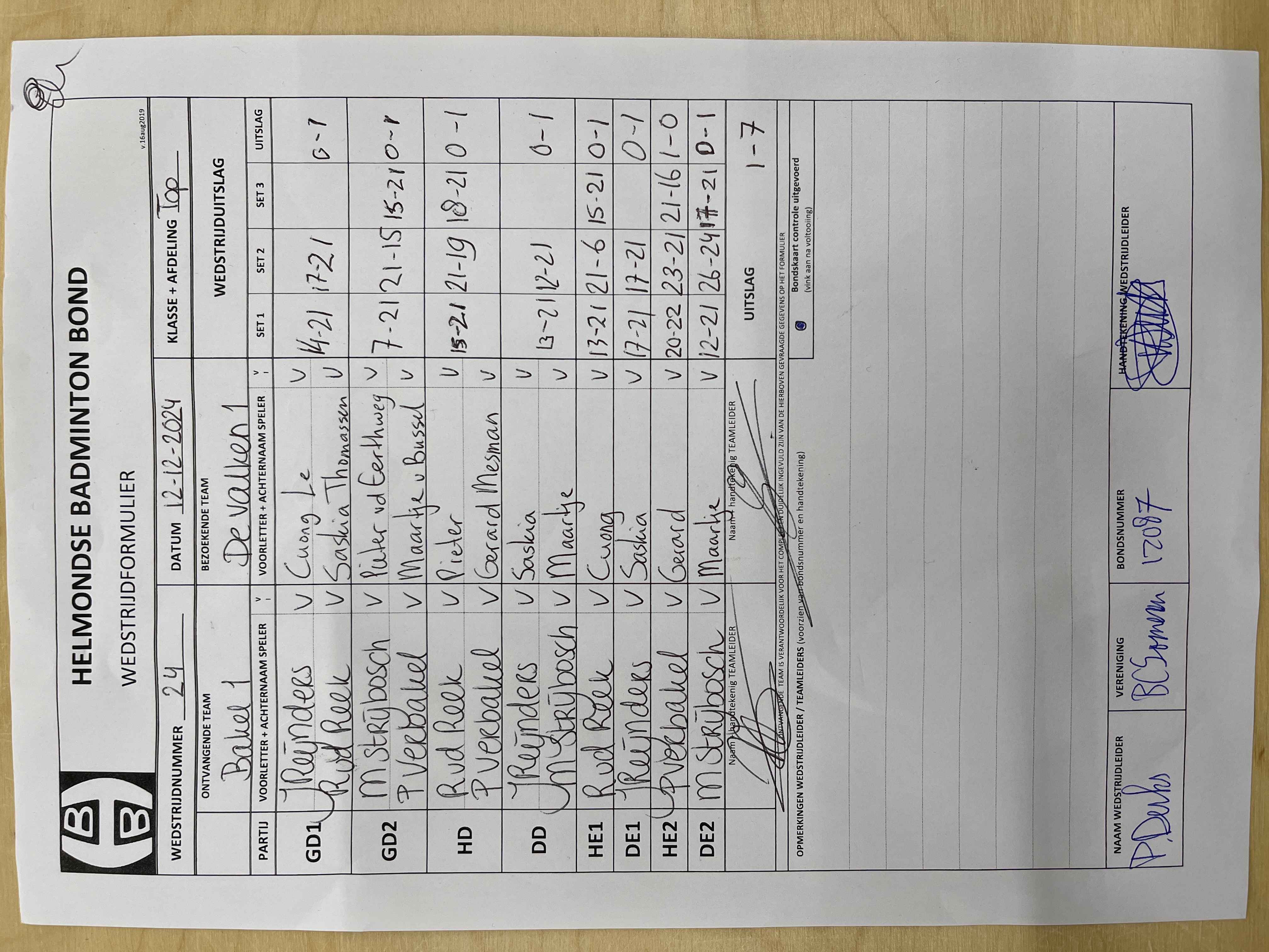 | 24 | do. 12-12-2024 | Bakel 1 | - | De Valken 1 | 3 | 1 - 7 | |||