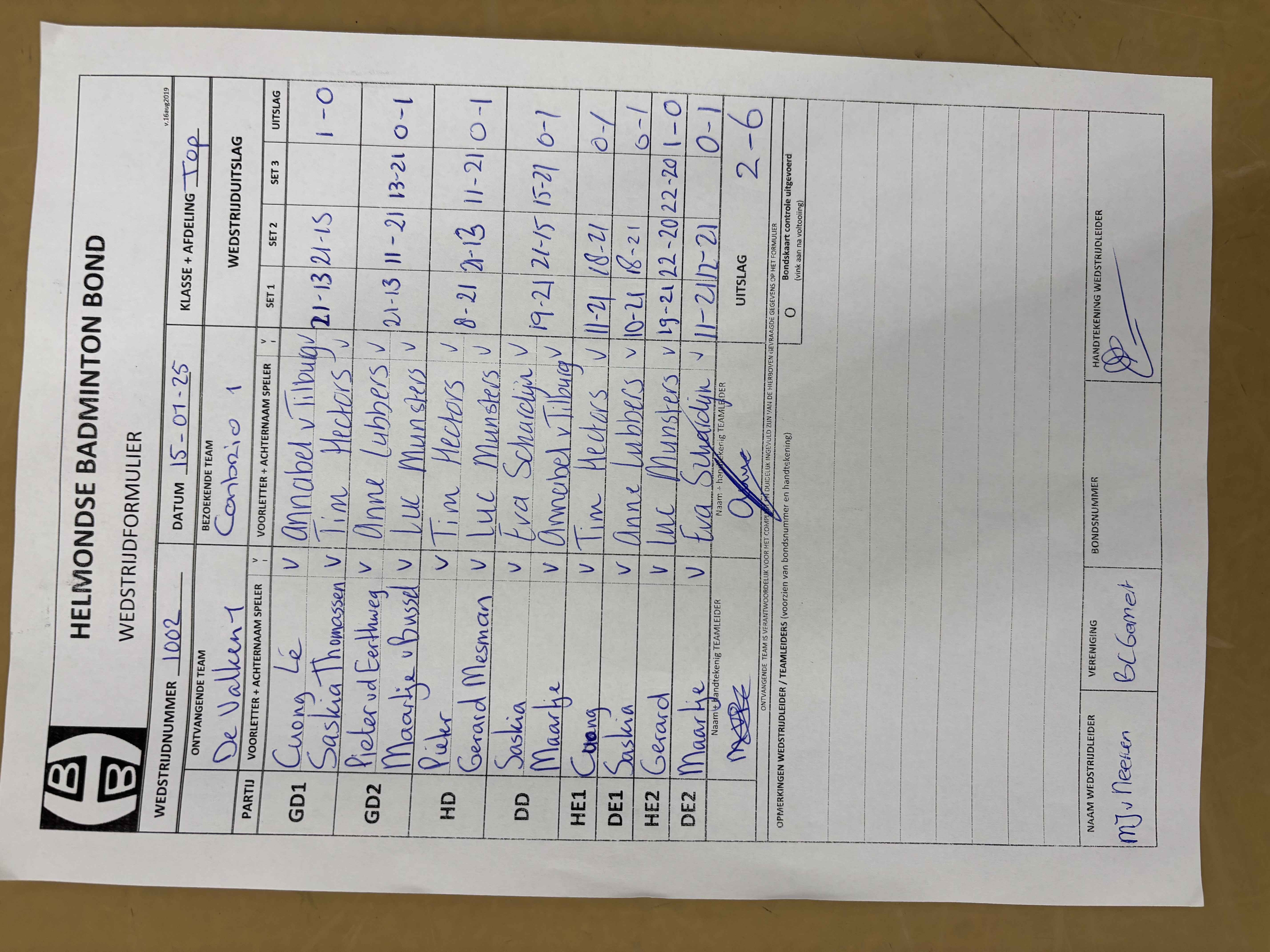 | 1002 | wo. 15-01-2025 | De Valken 1 | - | Con Brio 1 | 1 | 2 - 6 | |||