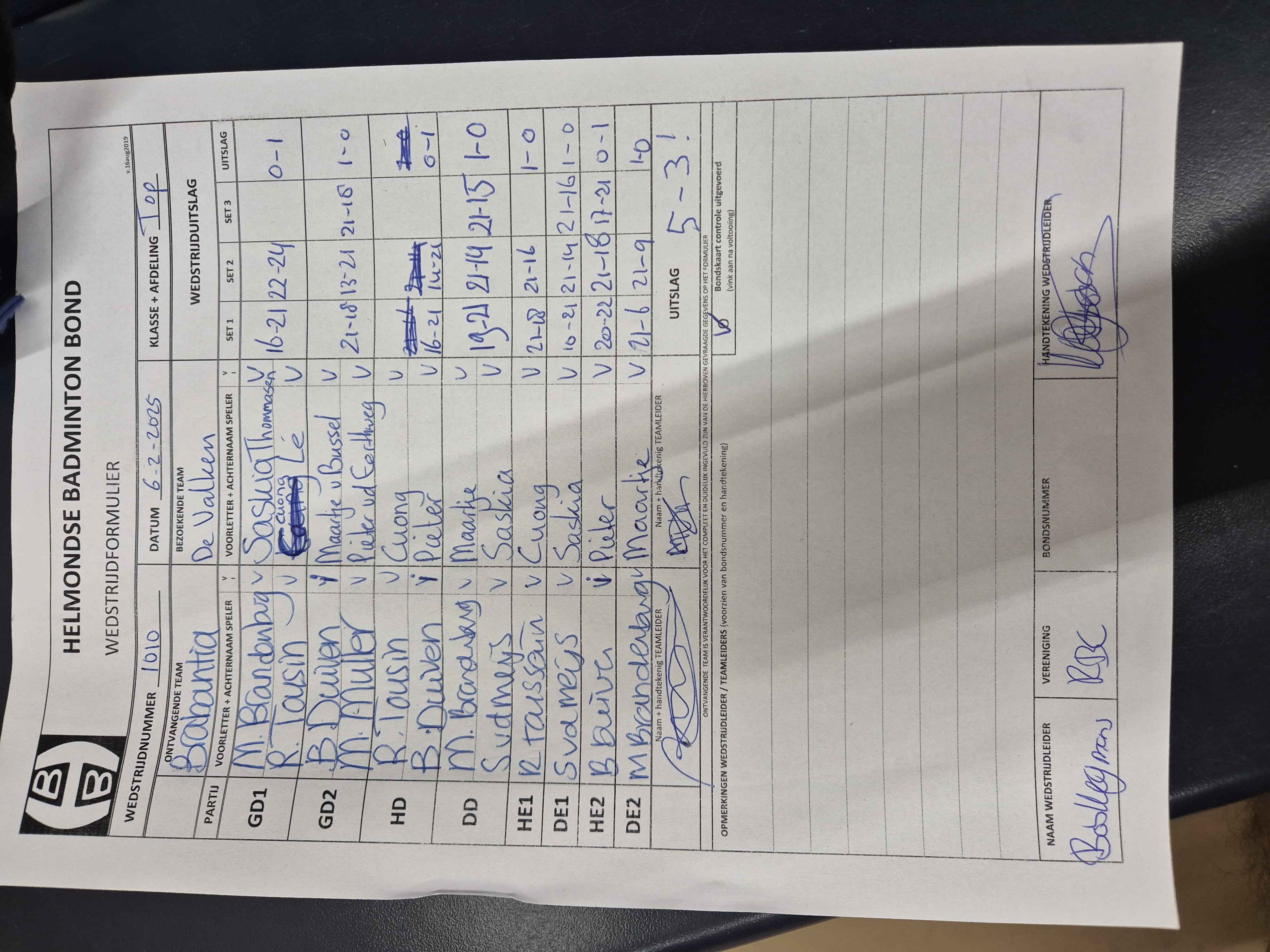 | 1010 | do. 06-02-2025 | Brabantia 1 | - | De Valken 1 | 1 | 5 - 3 | |||