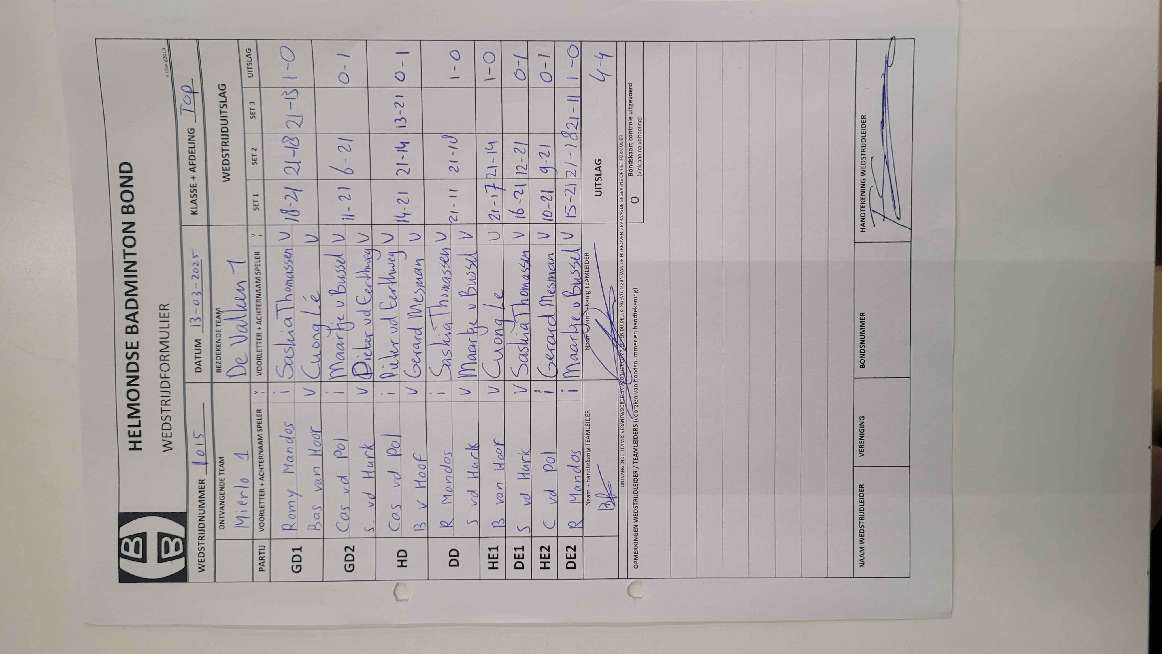 | 1015 | do. 13-03-2025 | Mierlo 1 | - | De Valken 1 | 1 | 4 - 4 | |||