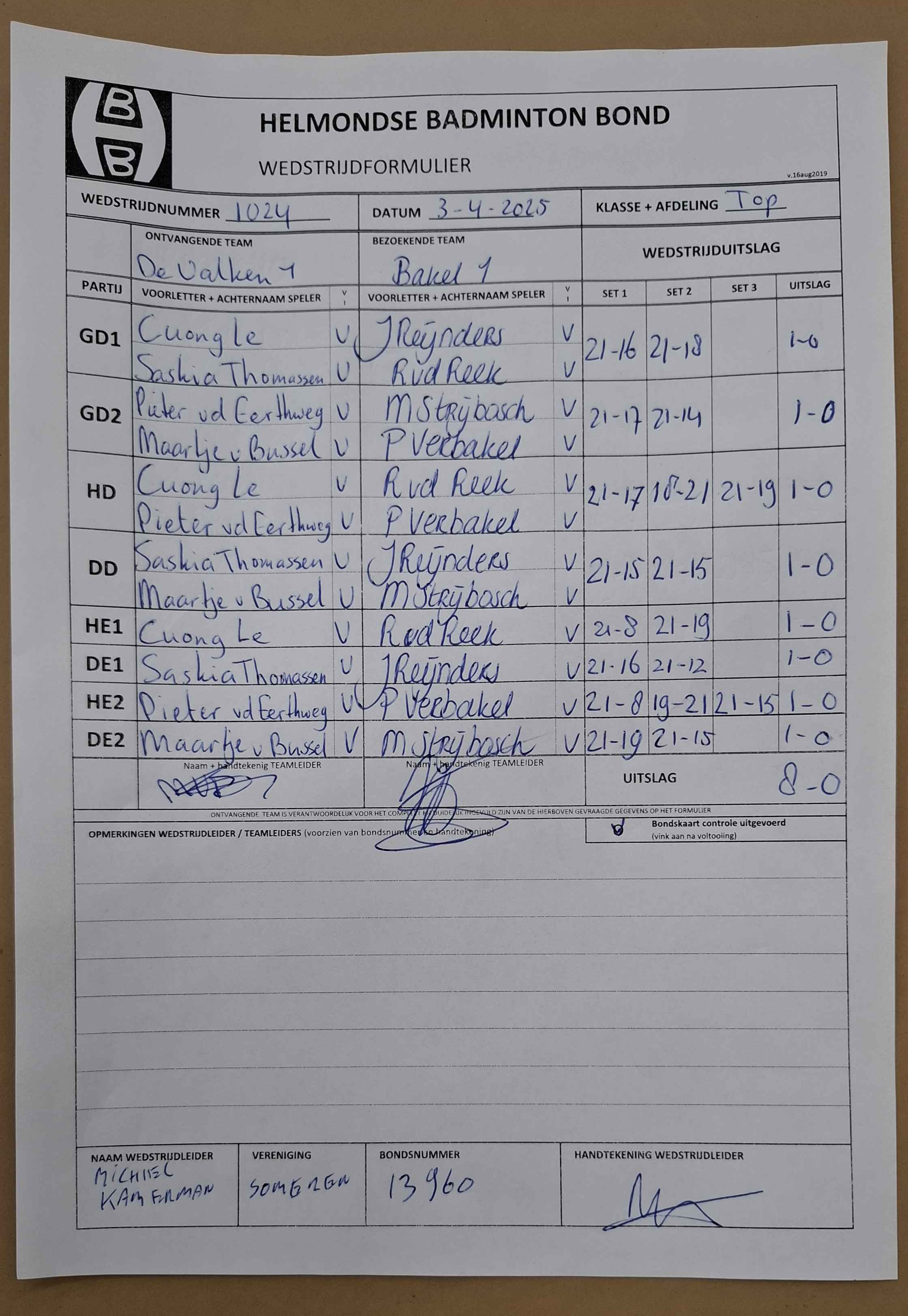 | 1024 | do. 03-04-2025 | De Valken 1 | - | Bakel 1 | 2 | 8 - 0 | |||