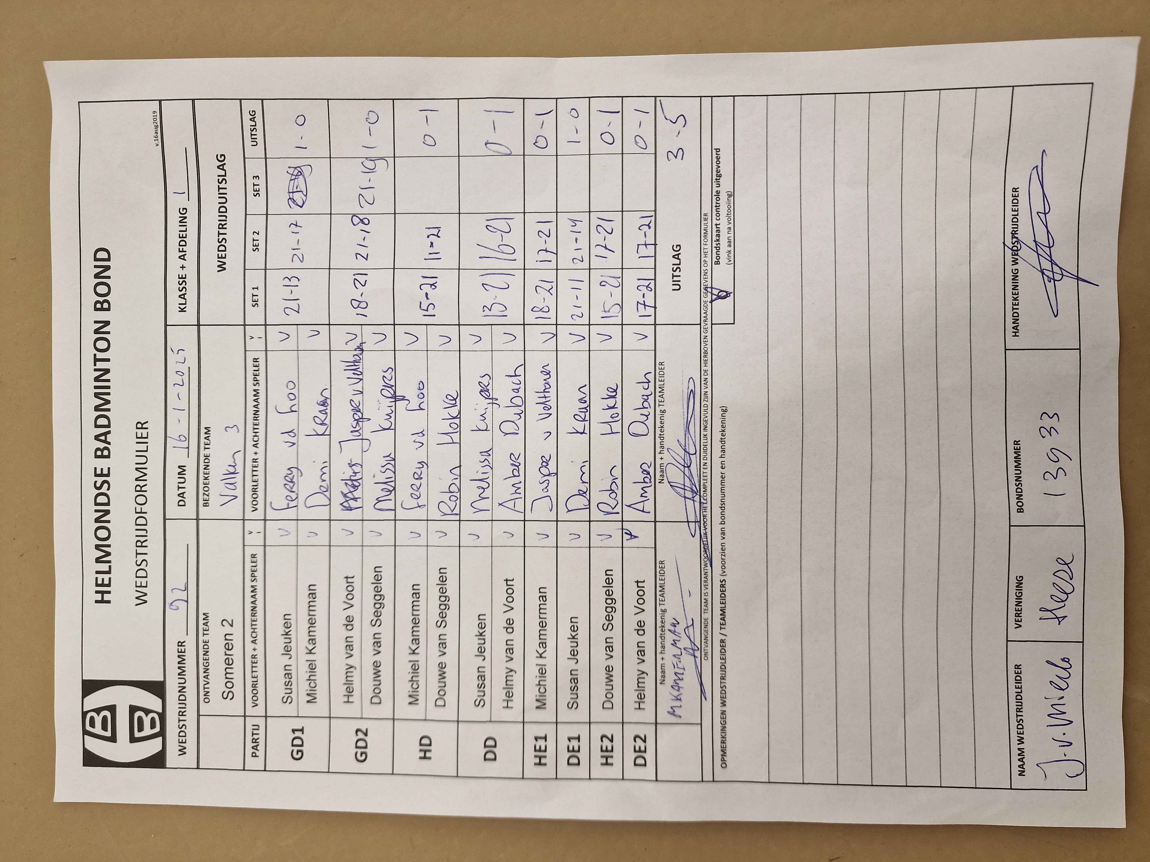 | 92 | do. 16-01-2025 | Someren 2 | - | De Valken 3 | 11 | 3 - 5 | |||